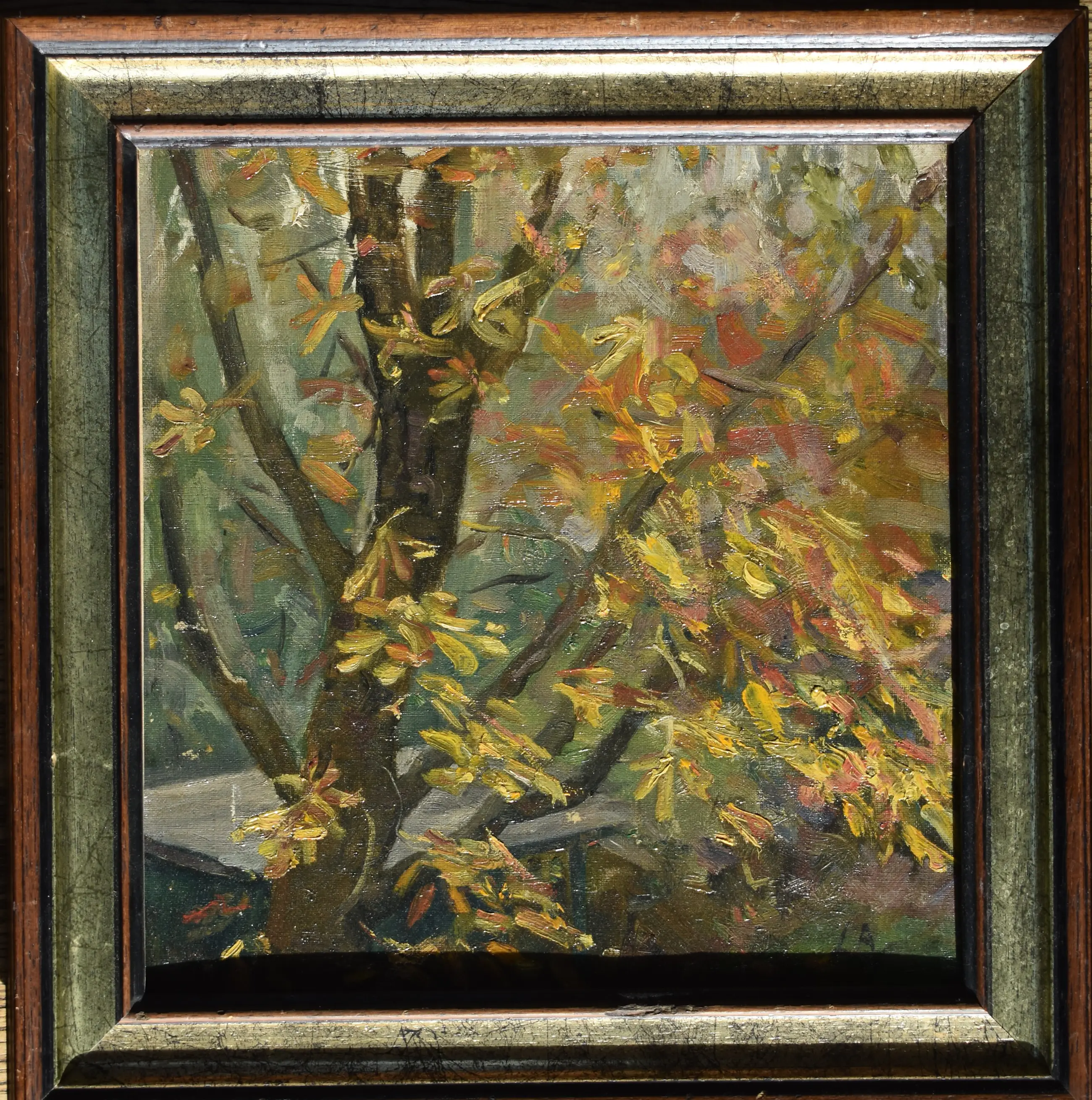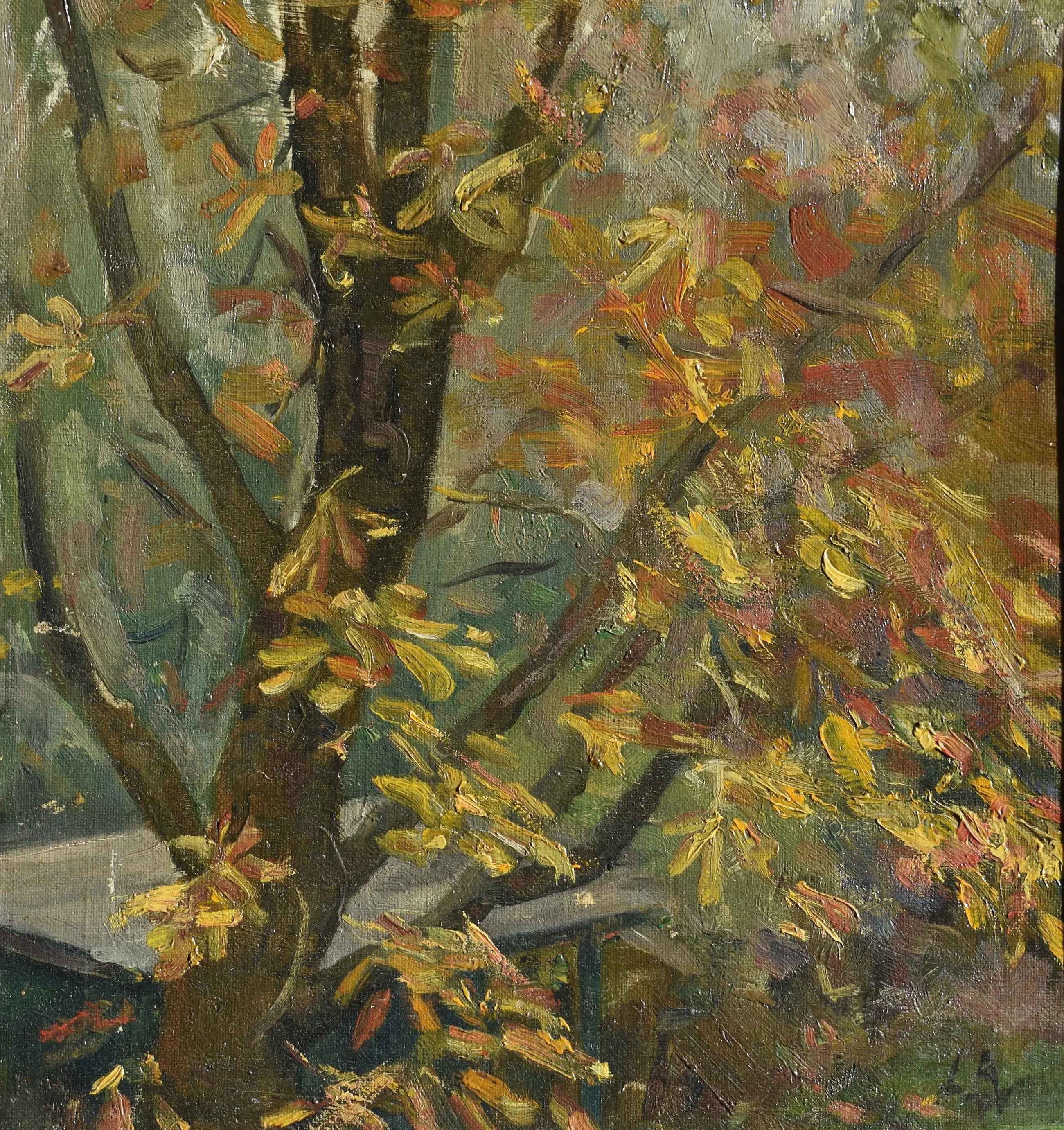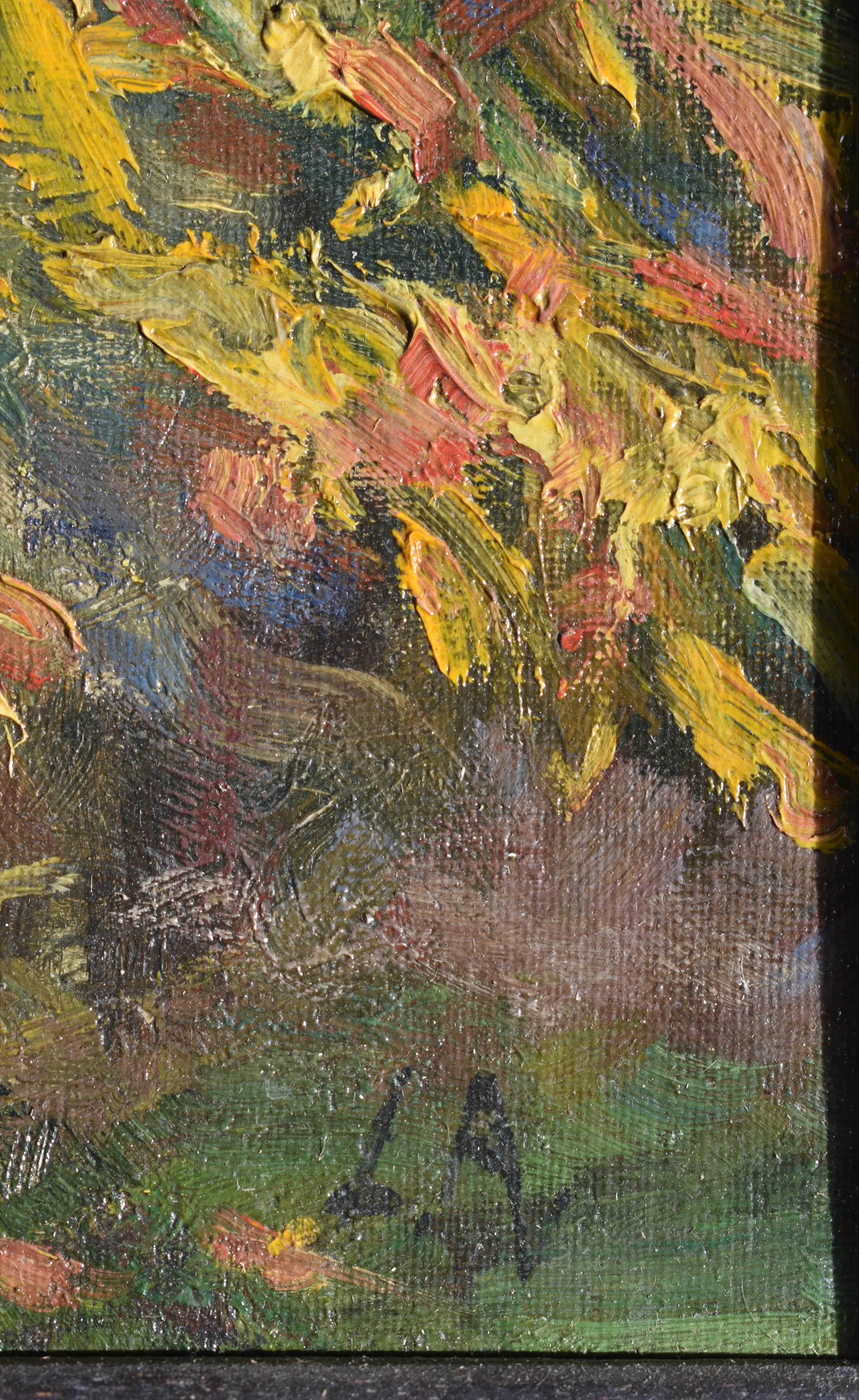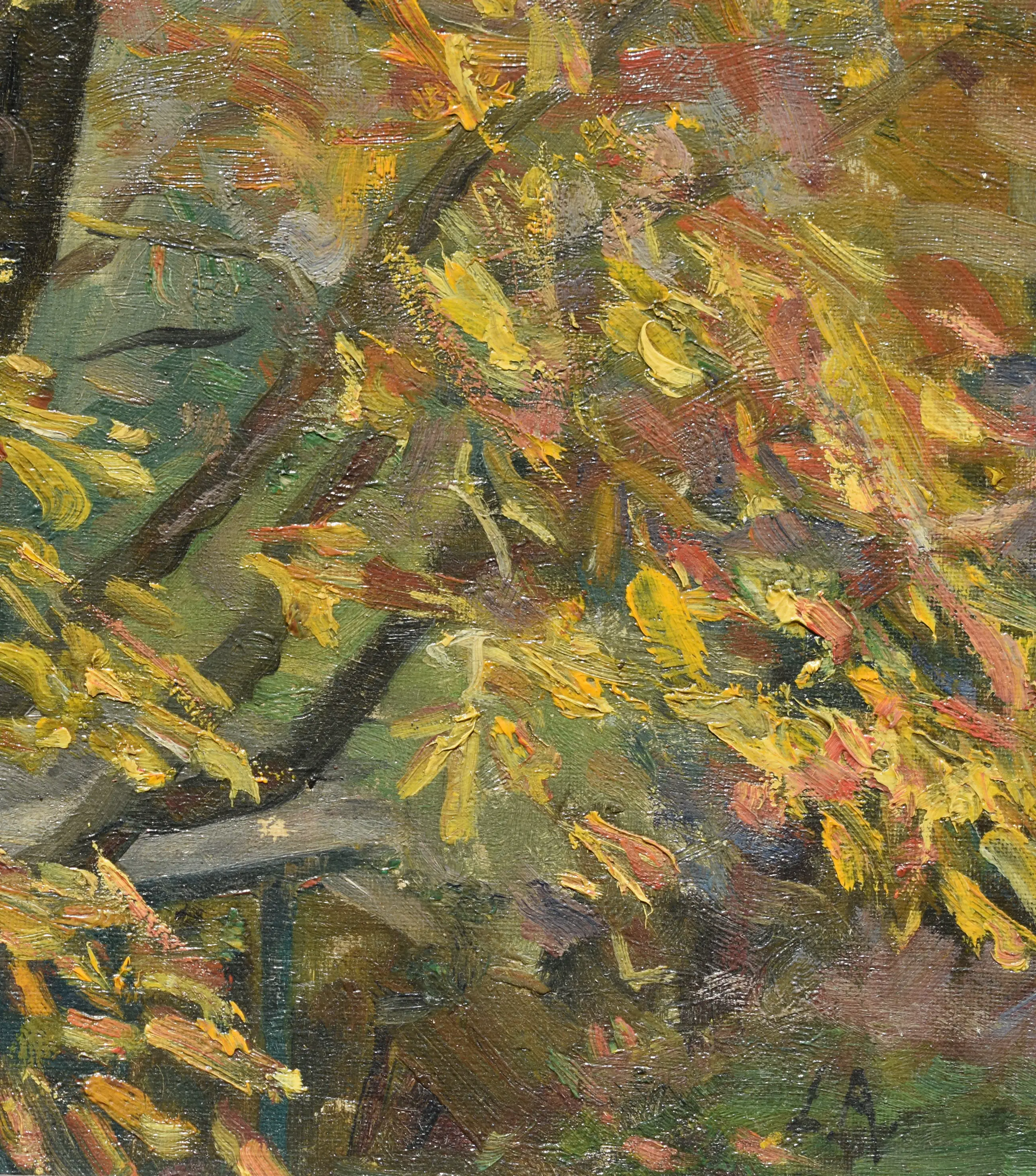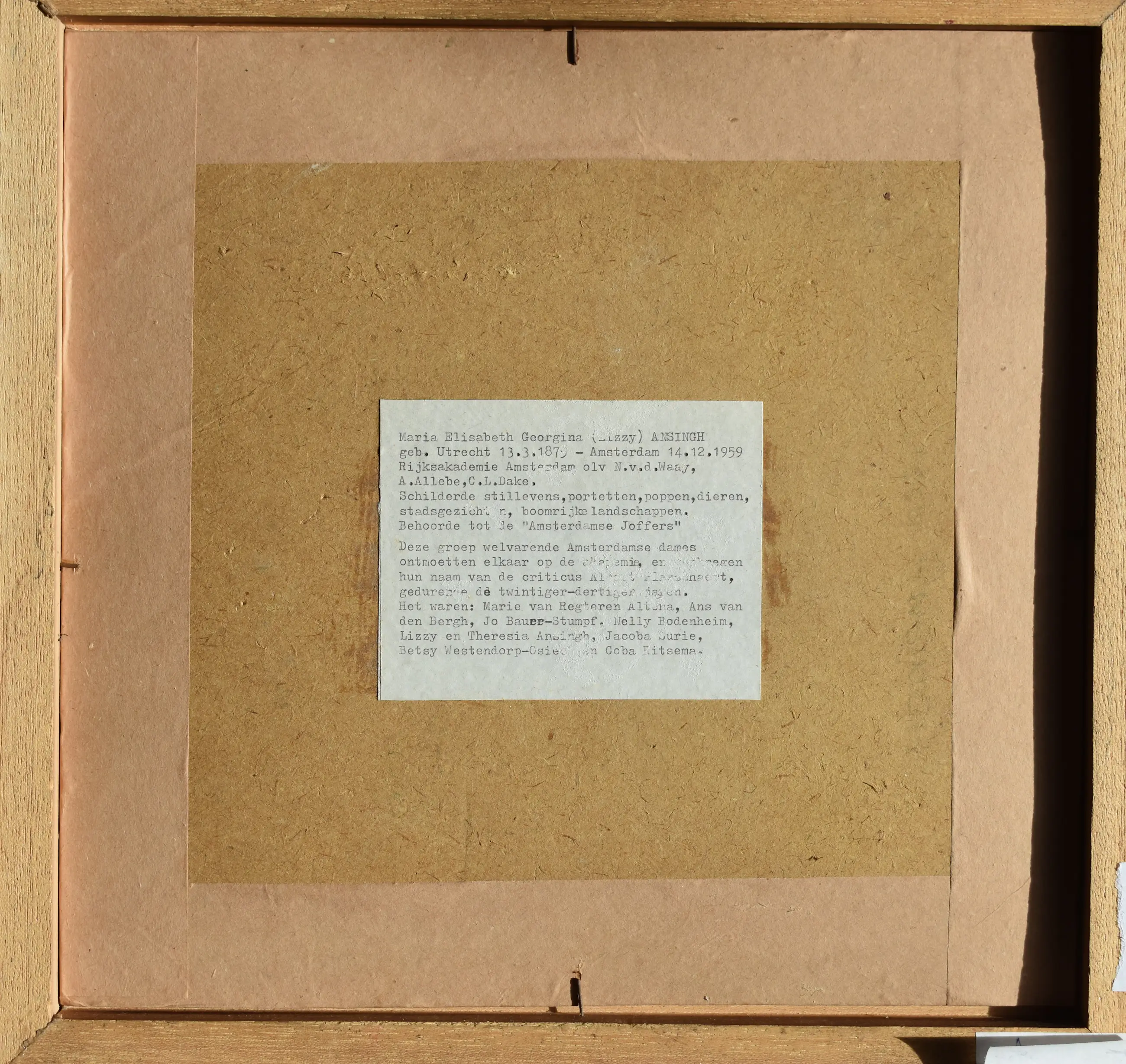 Lizzy Ansingh ( Utrecht 1875-1959 Amsterdam ) behoort tot de zogenaamde JOFFERS, een groep welvarende Amsterdamse dames, die vandaag de dag erg in de belangstelling staan door de focus op vrouwelijke kunstenaars en de vele tentoonstellingen in Nederlandse musea. Zij traden groepsgewijs op in de 20-30 er jaren van de 20e eeuw. Andere groepsleden waren Marie van Regteren Altena, Ans van den Bergh, Jo Bauer-Stumpf, Nelly Bodenheim, Jacoba Surie, Coba Ritsema, Betsy Westendorp. Het werk is in goede conditie, zoals gebruikelijk gesigneerd met monogram LA, Olieverf op doek op paneel in lijst. Geschilderd cirva 1920.