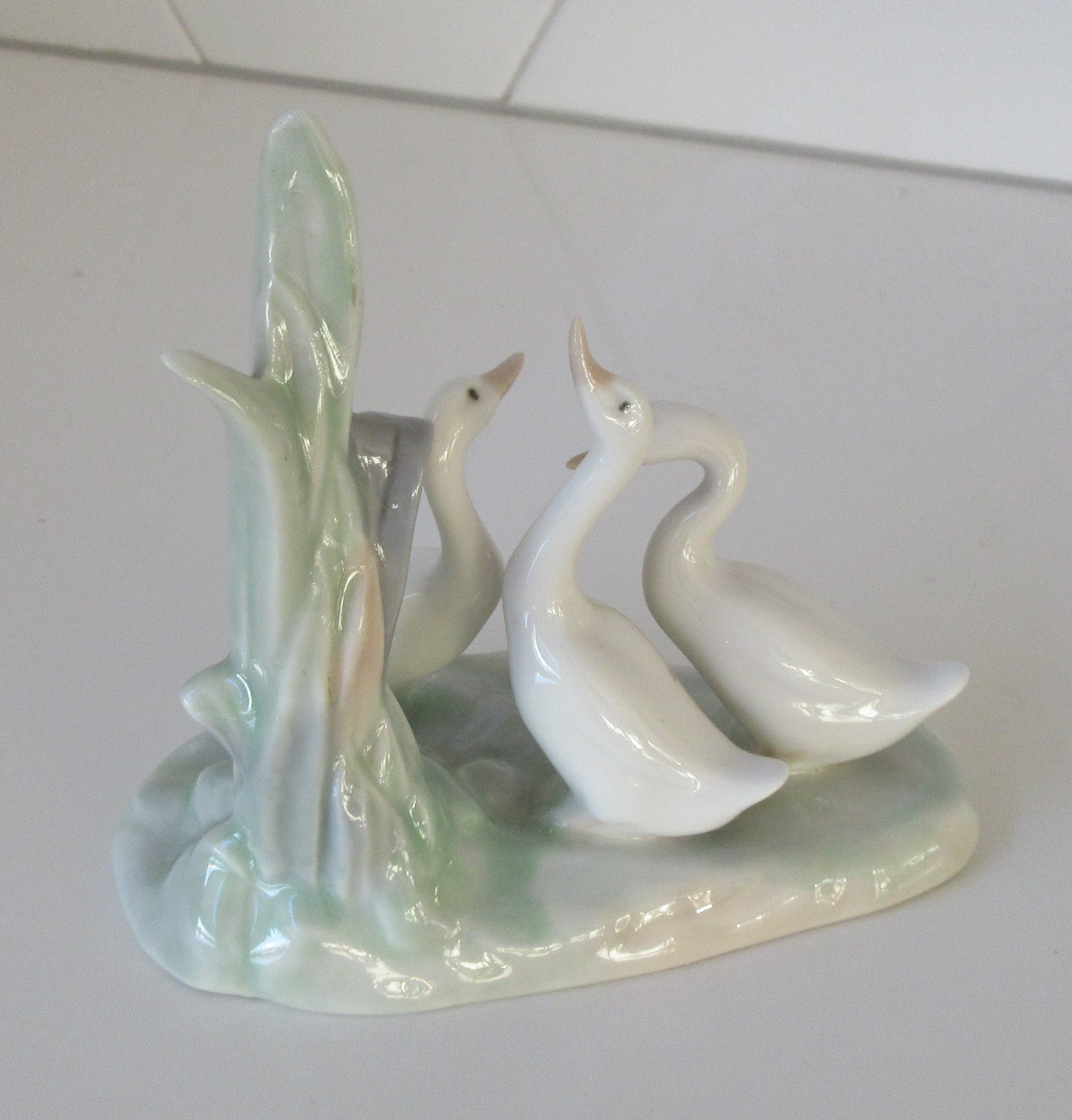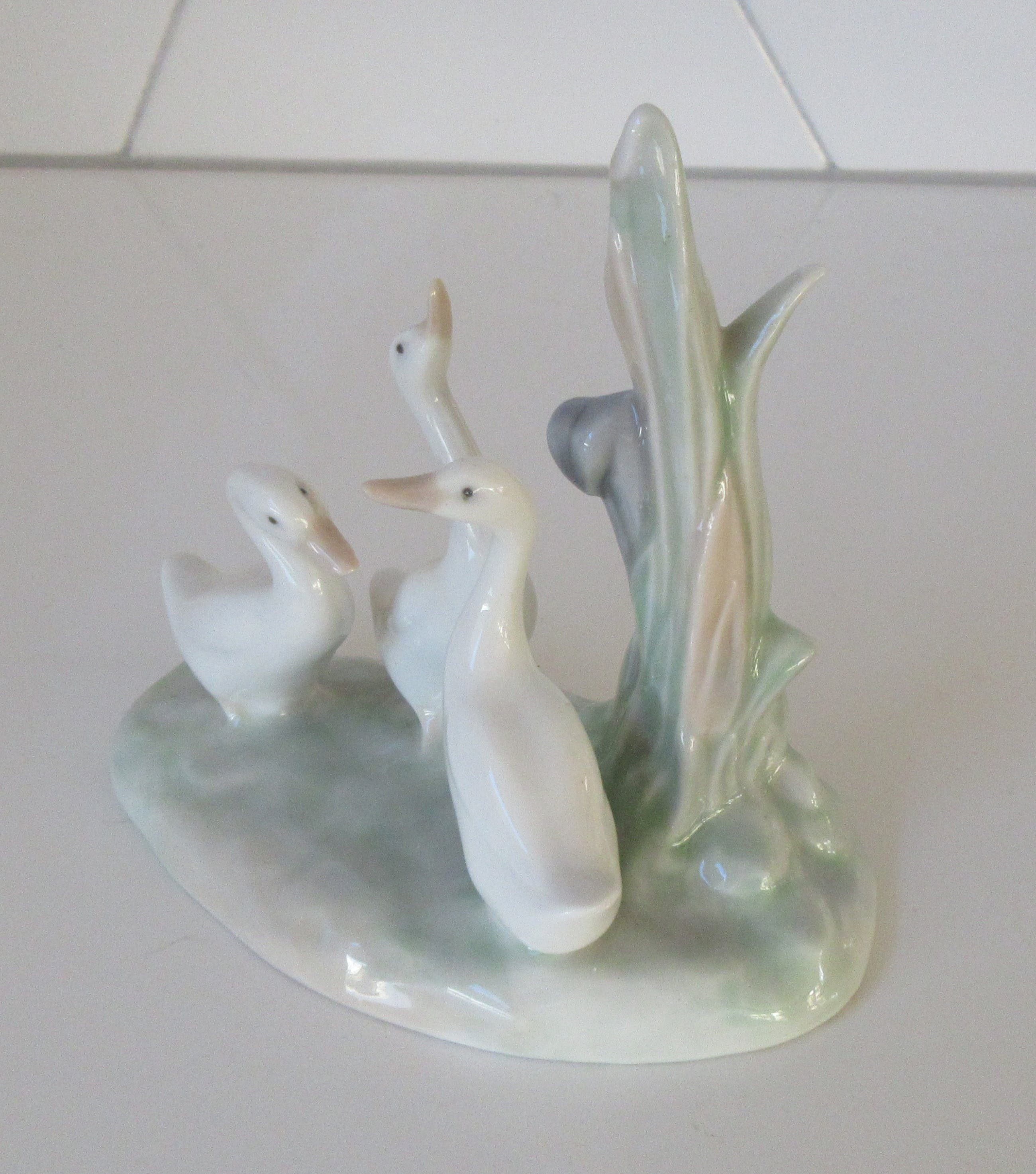 Mooi porseleinen beeldje van een groep ganzen in het groen van NAO Lladro. Modelnummer 4549 gemaakt tussen 1973 en 1998. In perfecte conditie en gemerkt op de onderzijde.