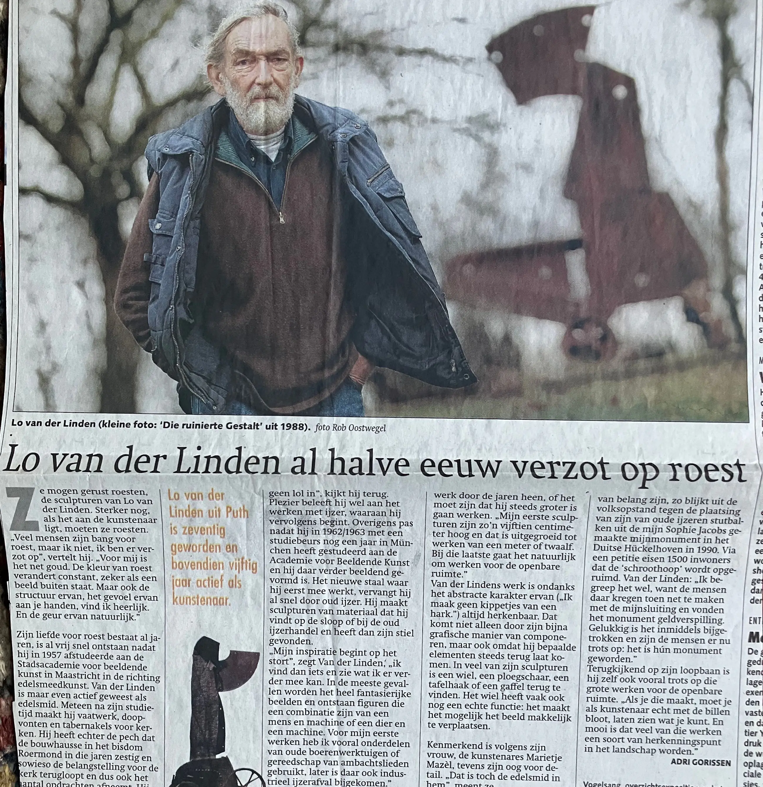 In zijn sculpturen tovert Lo van der Linden (1937 – 2017) kunstenaar wielen, onderdelen van ploegen, eggen en andere alledaagse objecten om tot nieuwe kunstvoorwerpen. Hij bewerkt de onderdelen niet, maar gebruikt ze zoals ze zijn. Met hun eigen identiteit worden ze in hun nieuwe gedaante ‘voor eeuwig’ behouden. Lo van der Linden verwierf internationale faam met zijn sculpturen, die onder meer geplaatst werden in Duitsland, Nijmegen, Amsterdam en Den Haag.