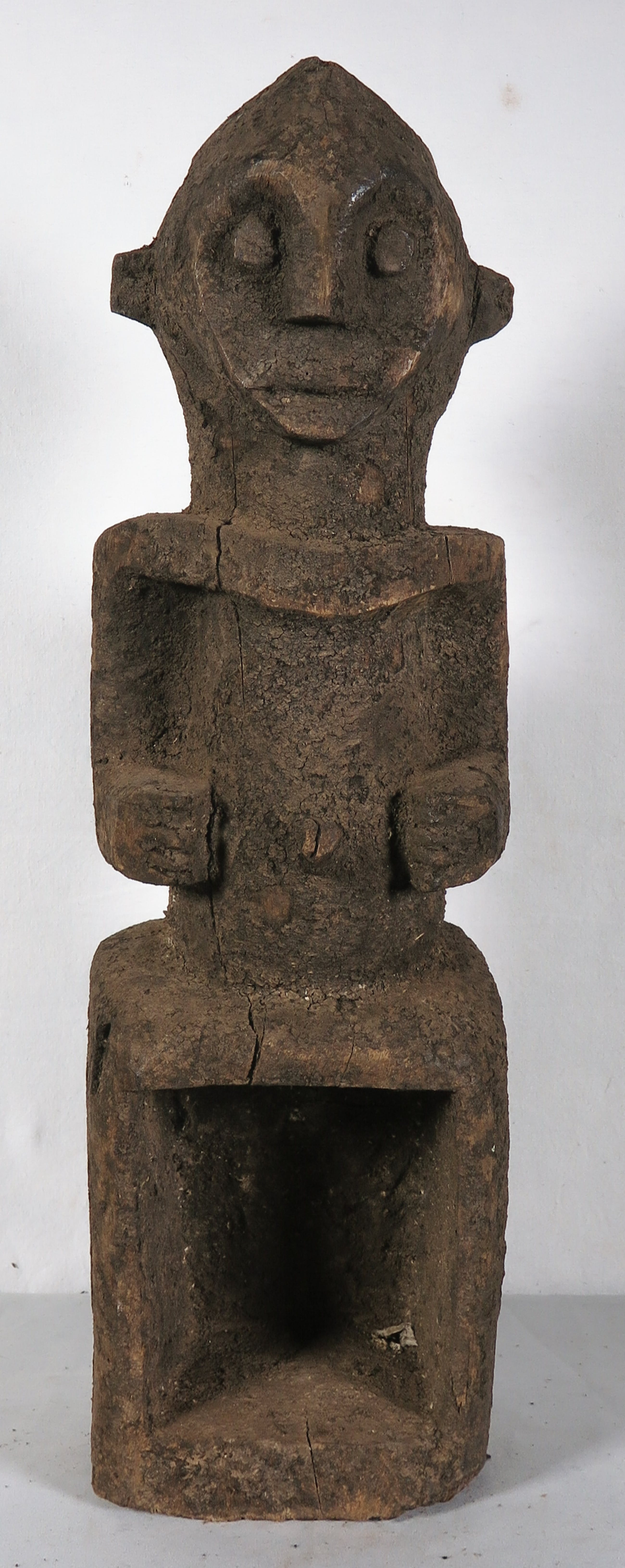 Aantal barstjes in het hout, met name in de voet van het beeld. Verder lichte gebruikssporen. | |||||||||||