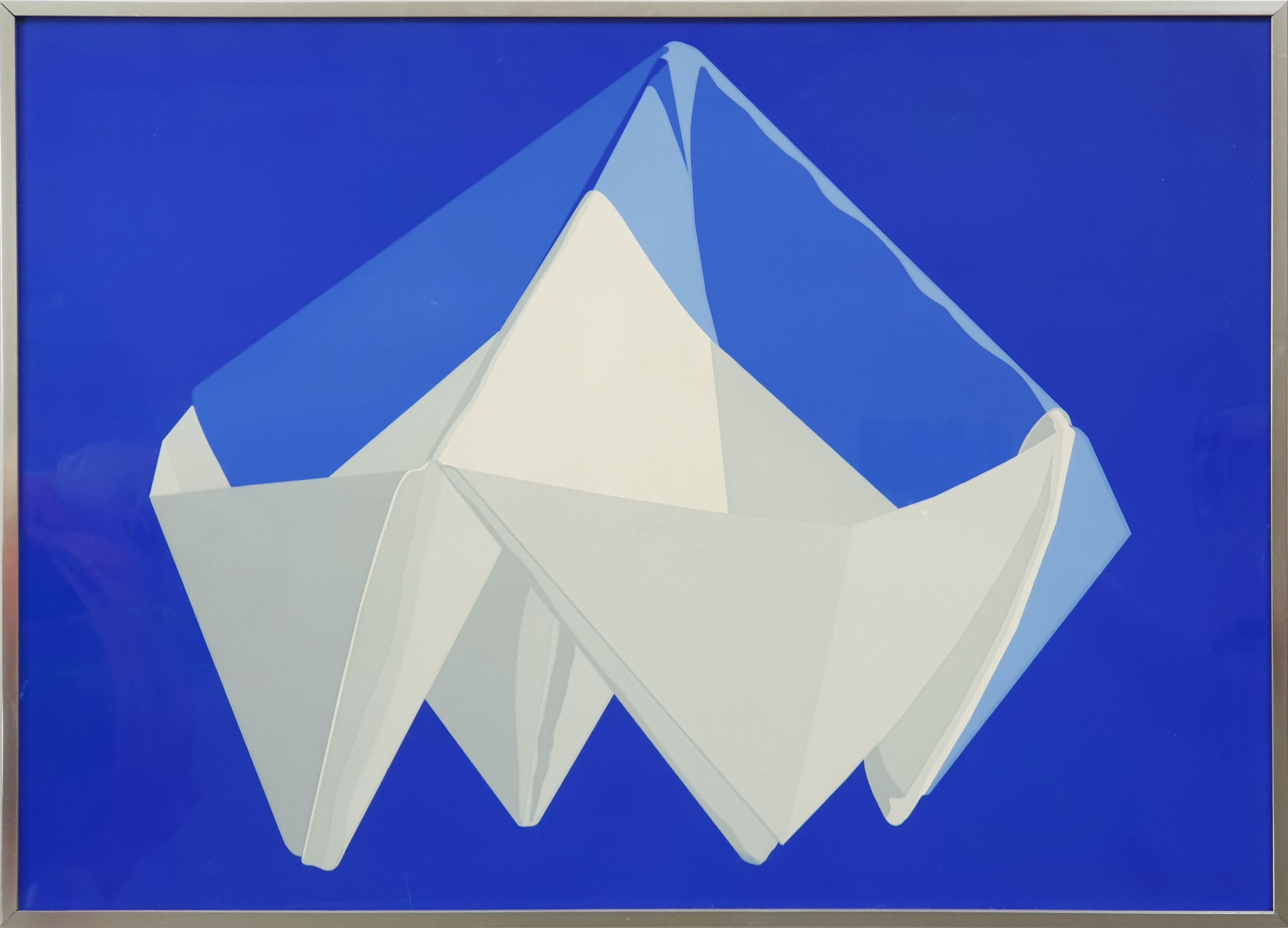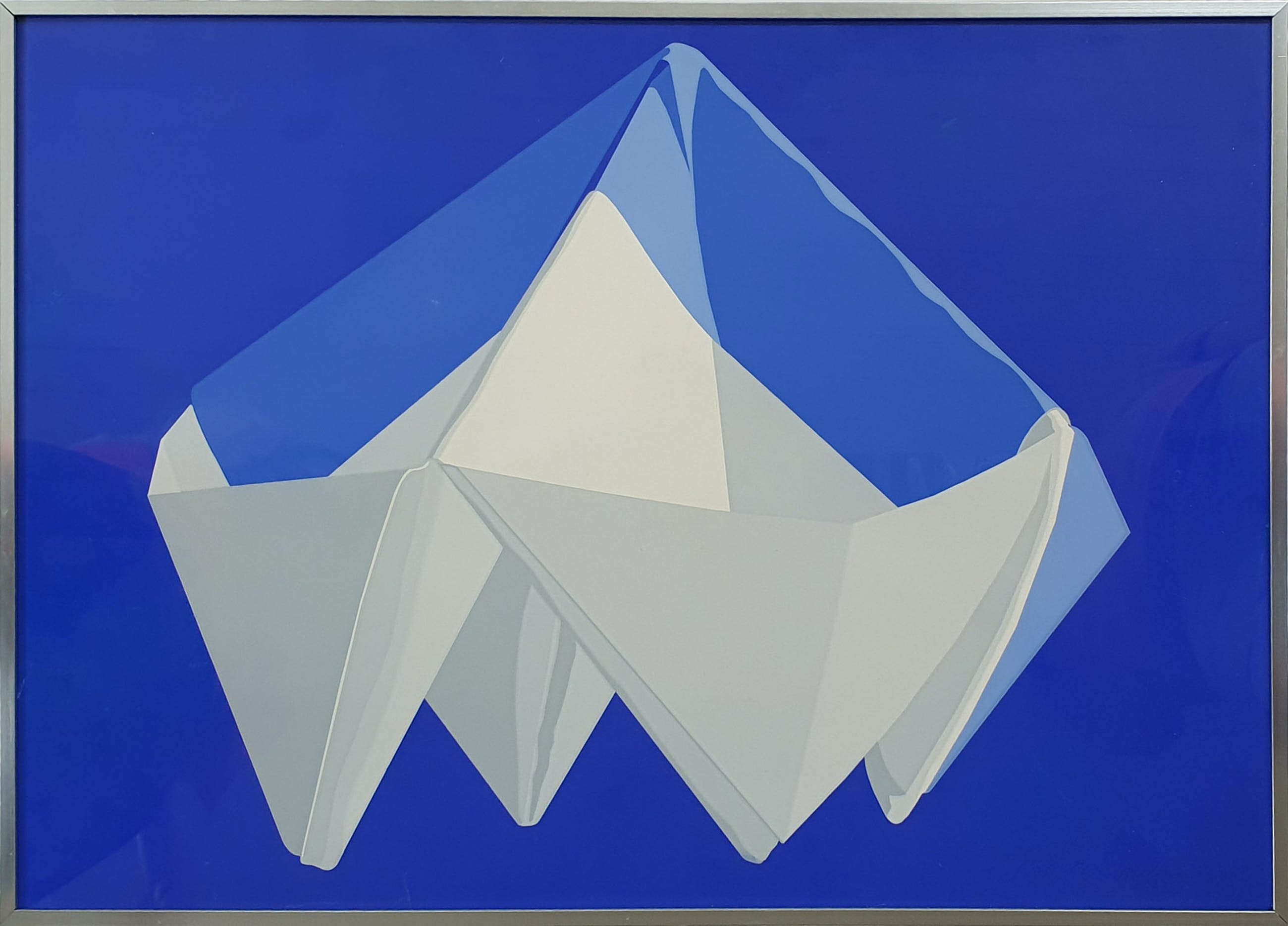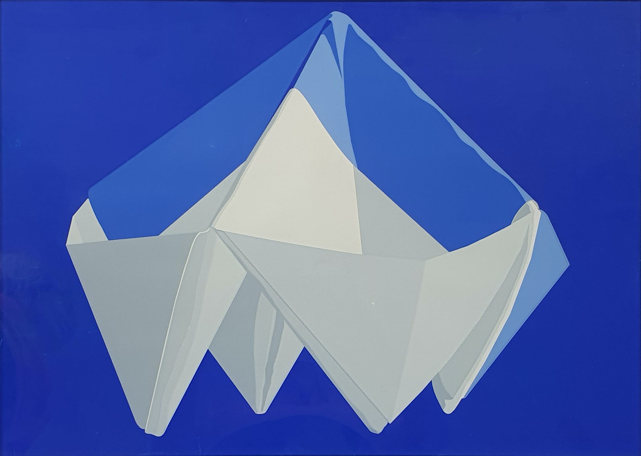 Zeefdruk van Lode Pemmelaar met de titel: 'Gevouwen servet' uit 1976. Het werk is rechtsonder met de hand gesigneerd door de kunstenaar.