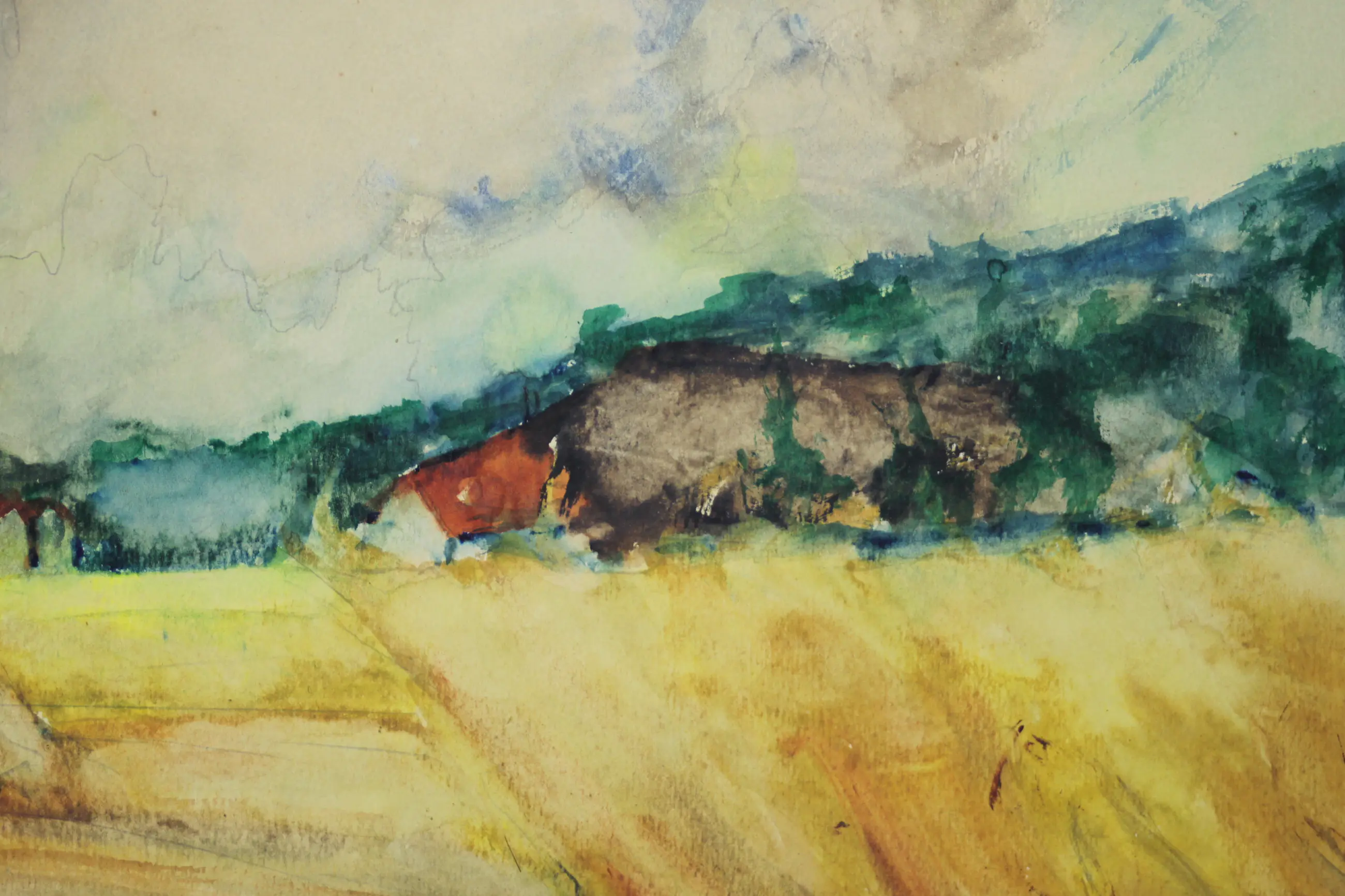 Het papier waarop de aquarel is geschilderd is door ouderdom wat verkleurd,