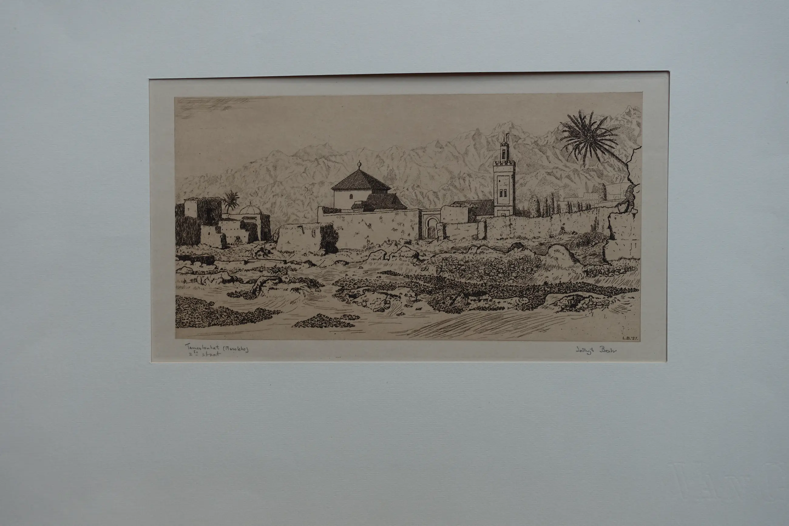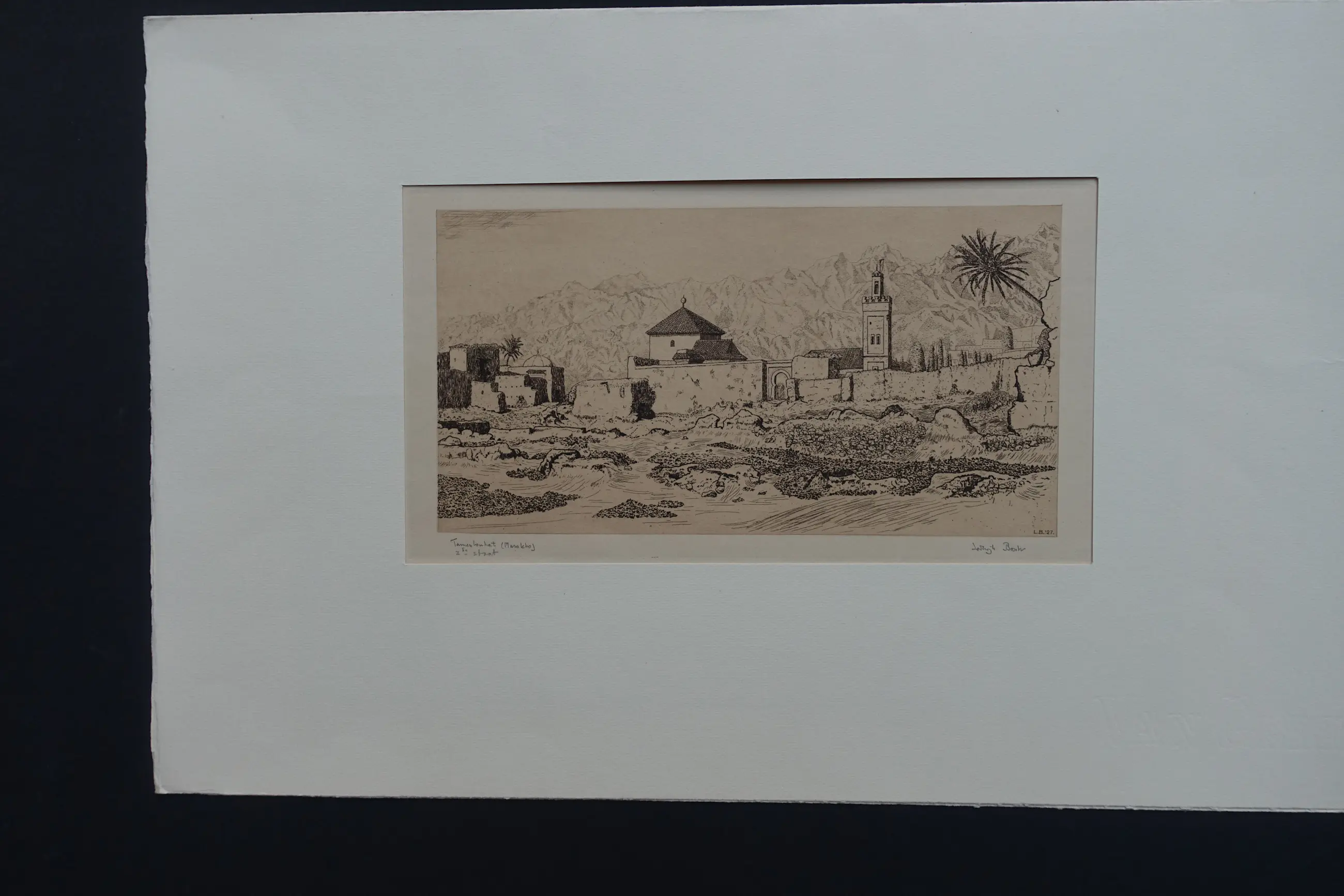 Deze ets van Lodewijk Bosch dateert uit de periode vóór zijn definitieve vestiging in Parijs. Afgedrukt op geschept papier ( 2de staat) en gesigneerd en betiteld met potlood. Datering met monogram in de plaat. Zeer goede staat (lichte bruining).