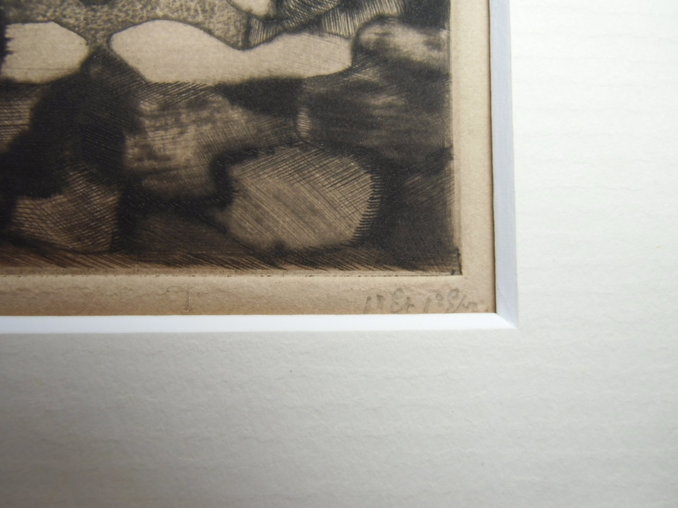 Materiaal : ets 1e staat op stevig papier in passepartout met achtervel