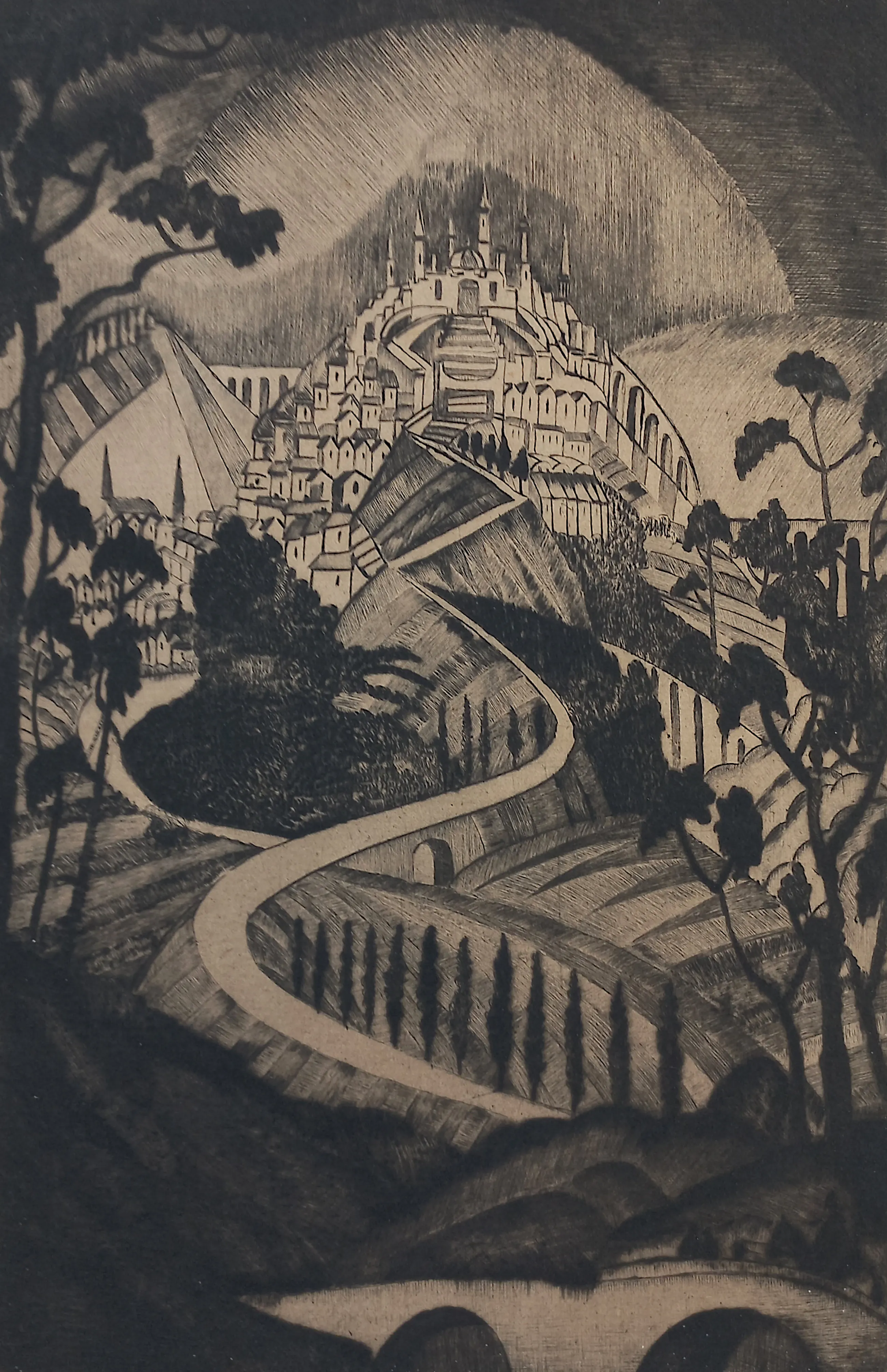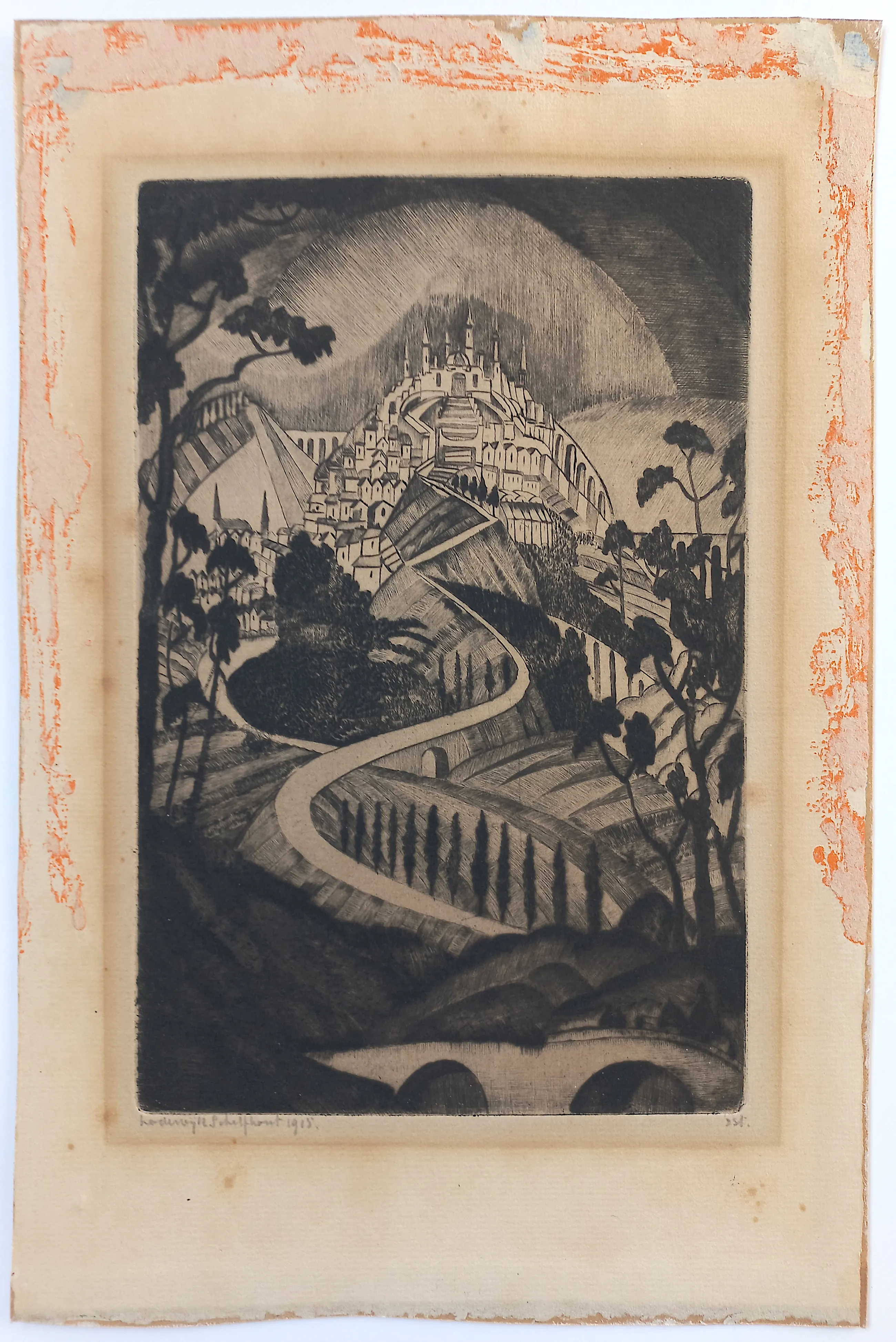 Droge naald ets op Van Gelder & Zonen papier, met potlood gesigneerd, gedateerd (1915) en met toevoeging “2 st.” (de 2e staat van deze ets). In redelijk goede conditie.
