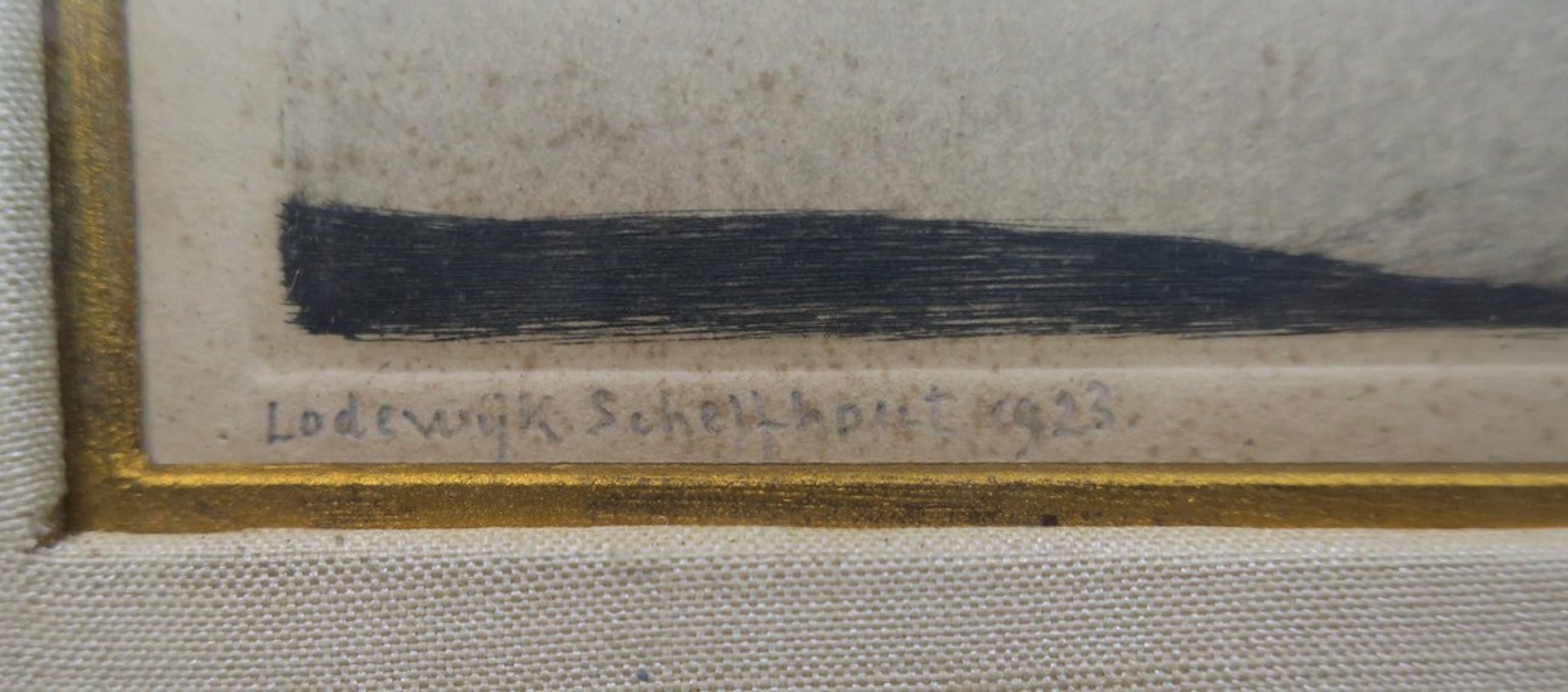 Kleine beschadigingen aan lijsten worden niet beschreven! Bij ingelijste werken achter glas vermelden wij altijd glasschade. Passe-partouts worden op geen enkele manier gegarandeerd en ook niet altijd meegezonden. Alleen als een werk niet uit het passe-partout te halen is, zal dit vermeld worden. Glasschade bij verzending op eigen risico.