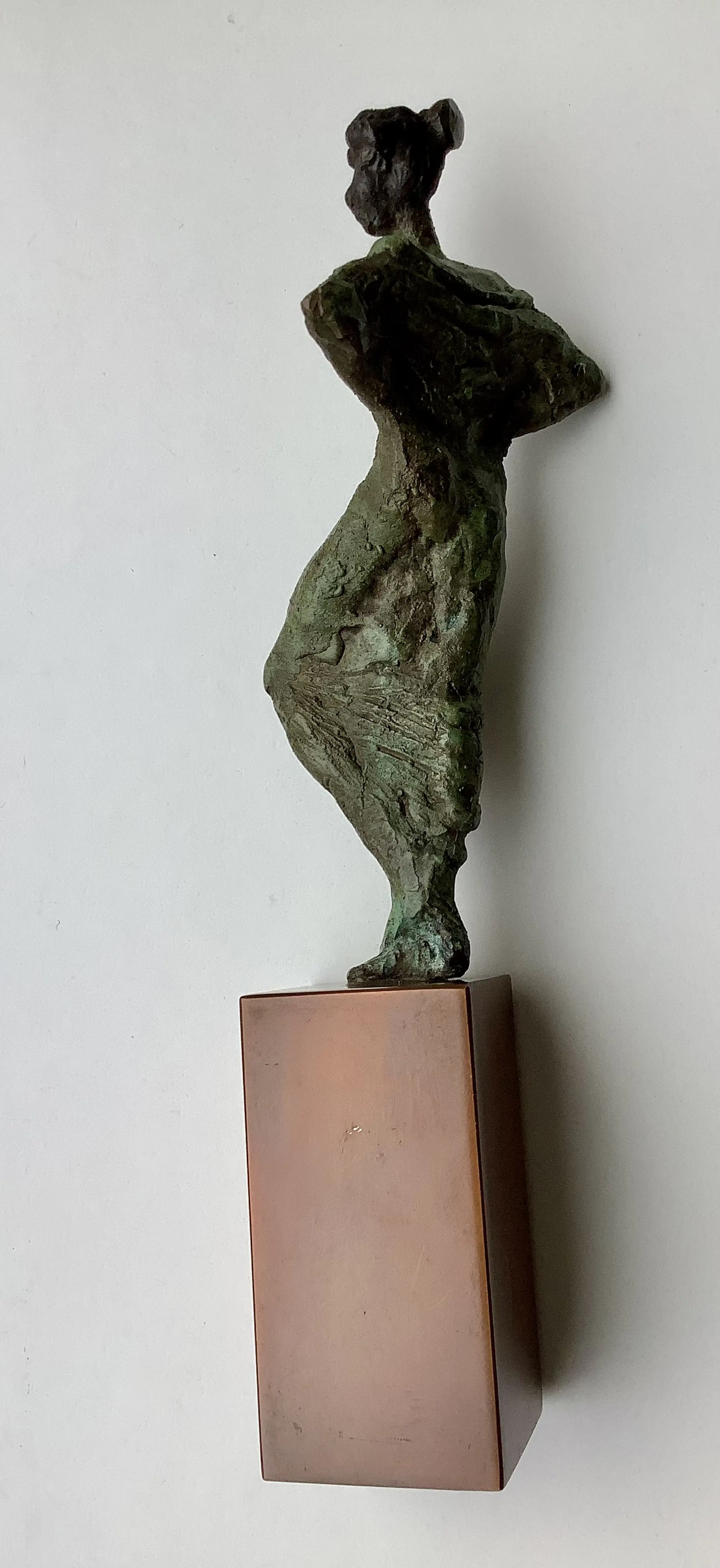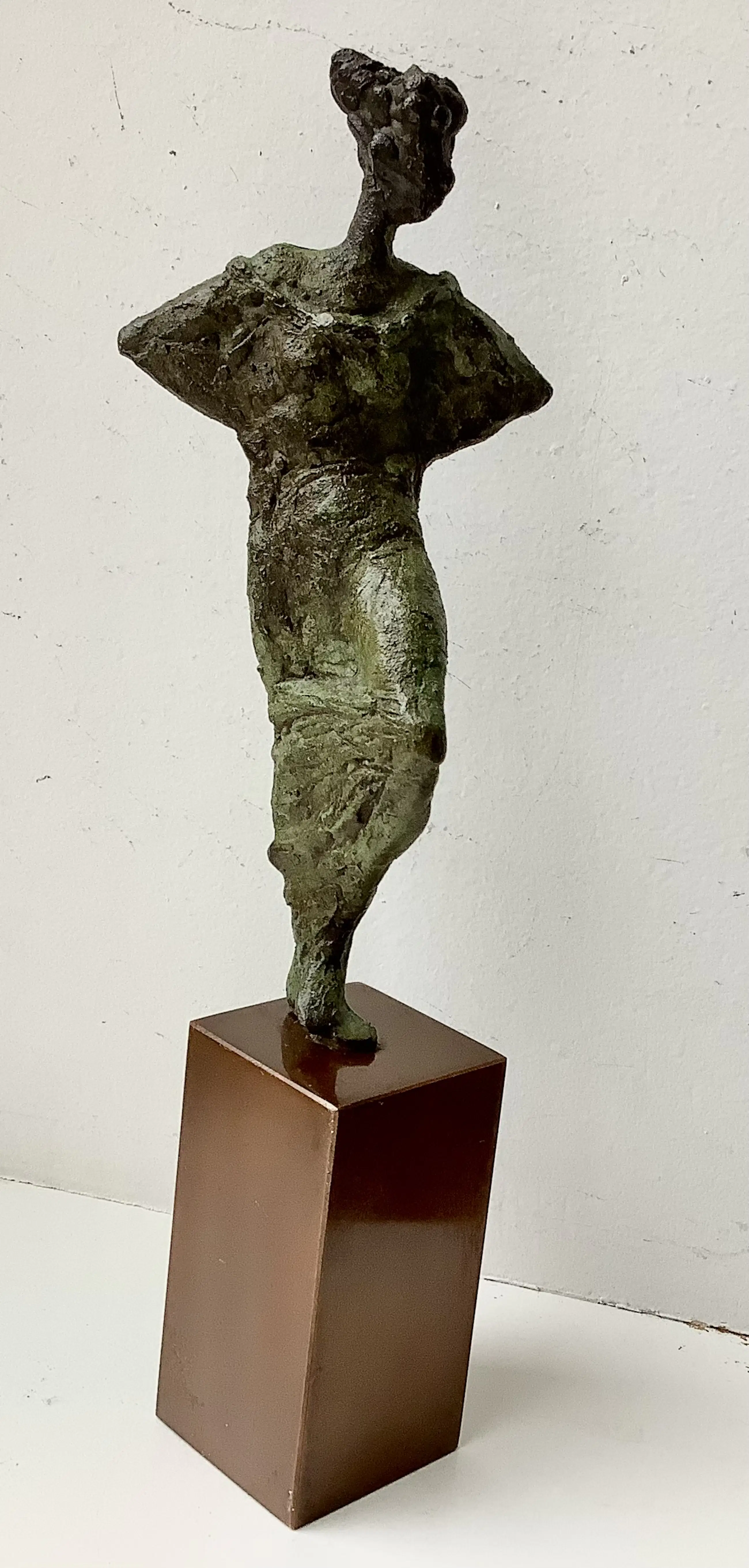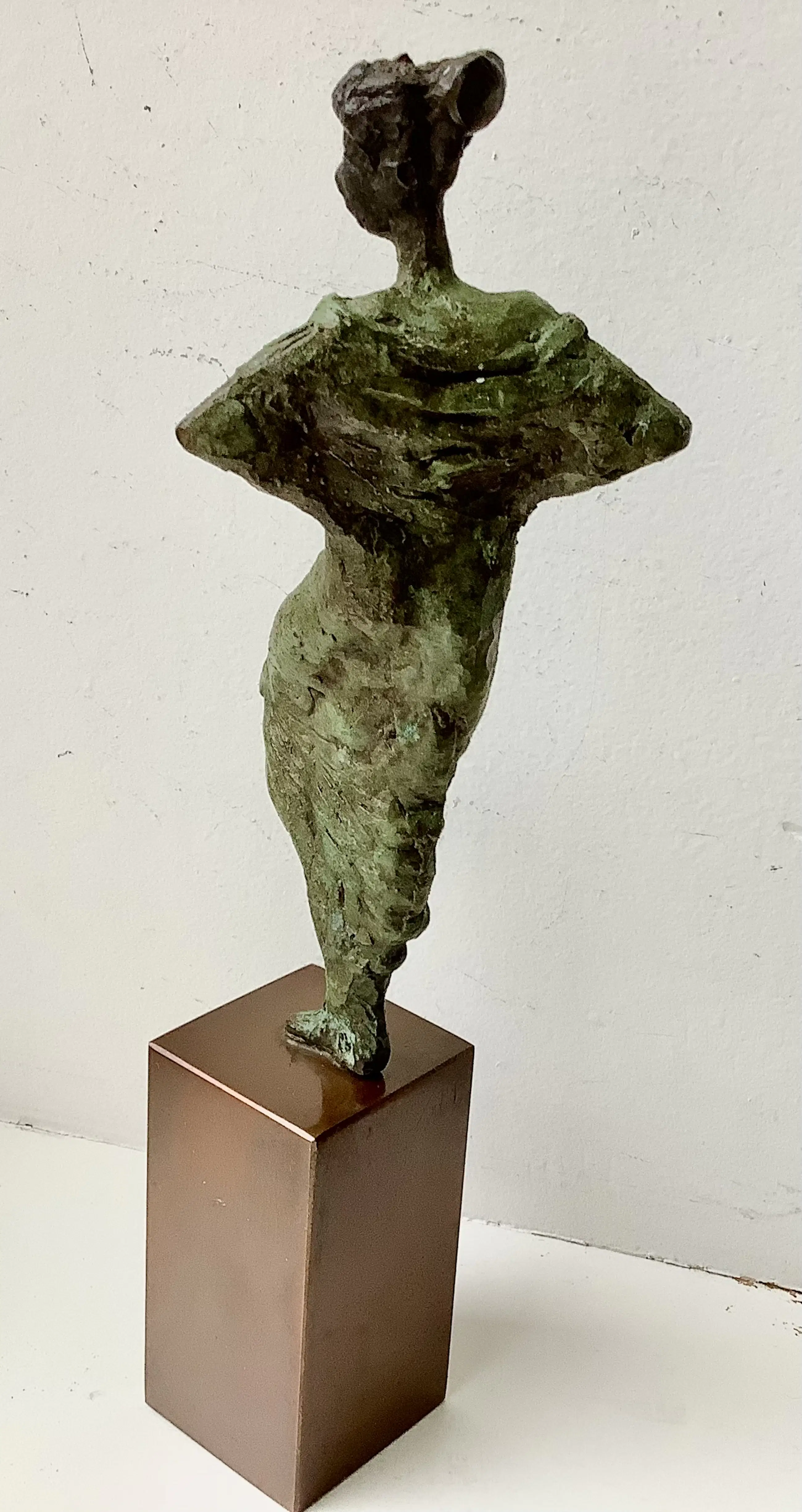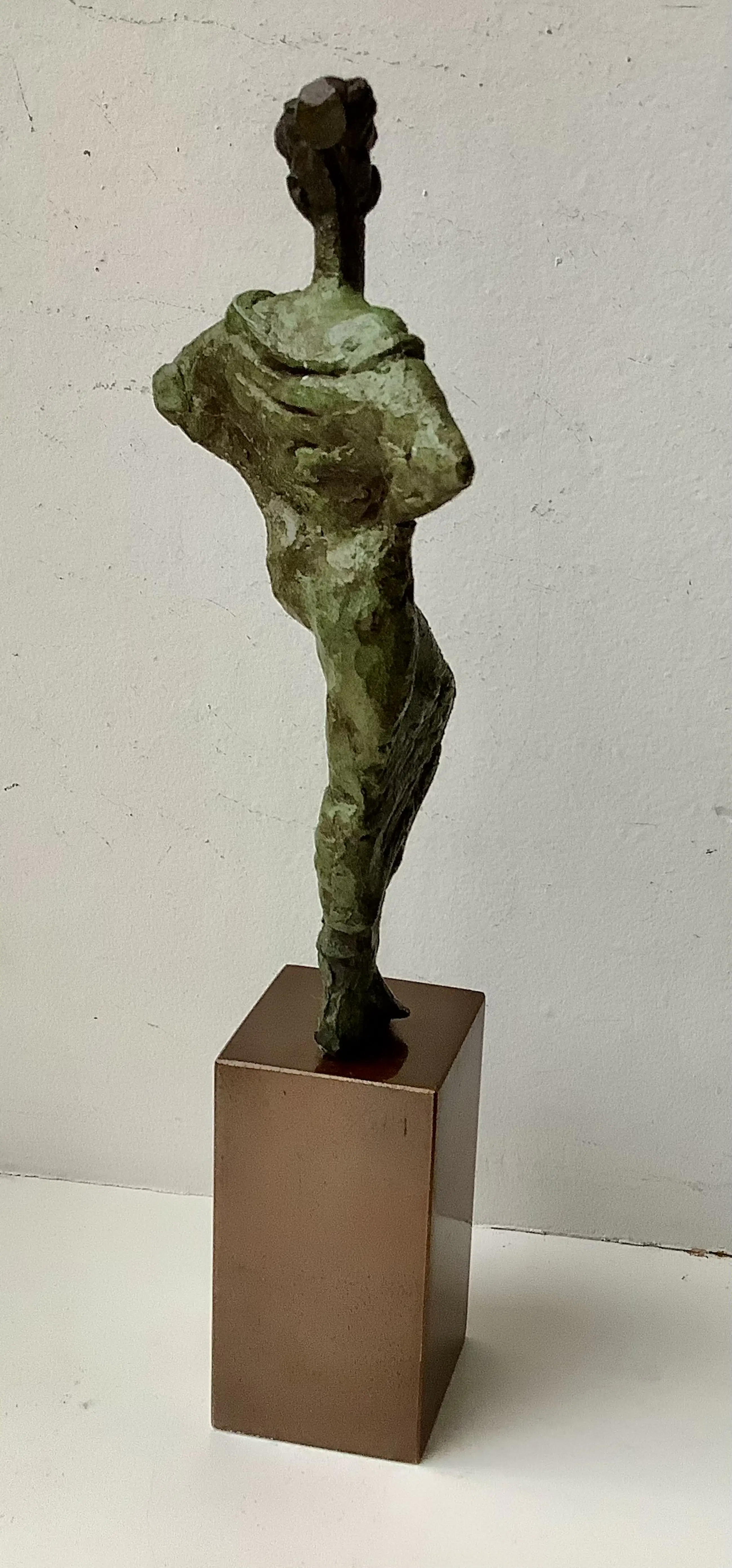 Massief bronzen sculptuur van Loek Bos. Aantrekkelijk beeld op fraaie koperen sokkel. Mooie details en fraaie patina.