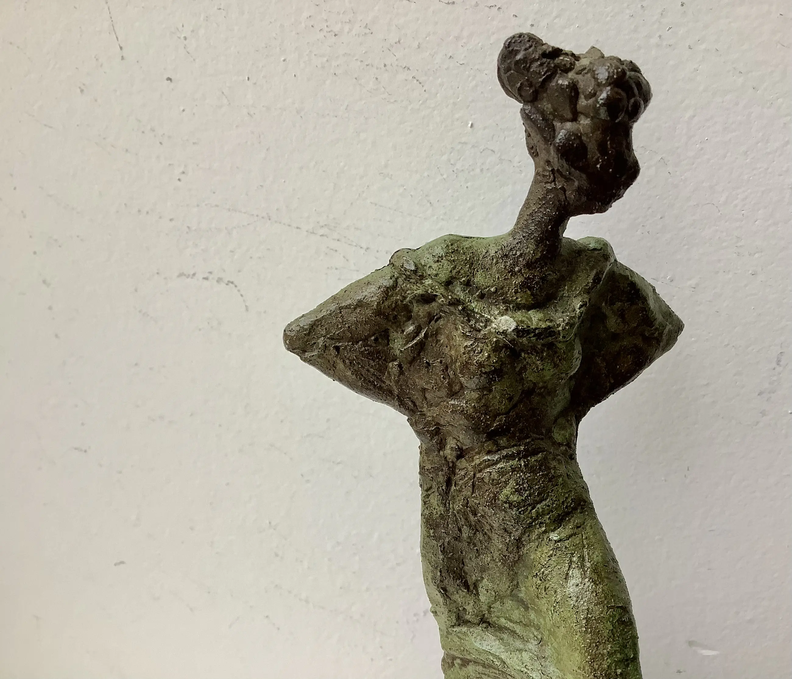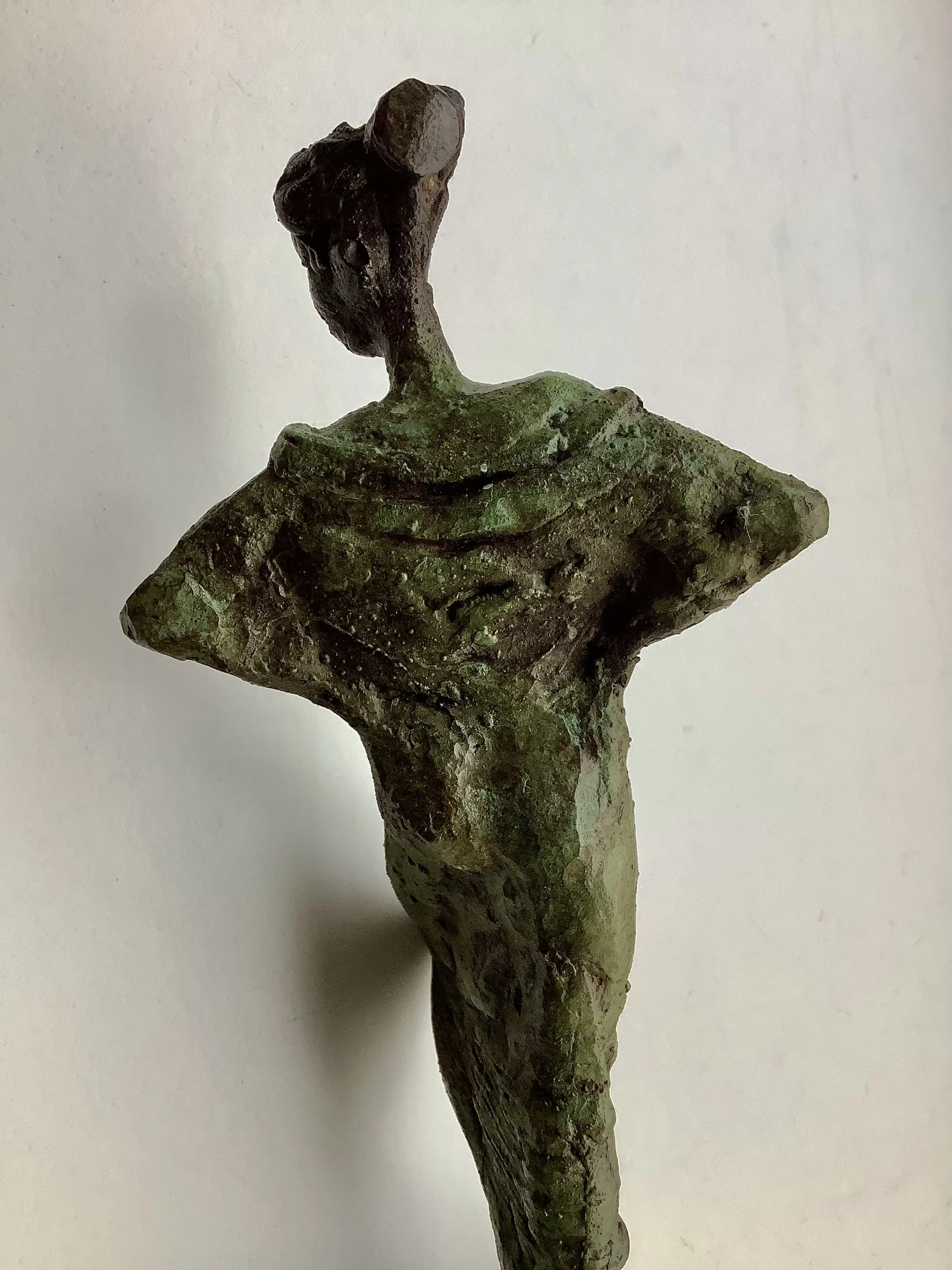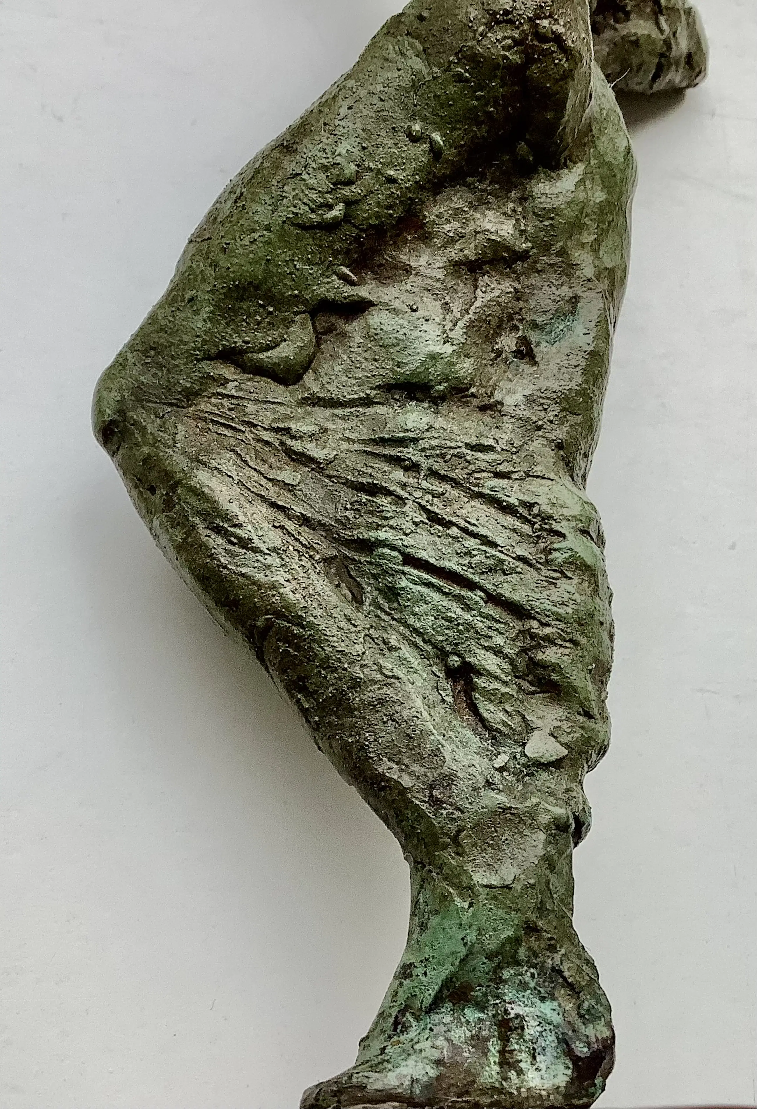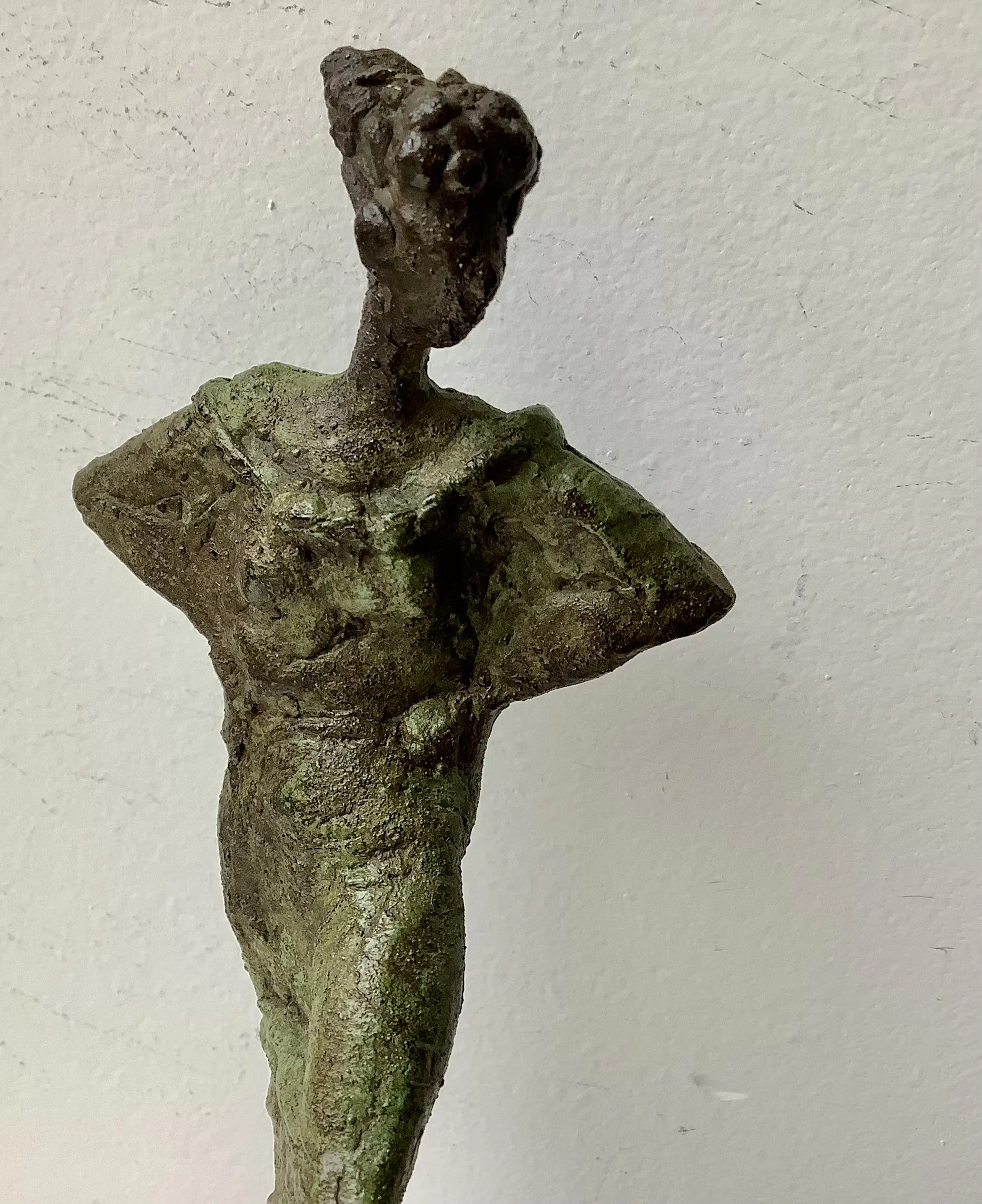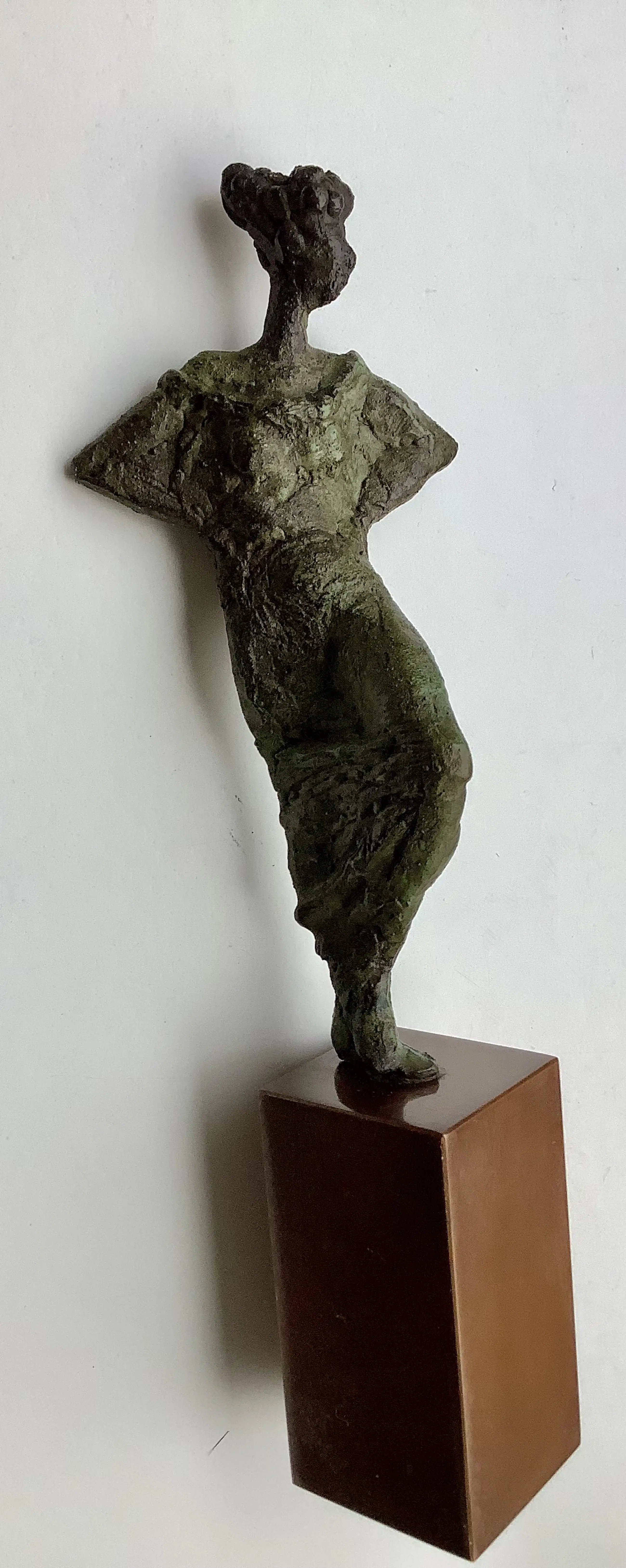Massief bronzen sculptuur van Loek Bos. Aantrekkelijk beeld op fraaie koperen sokkel. Mooie details en fraaie patina.