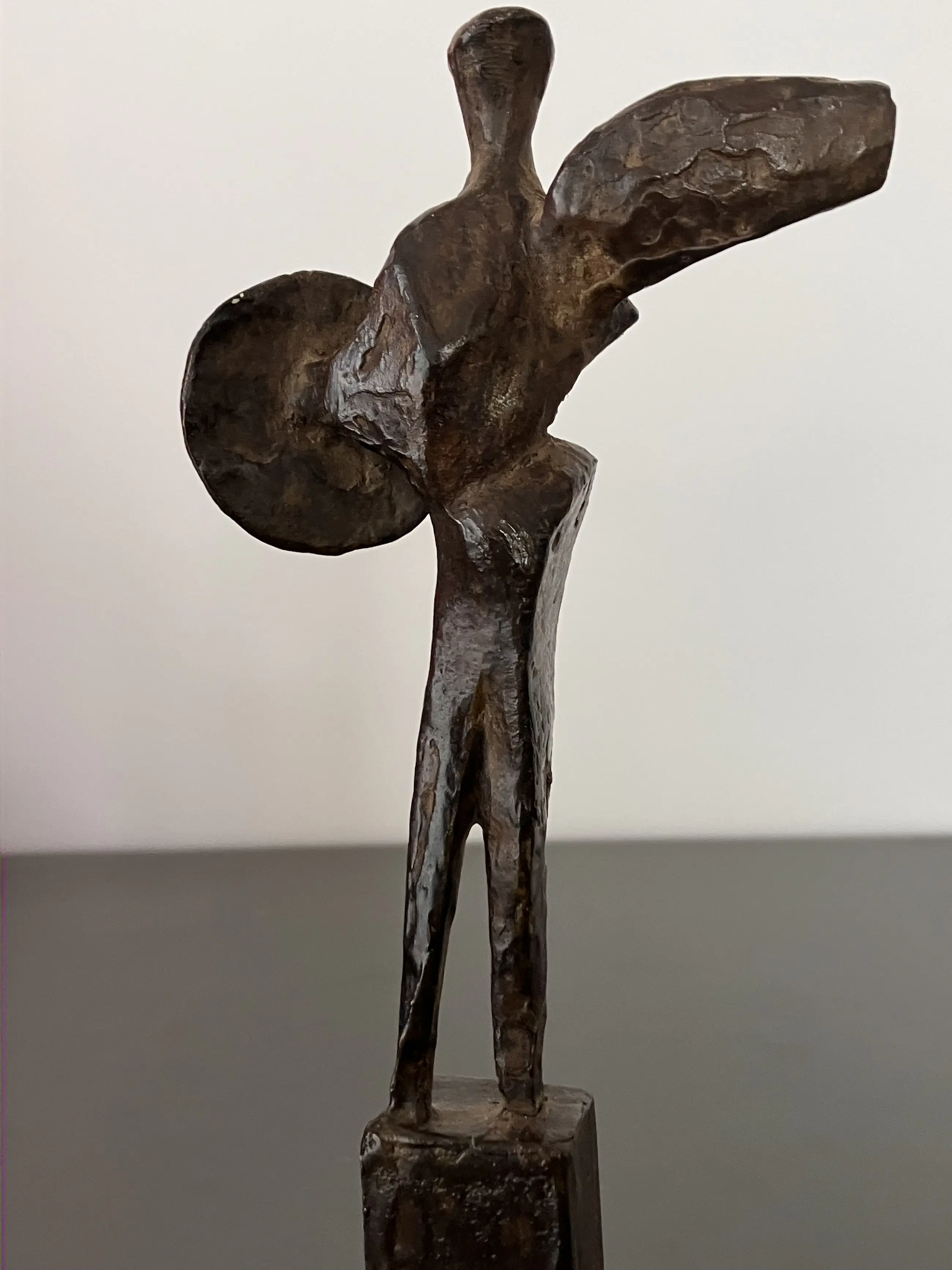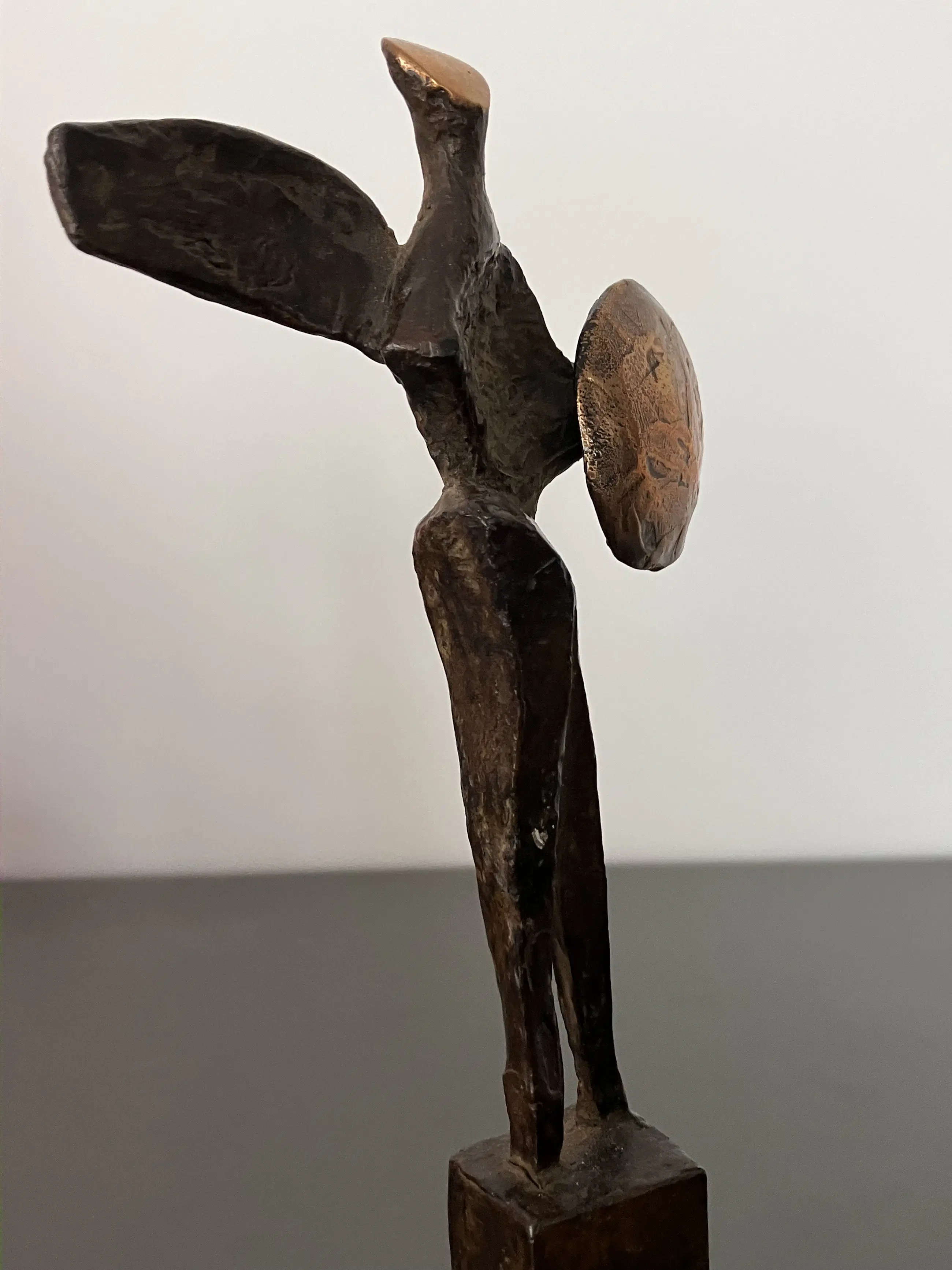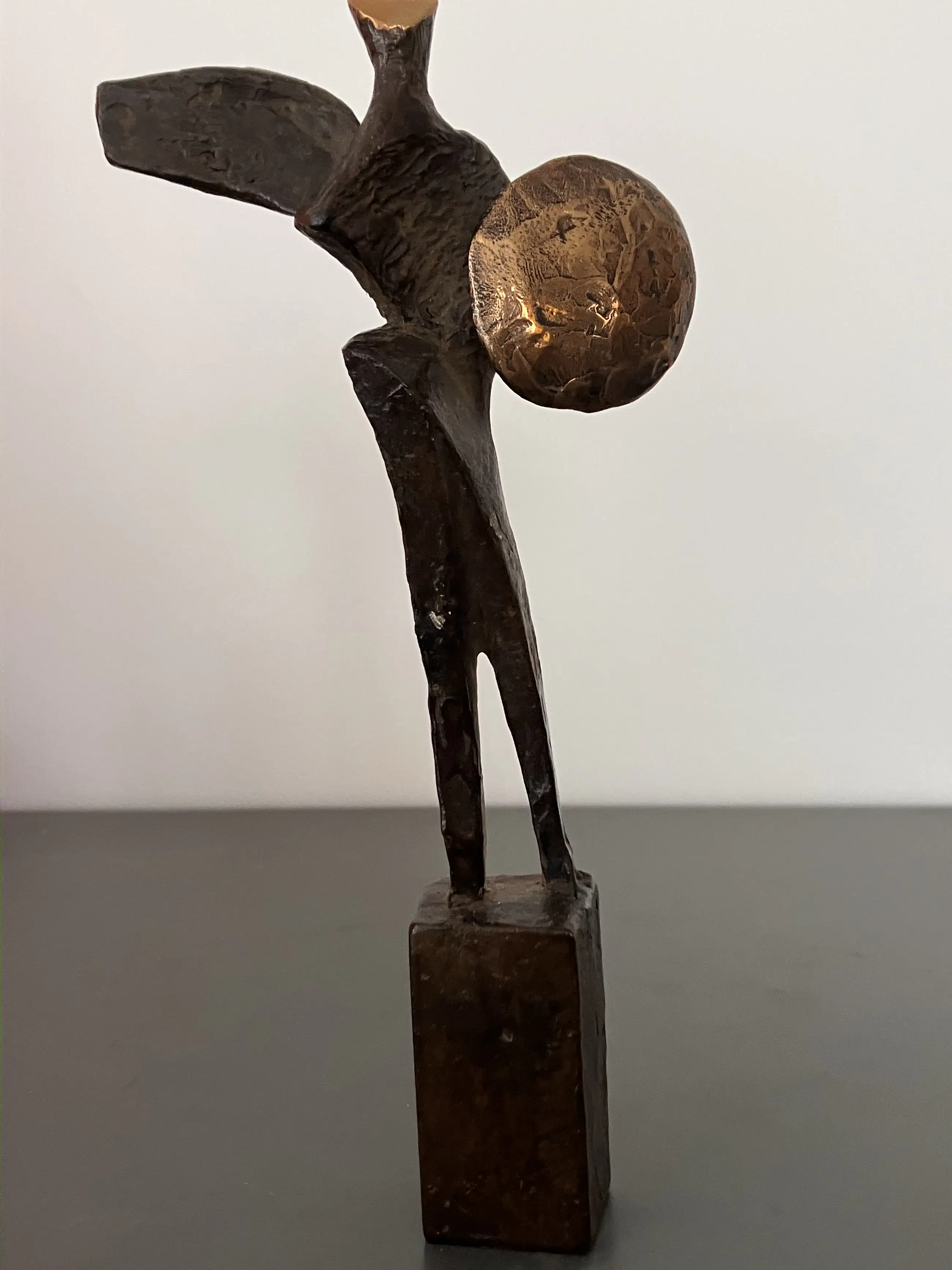 Fraai massief bronzen sculptuur van Strijder op bronzen sokkel