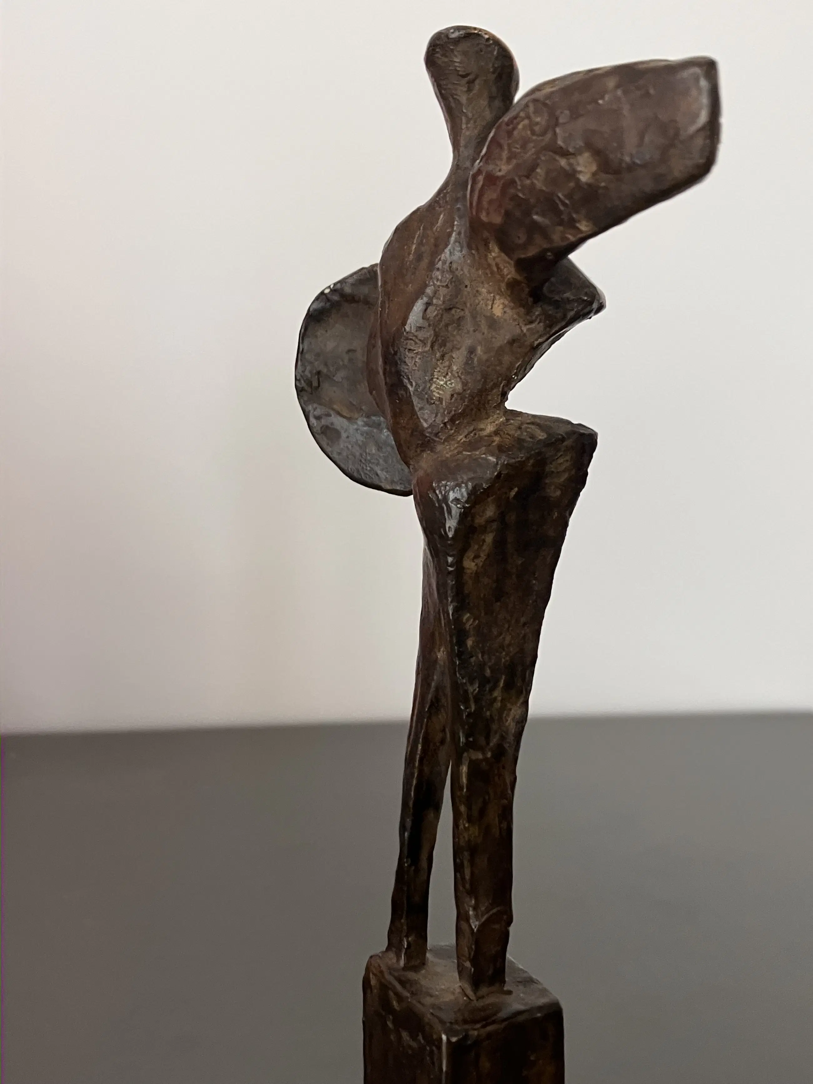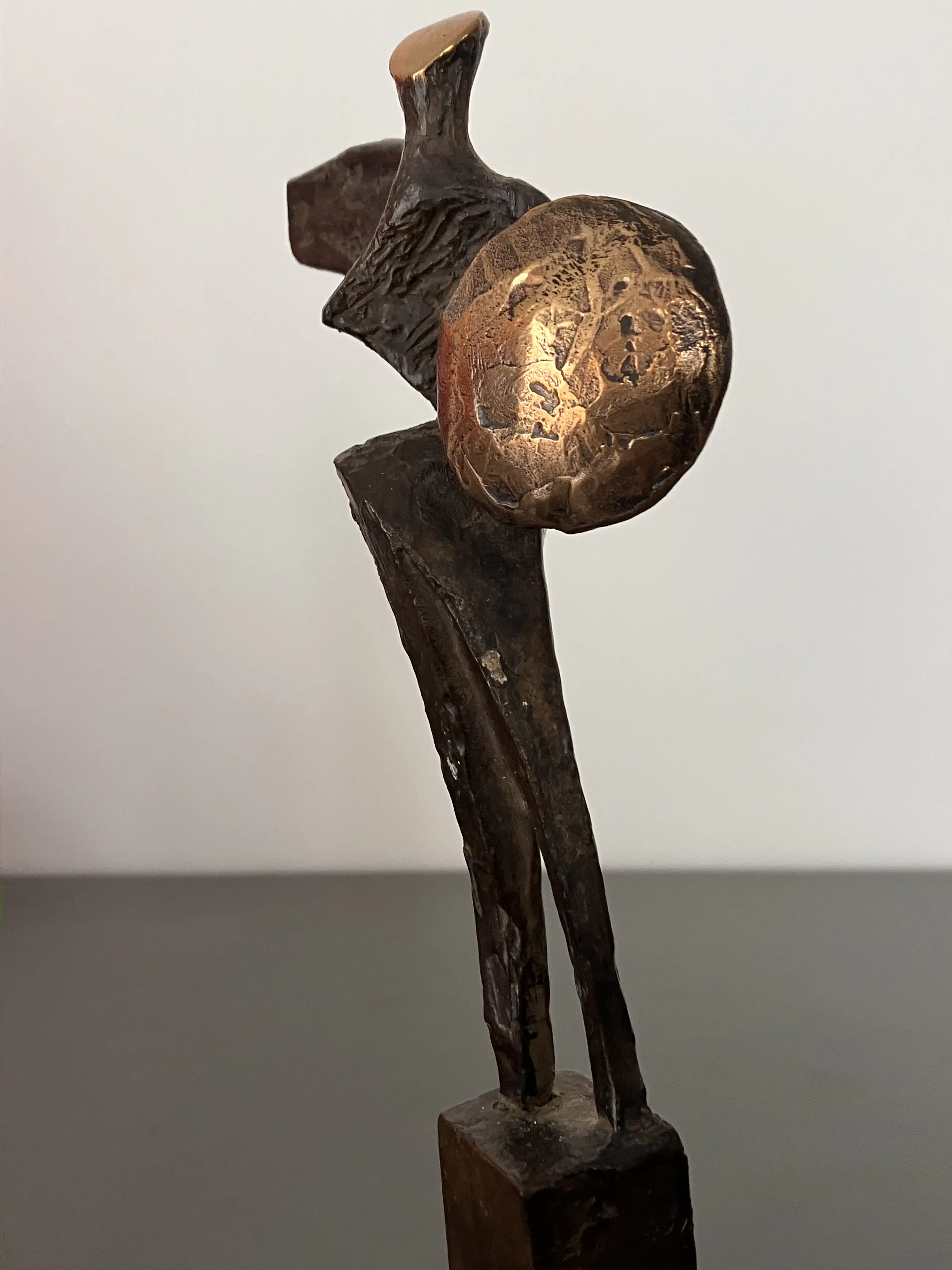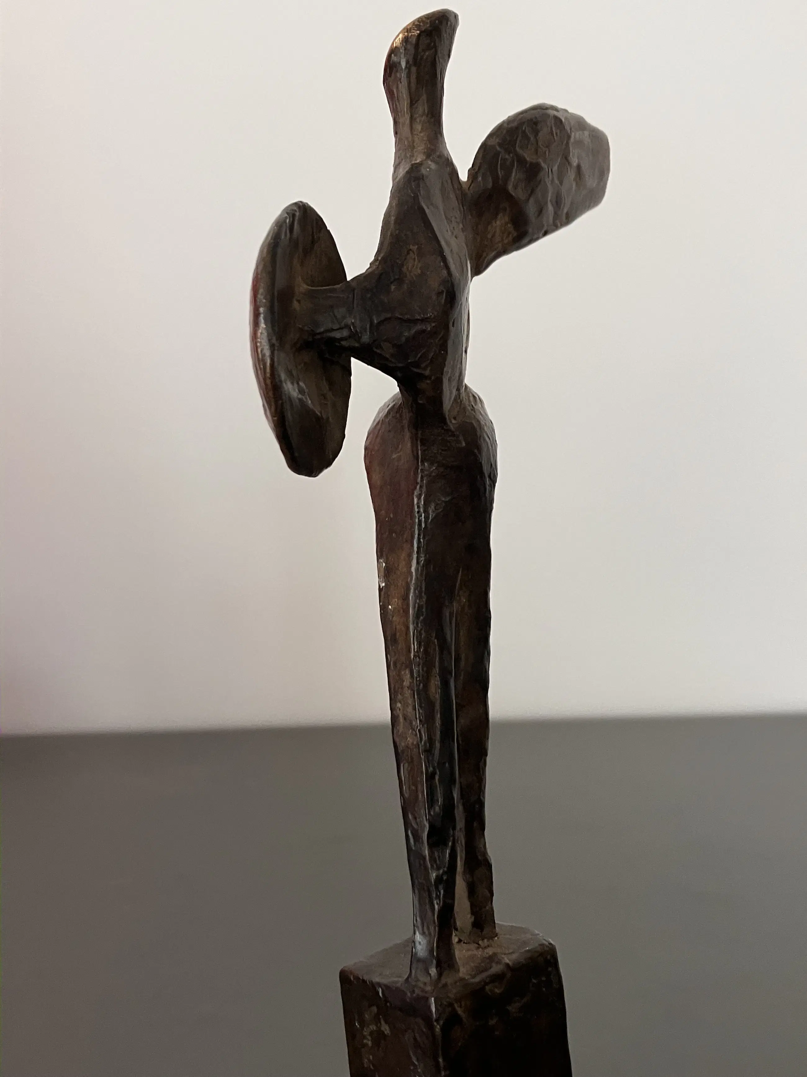Fraai massief bronzen sculptuur van Strijder op bronzen sokkel