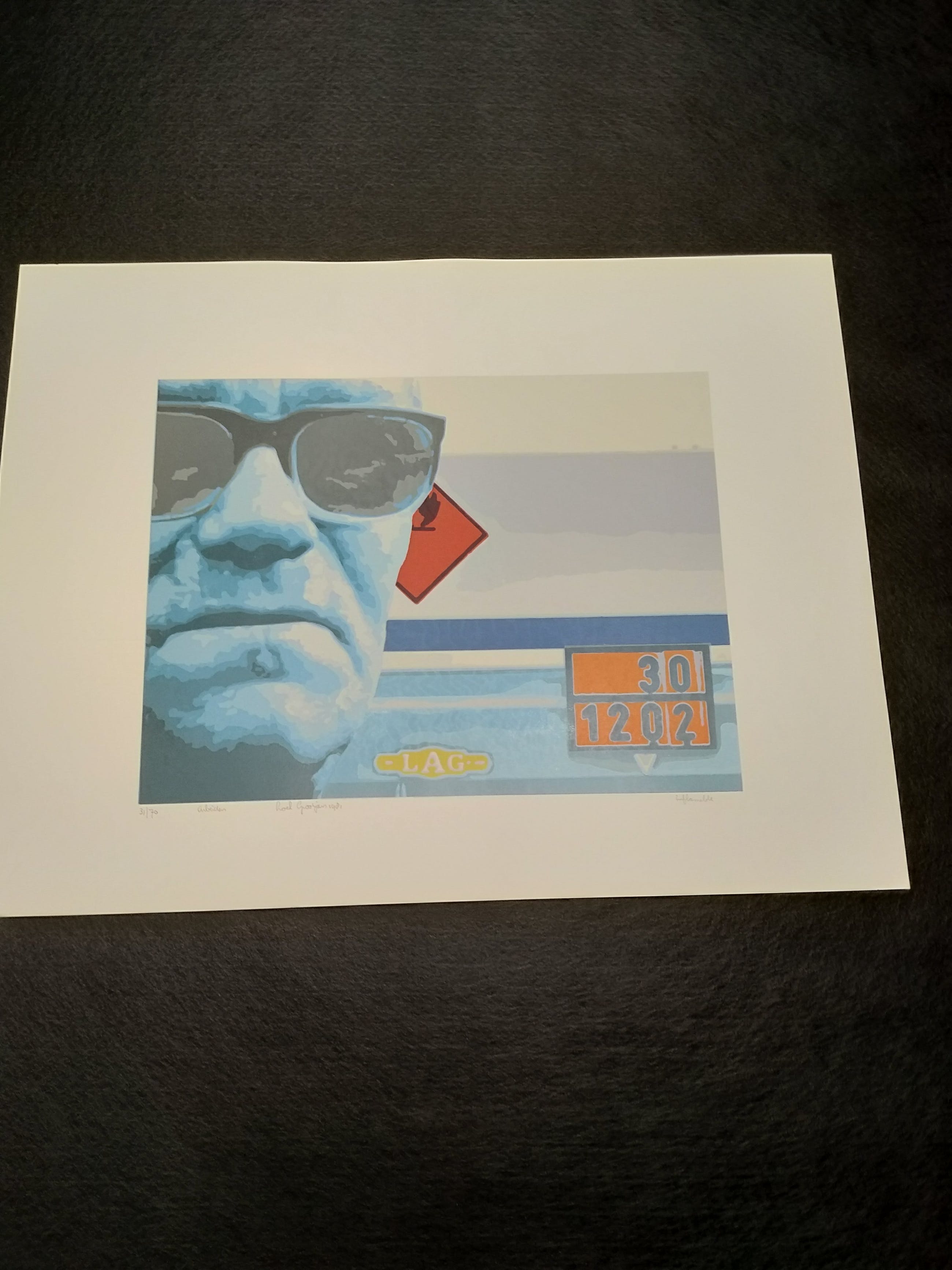 Titel inflamableKunstenaar Loek grootjansJaartal 1981Uit de serie de ArbeidersNr 32/70Papier 65br x 50cm hoog