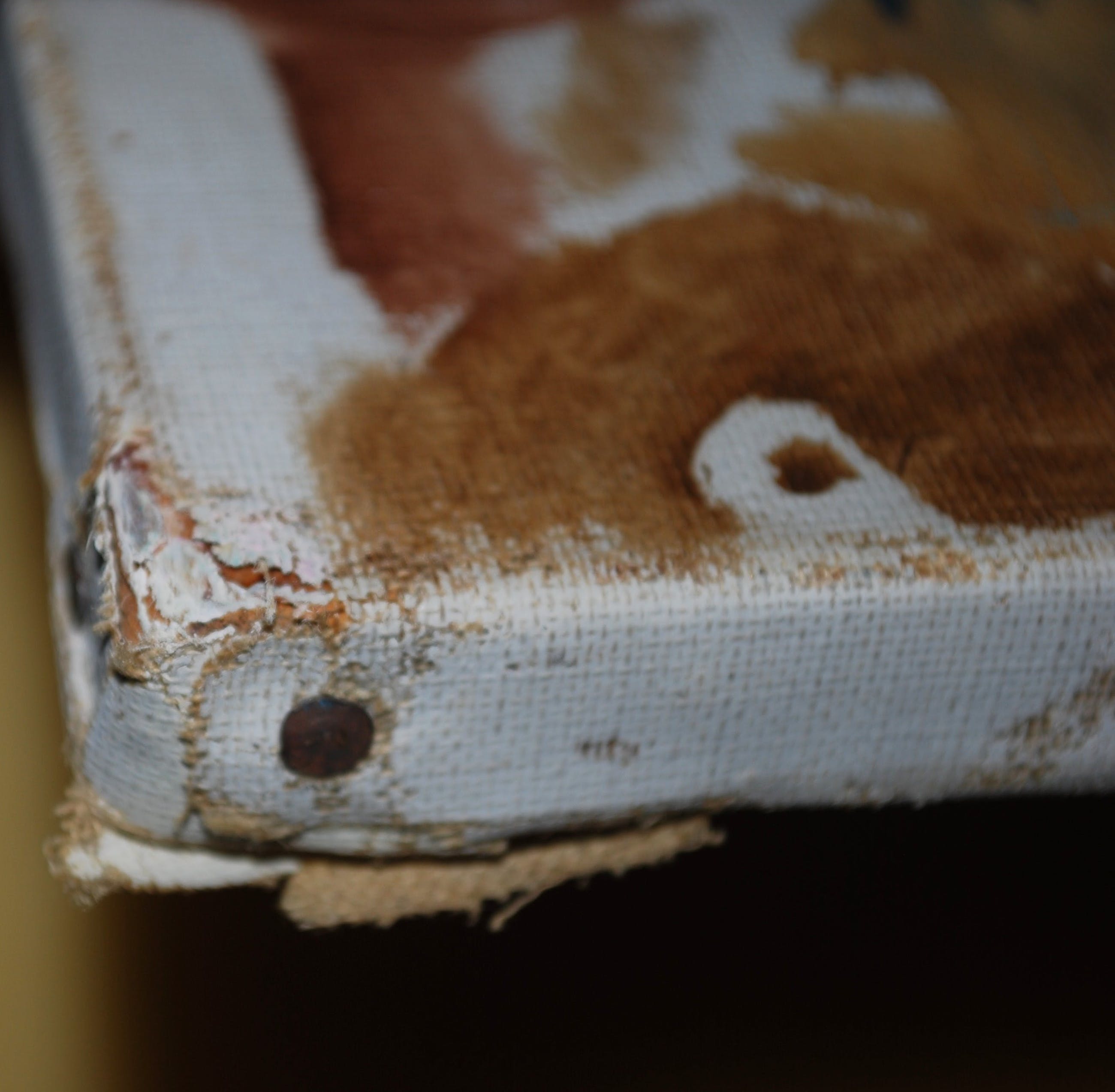 In redelijke staat. Slijtage van het canvas aan de 4 hoeken. Enkele minuscule gaatjes in het doek.
