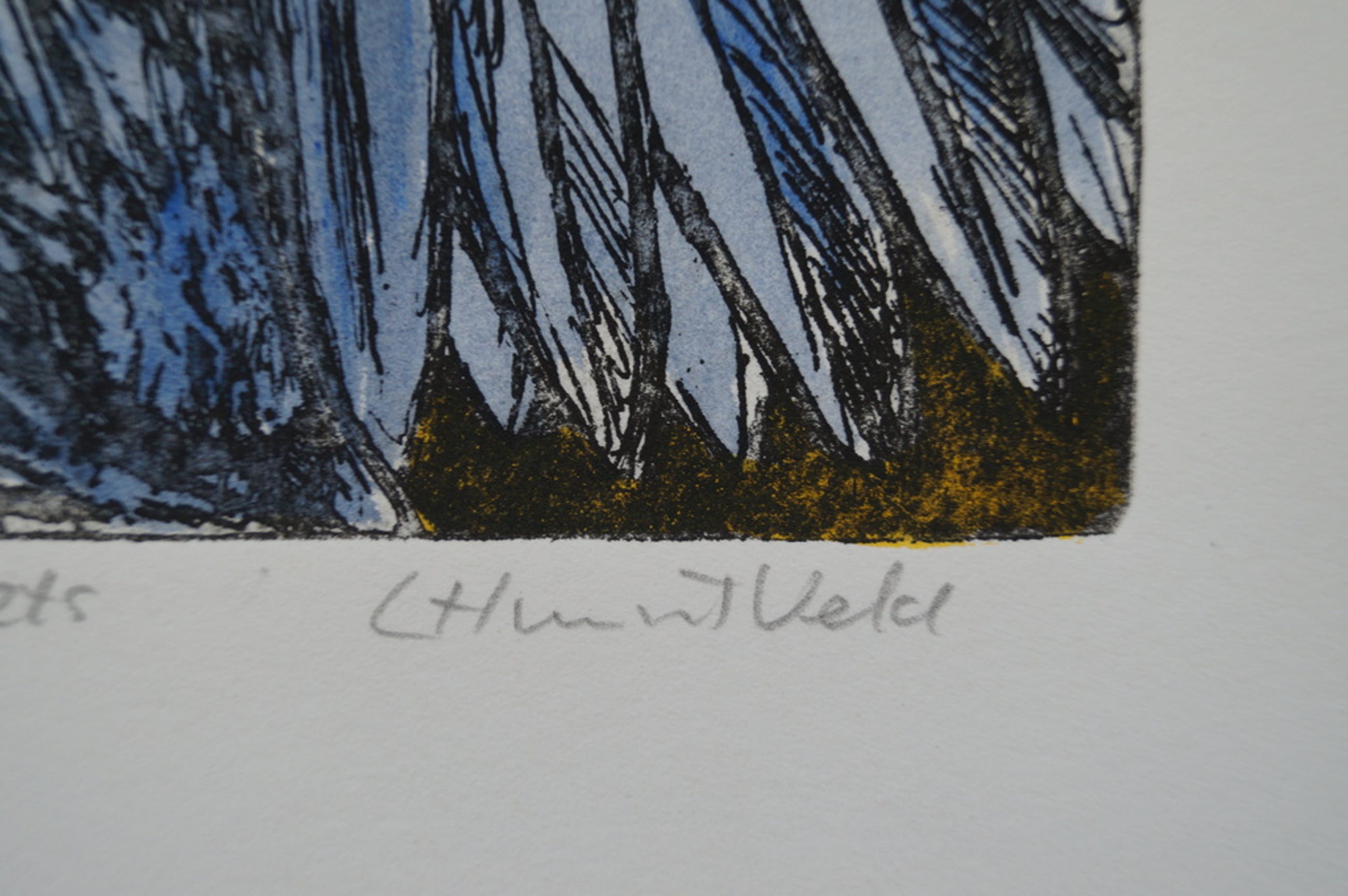 Bijzonder fraaie ingekleurde ets van Loes Huis in 't Veld