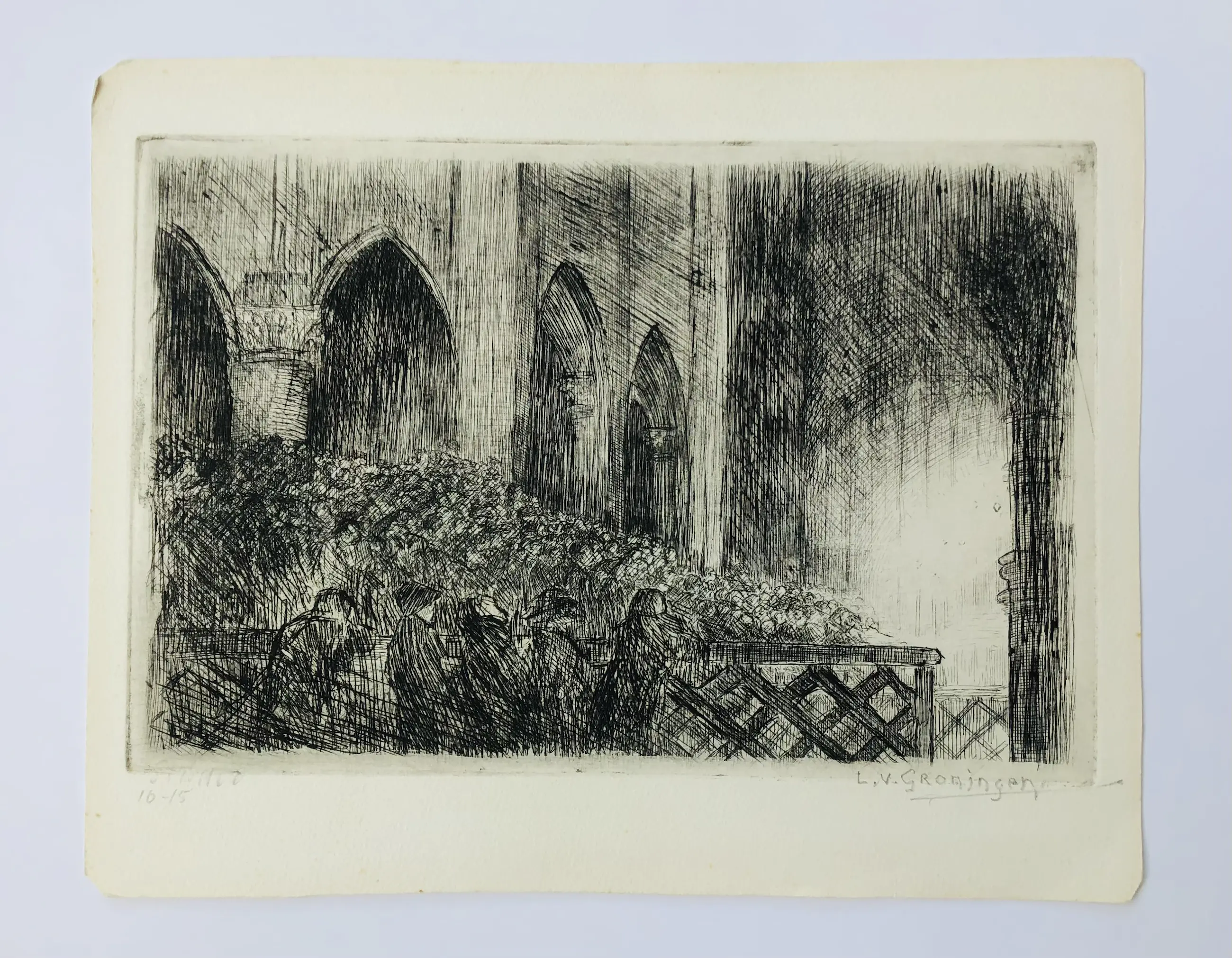 Fraaie drogenaald ets van Loes van Groningen (1884-1970). U kunt het werk vooraf komen beoordelen bij Rotor onze schatkamer in Gorinchem.