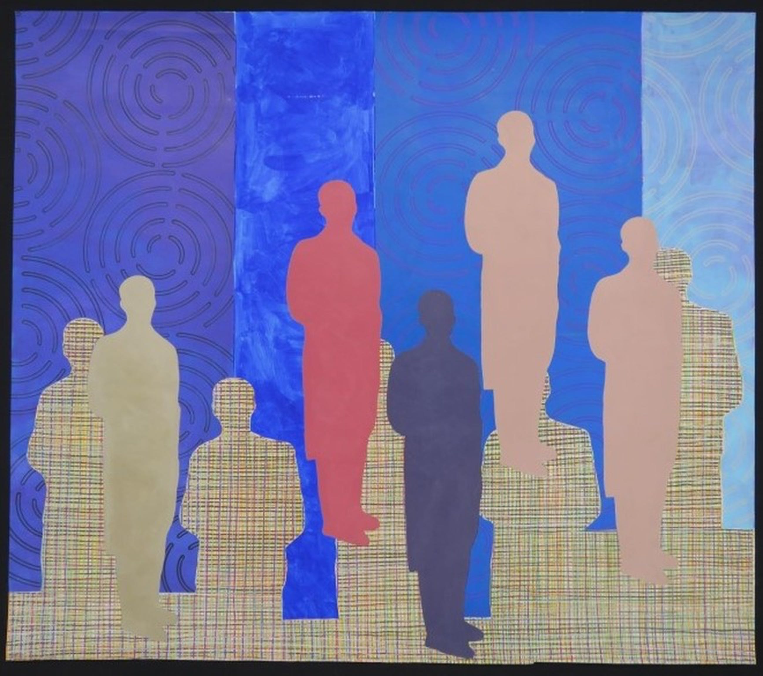 Materiaal: Gemengde techniek, acryl, potlood, stift, op papier