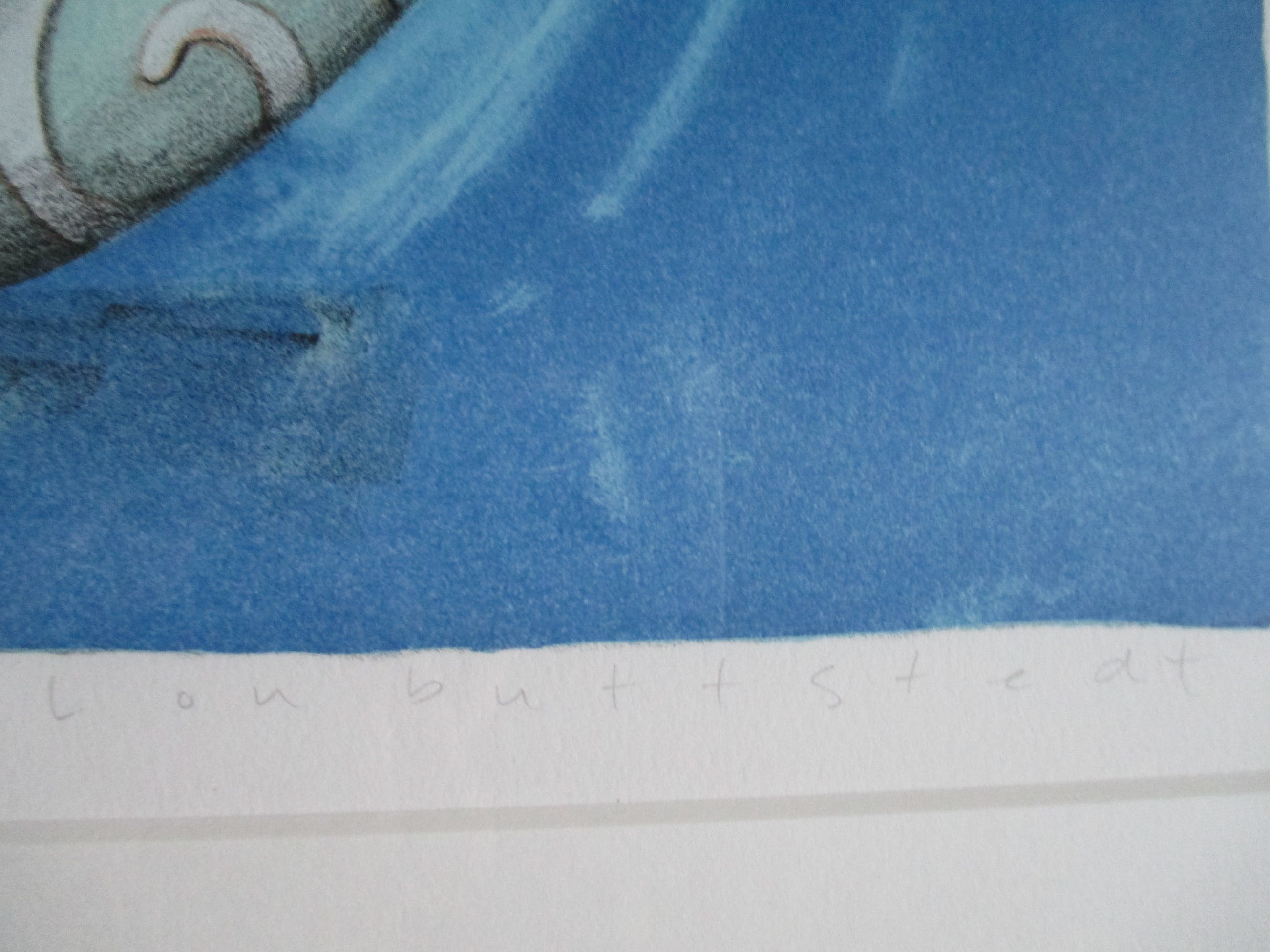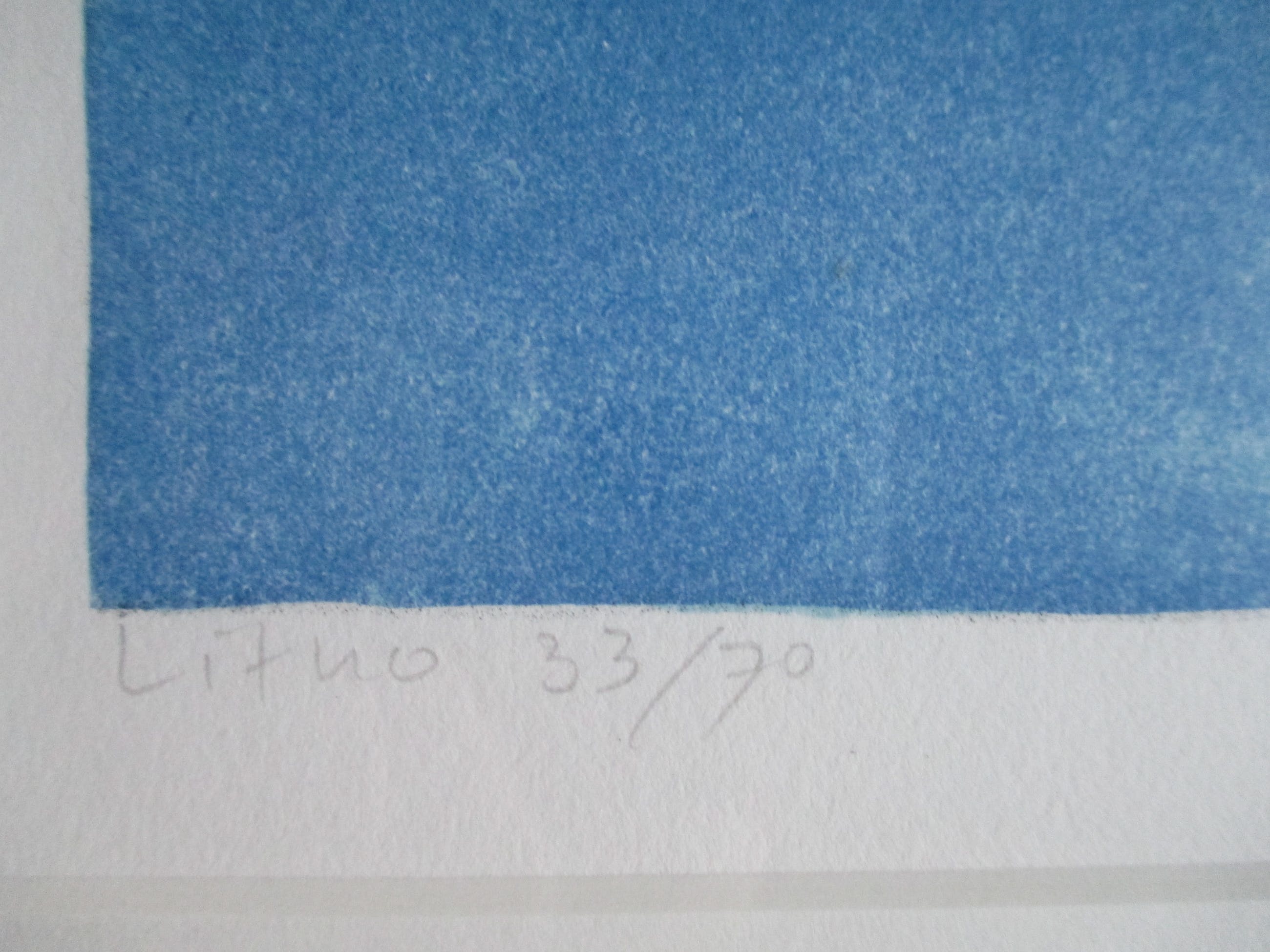 Litho van Lon Buttstedt (1950), r.o. gesigneerd, getiteld 'Himalaya Blues VI'. Mooi professioneel zuurvrij ingelijst achter glas in een Barth lijst. Het geheel verkeert in perfecte staat.