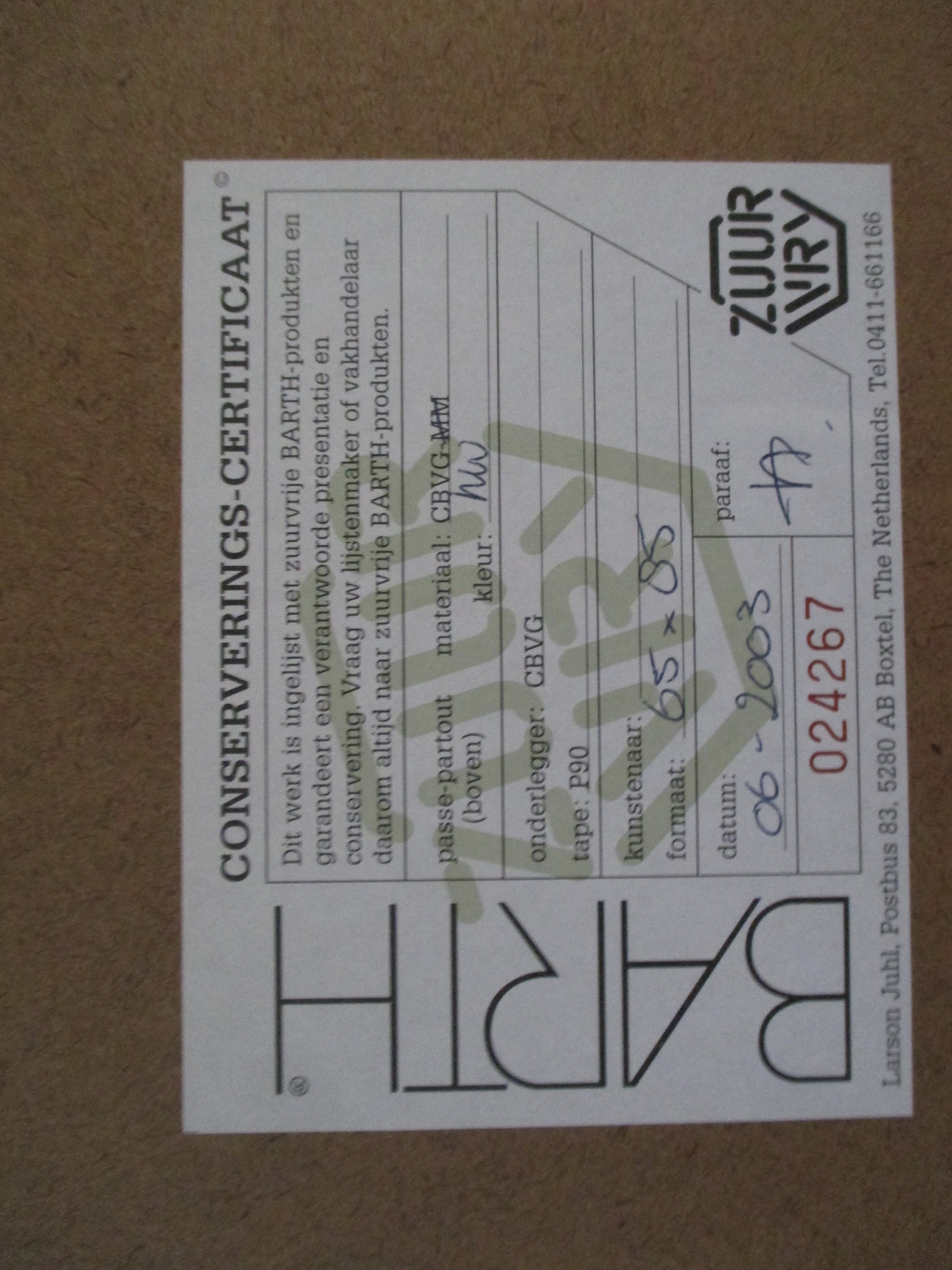 Het werk is af te halen op locatie. Als koper dient u zelf verpakkingsmateriaal mee te nemen. De locatie is: Voorthuizen, Nederland