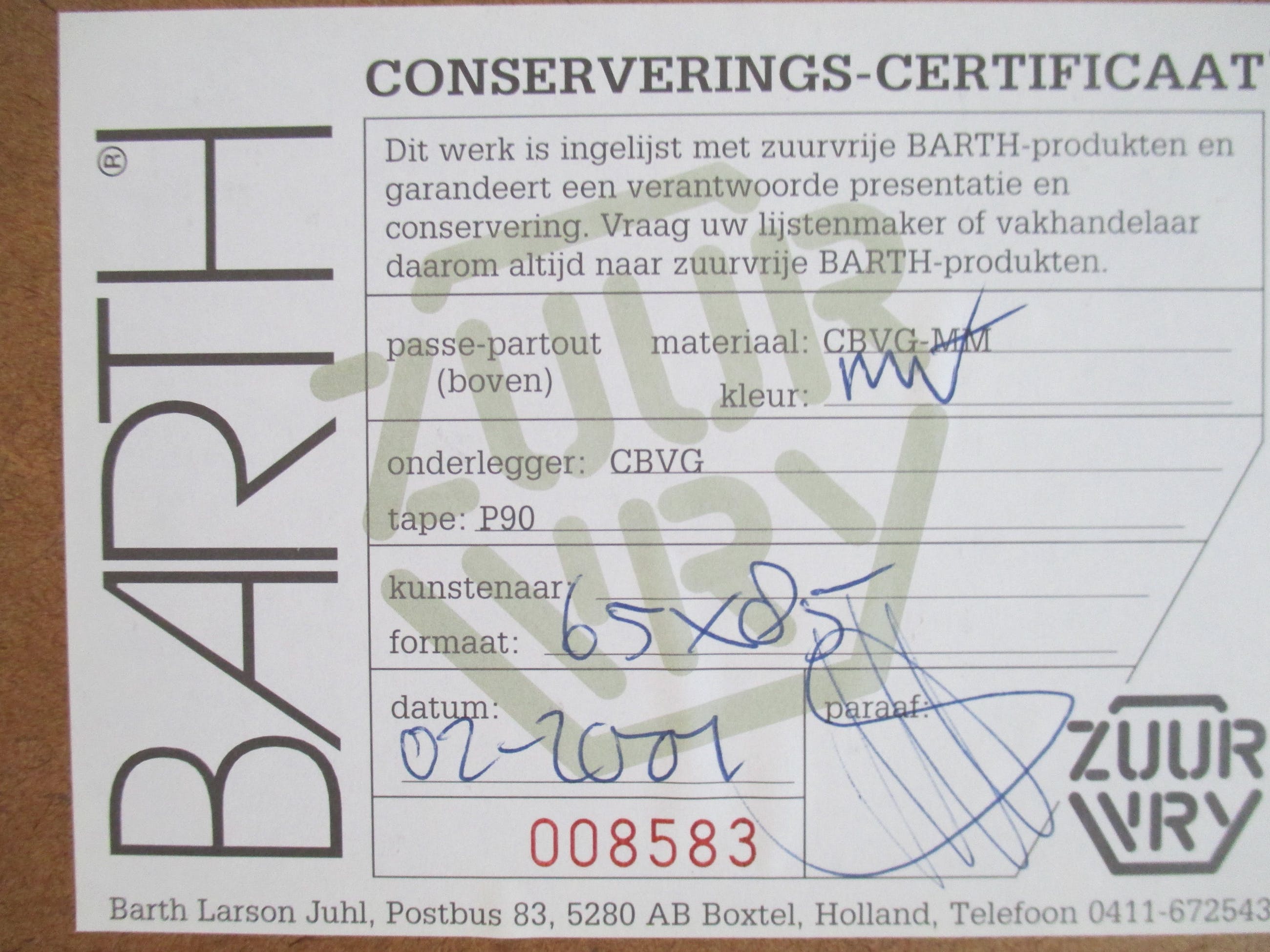 achter glas in een Barth lijst. Het geheel verkeert in perfecte staat.