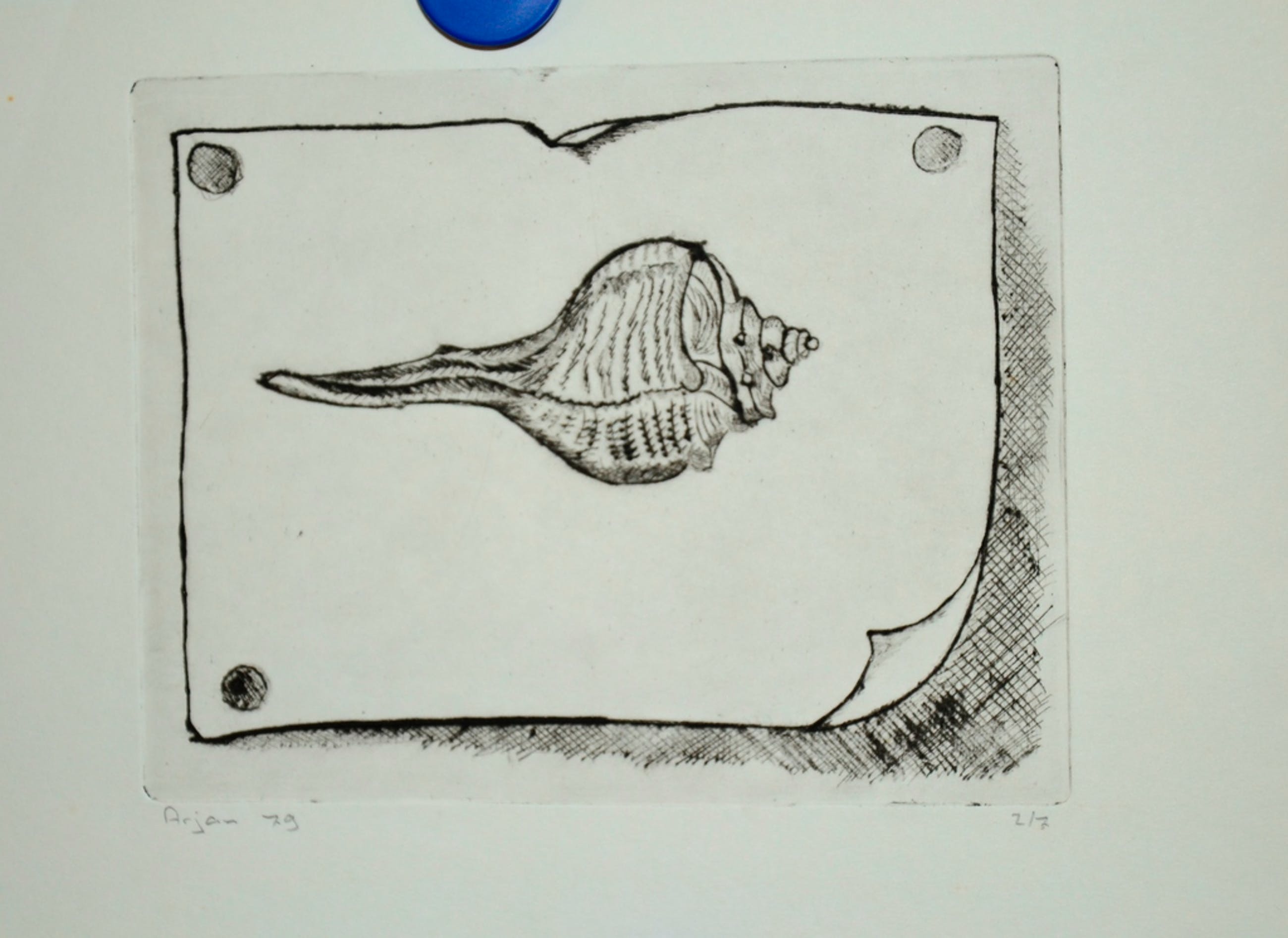 O.a.: Ets van een schelp (25 x 16 cm)