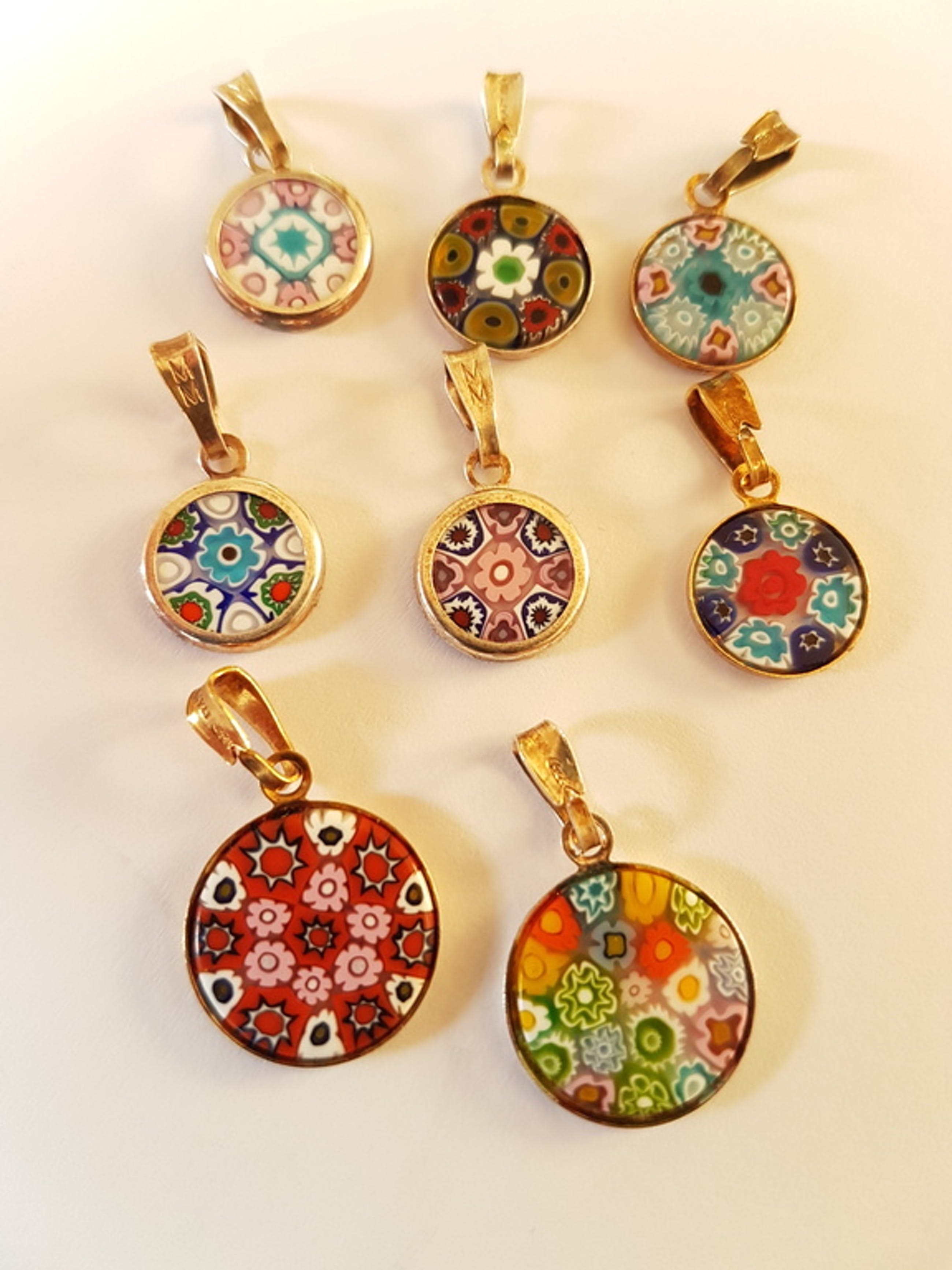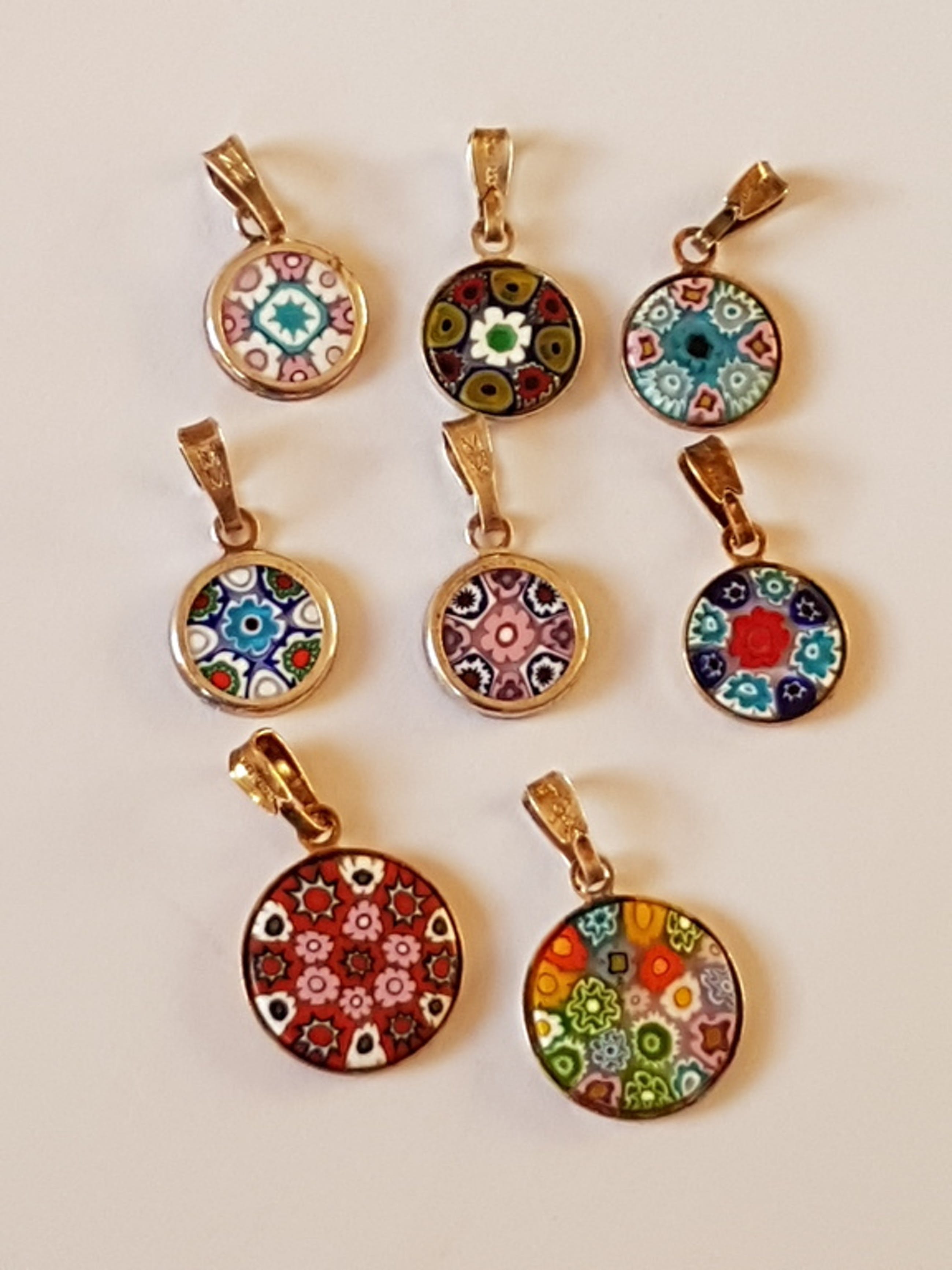 Lot 8 murrine veneziane zilver 925 en goud 18 kt