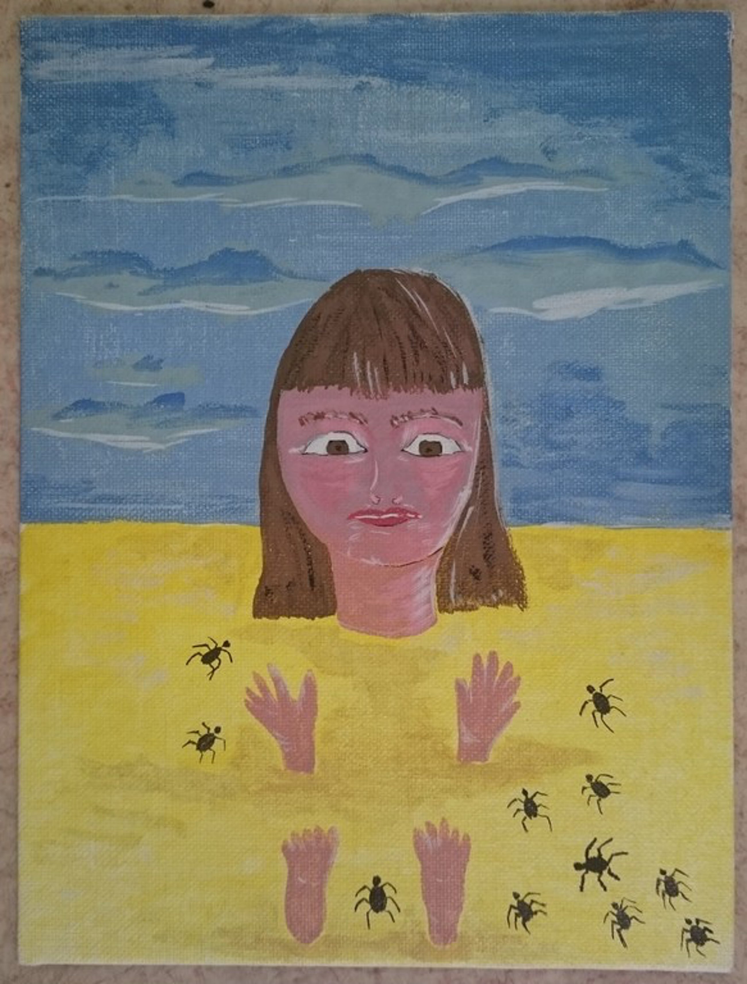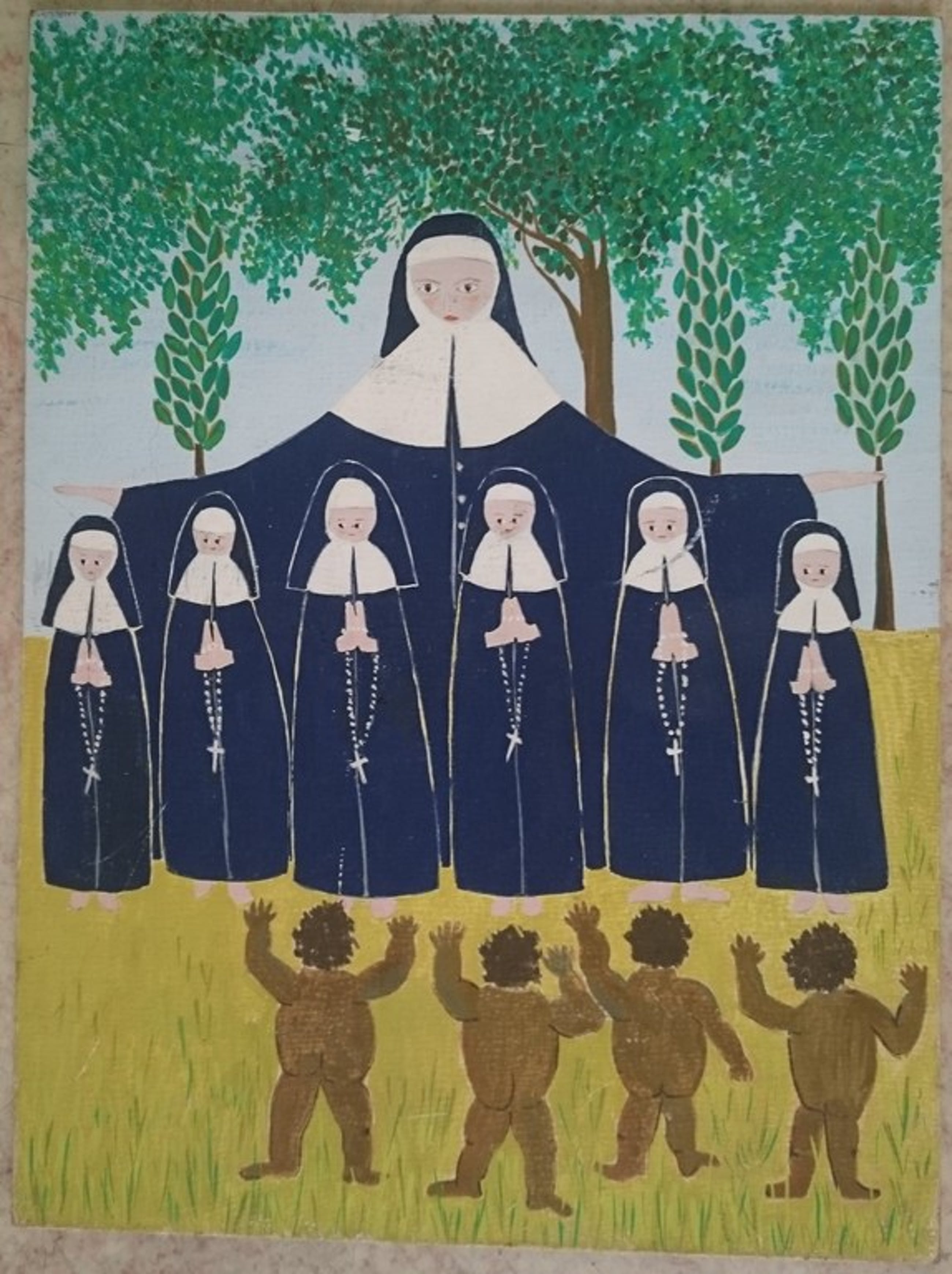 3 naïeve acrylverven op schildersboard (2x Talens Universal no2 / 1x Adero) 24 x 18 (h x b) in redelijke staat van dezelfde onbekende kunstenaar.