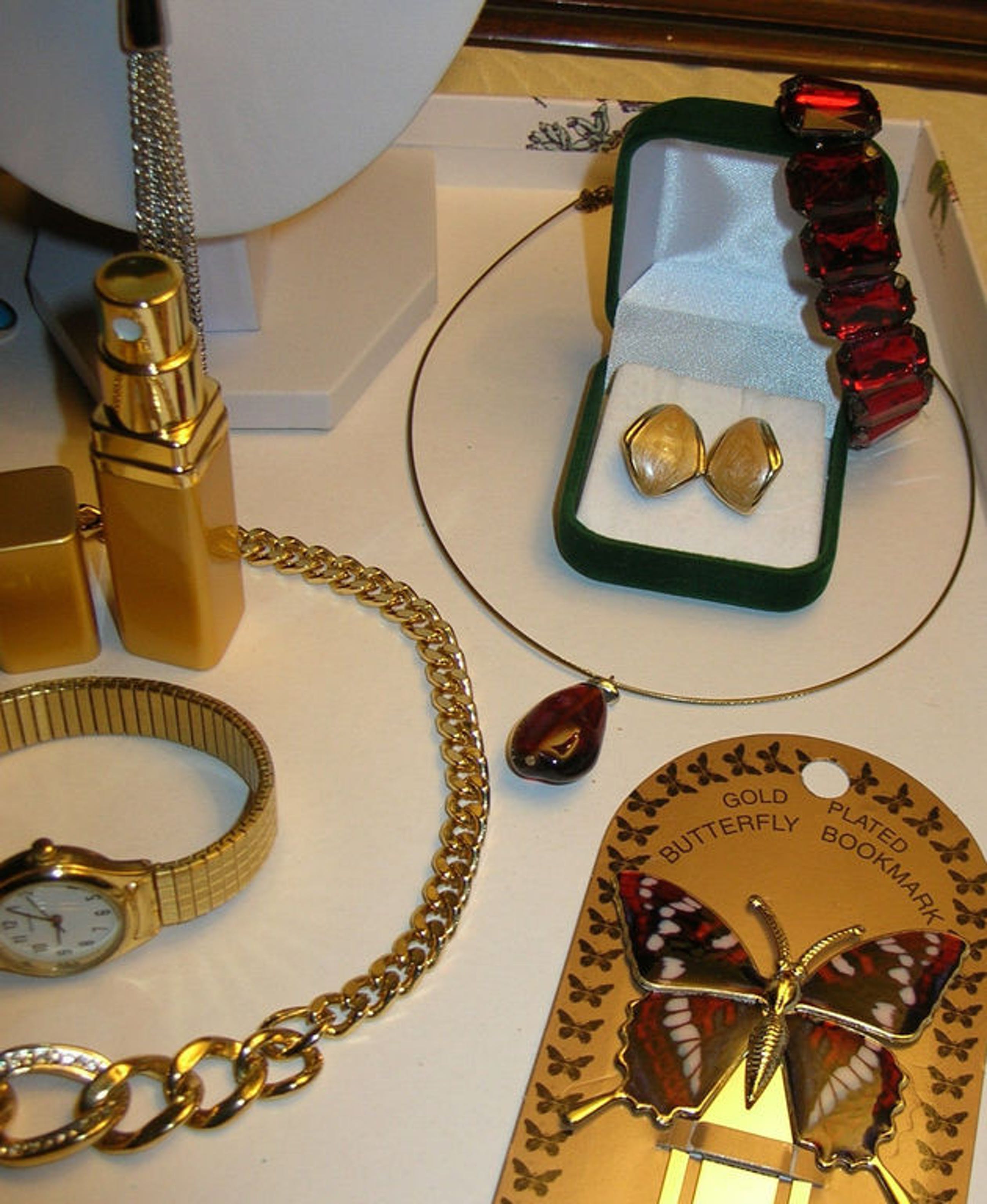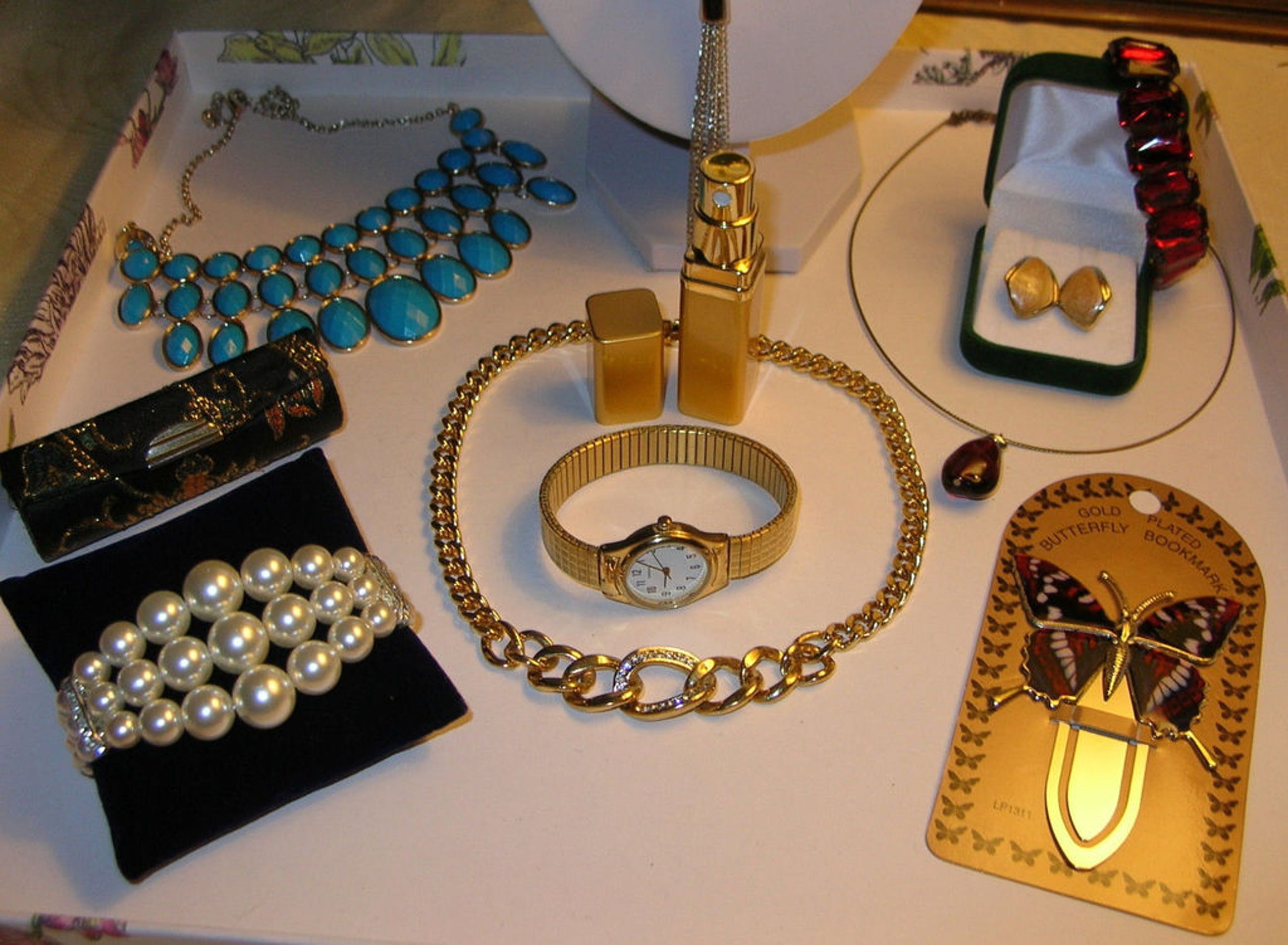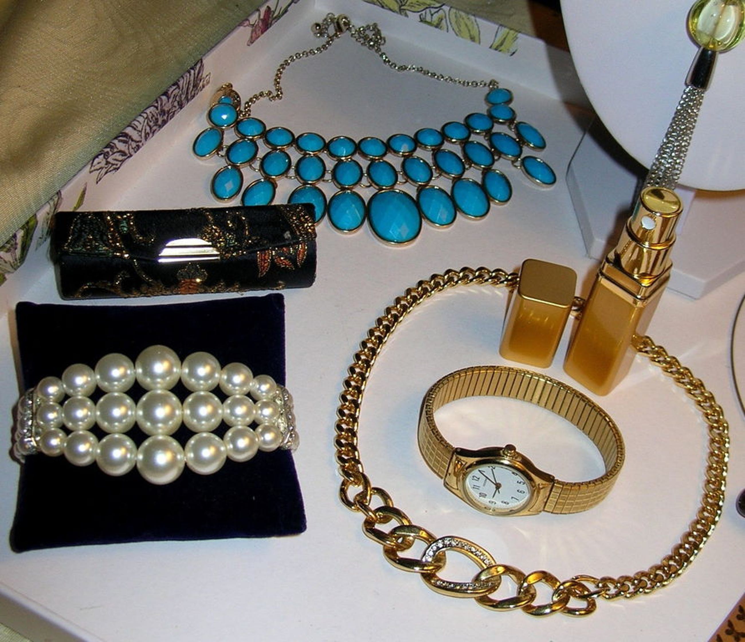 veel gemengde voornamelijk vintage sieraden, waaronder een emaille vlinder bladwijzer, een goudkleurige verstuiver, een parel dubbelstrengs ketting, een parel triple gestrand armband, een Sekonda horloge verkocht zoals te zien, maar waarschijnlijk hoeft slechts een batterij, een satijnen lippenstift houder enz. Alles is in de reële (er is wat slijtage aan de dubbelstrengs parelketting) tot uitstekend, wearable vintage staat. Zie foto's voor meer informatie.