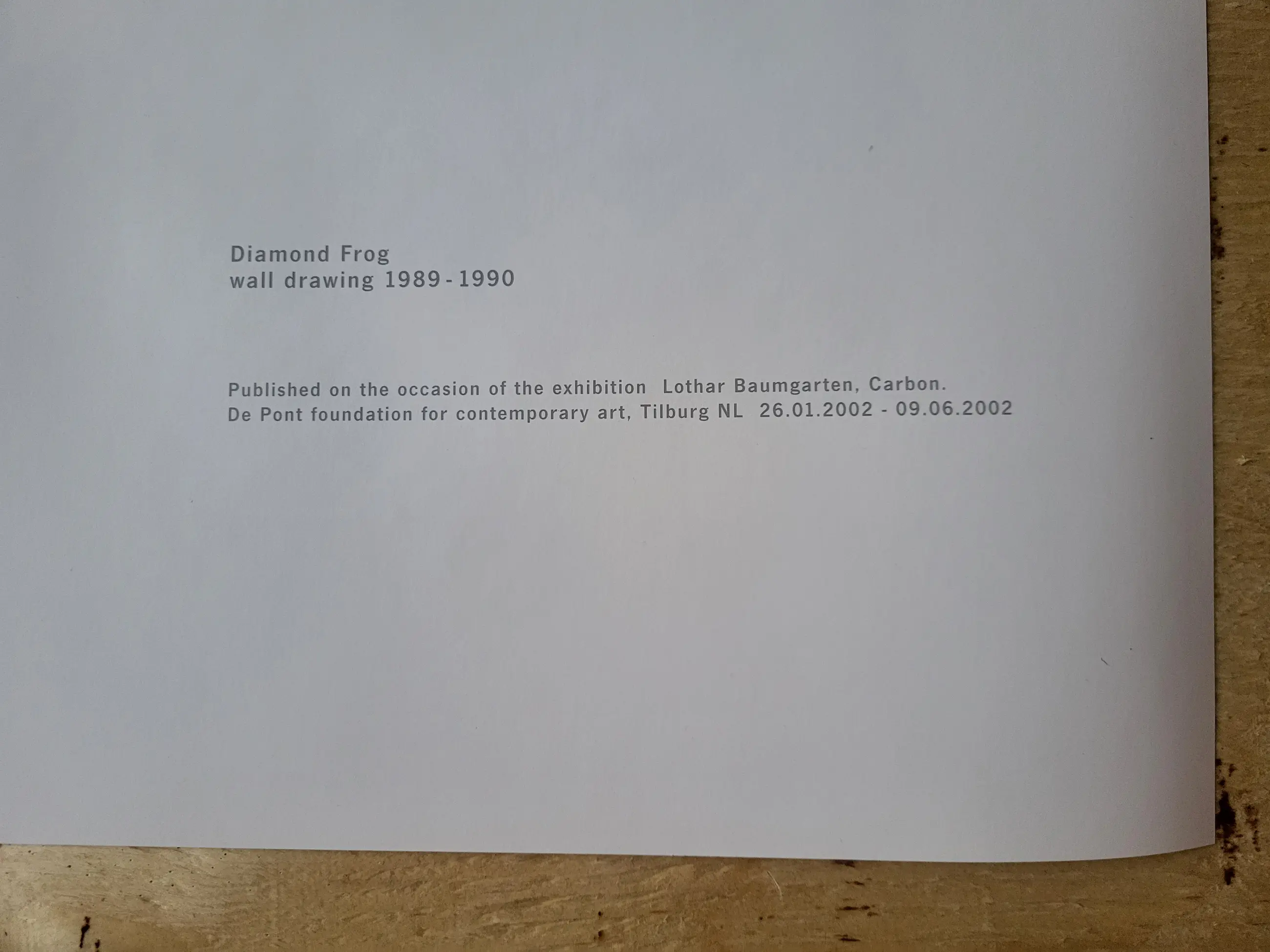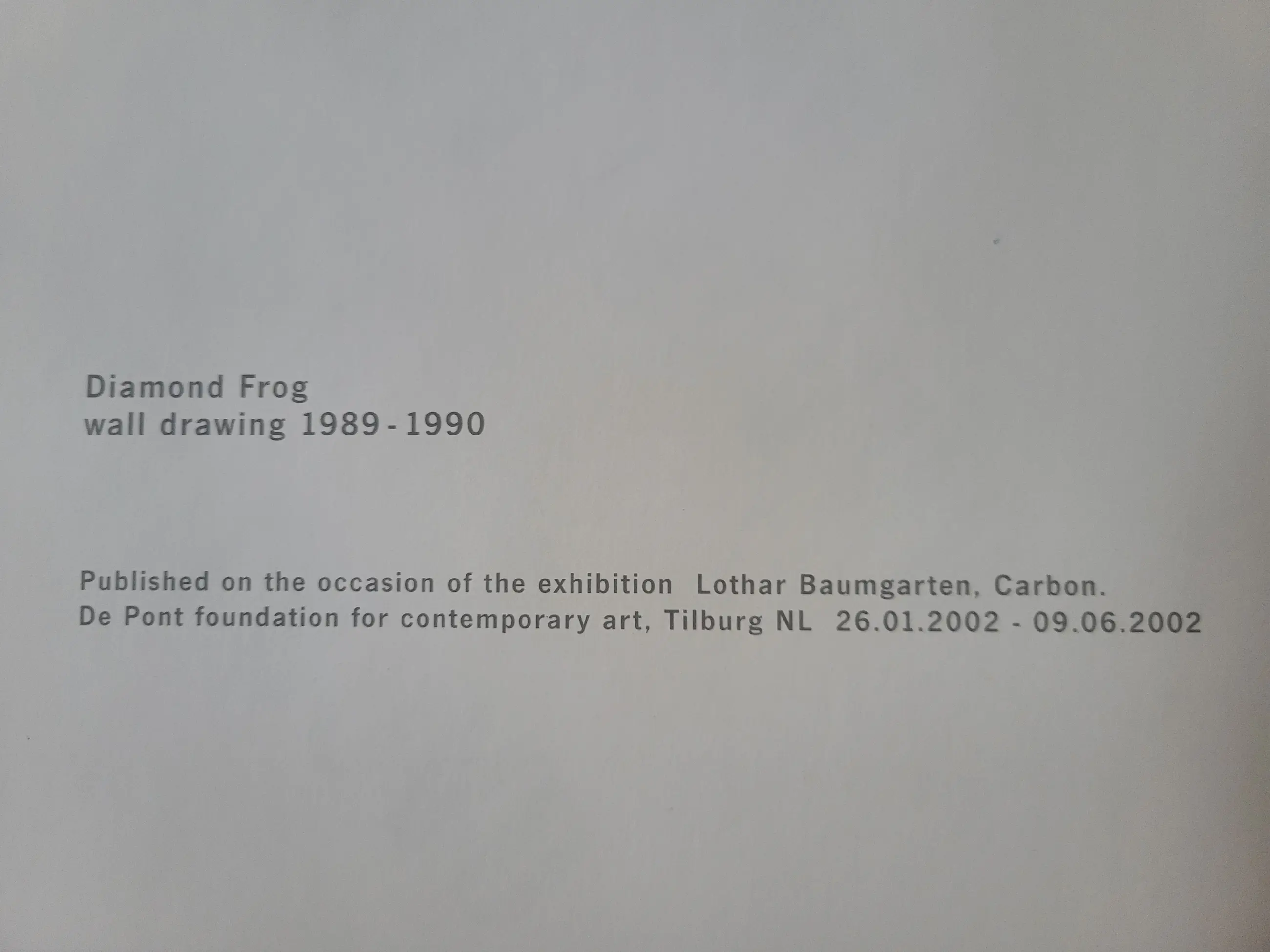 Published on the occasion of the exhibition Lothar Baumgarten. Carbon. 2002 Museum De Pont Tilburg. Wall Drawing 1989-1990.