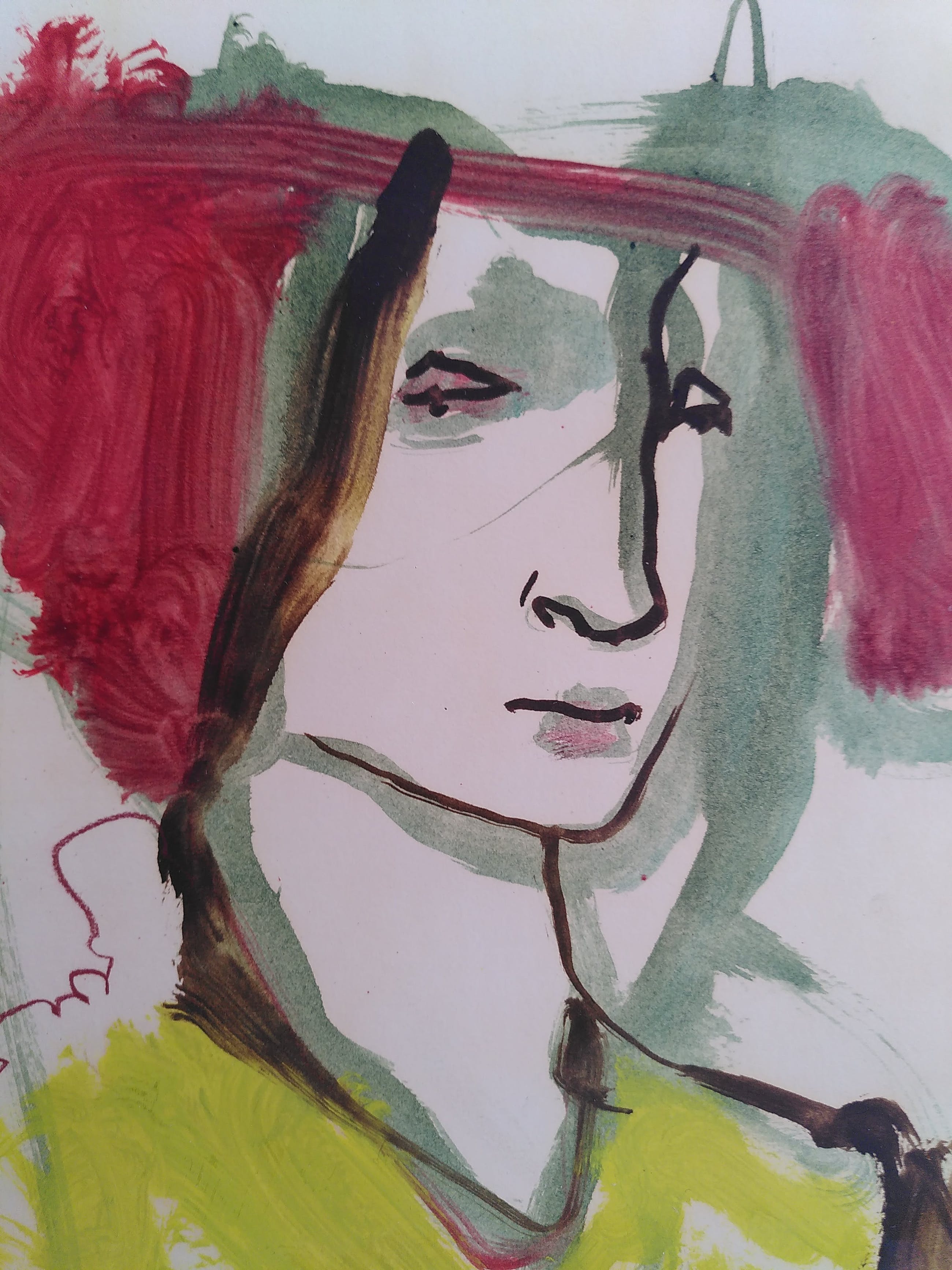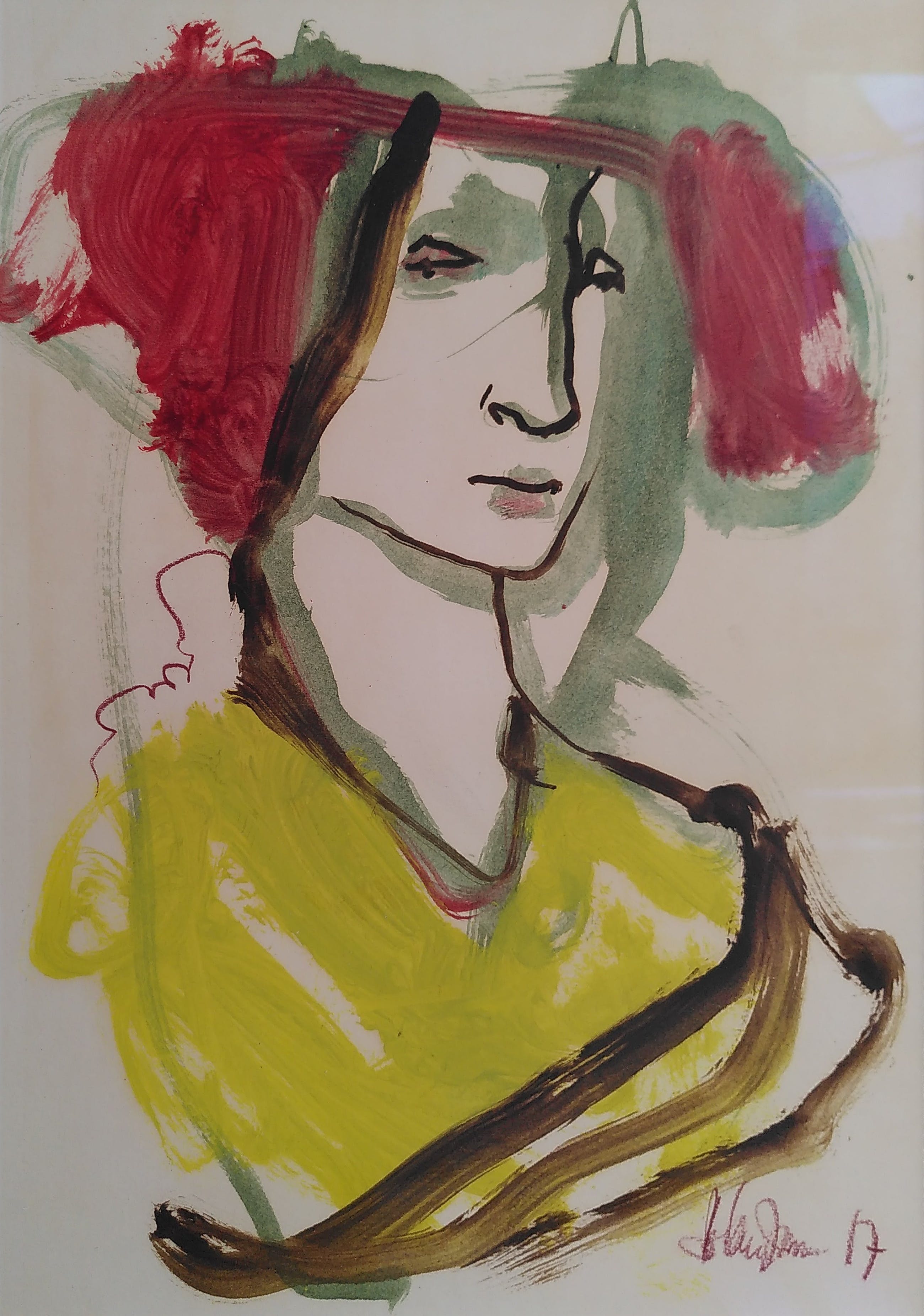 Uniek portret in aquarel van Lothar Kampmann, ingelijst in Barth wissellijst met UV-werend en anti-reflecterend glas.