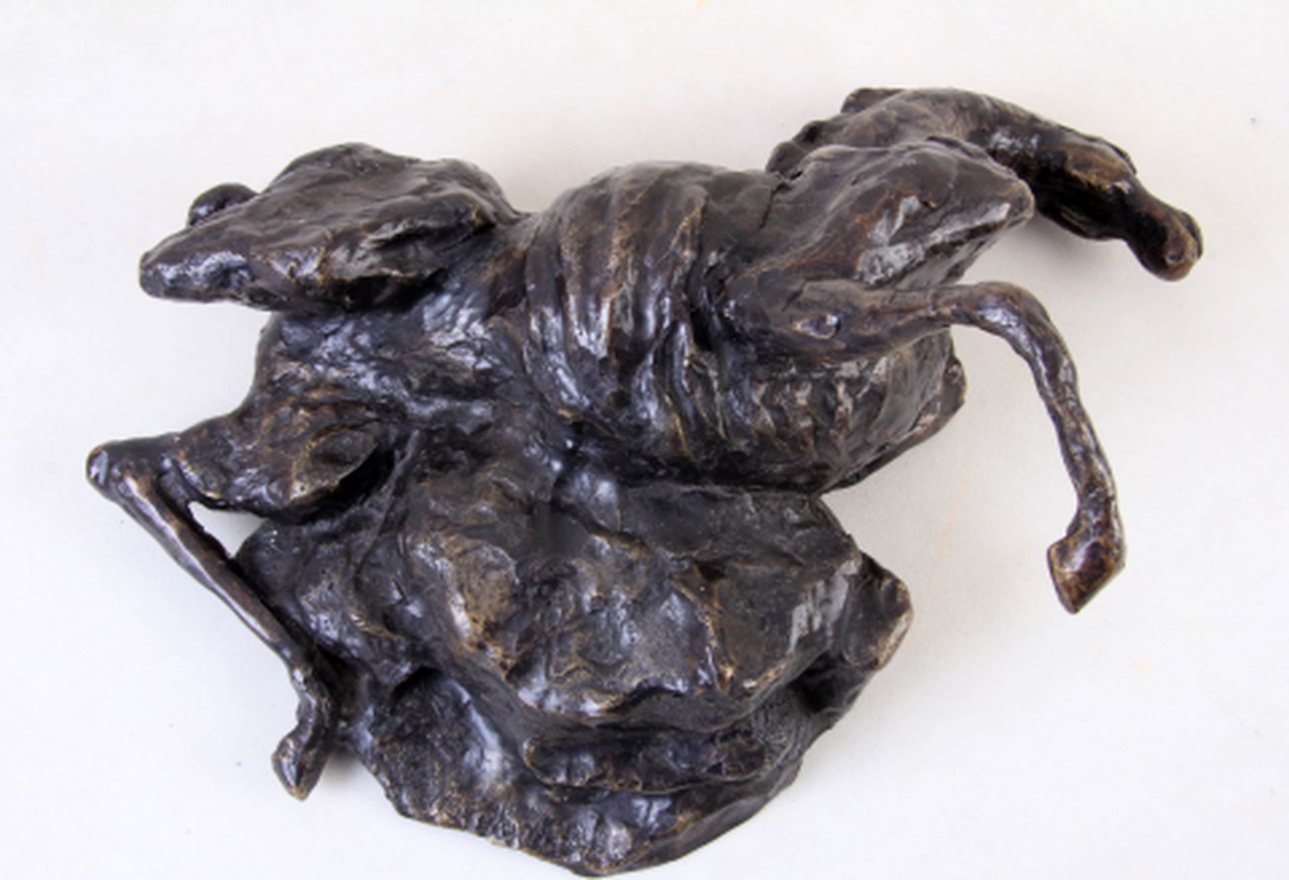 Zeer fraai bronzen beeld van een gesneuveld paard. Helaas is de dramatiek van het beeld moeilijk vast te leggen op de foto. UNICA!