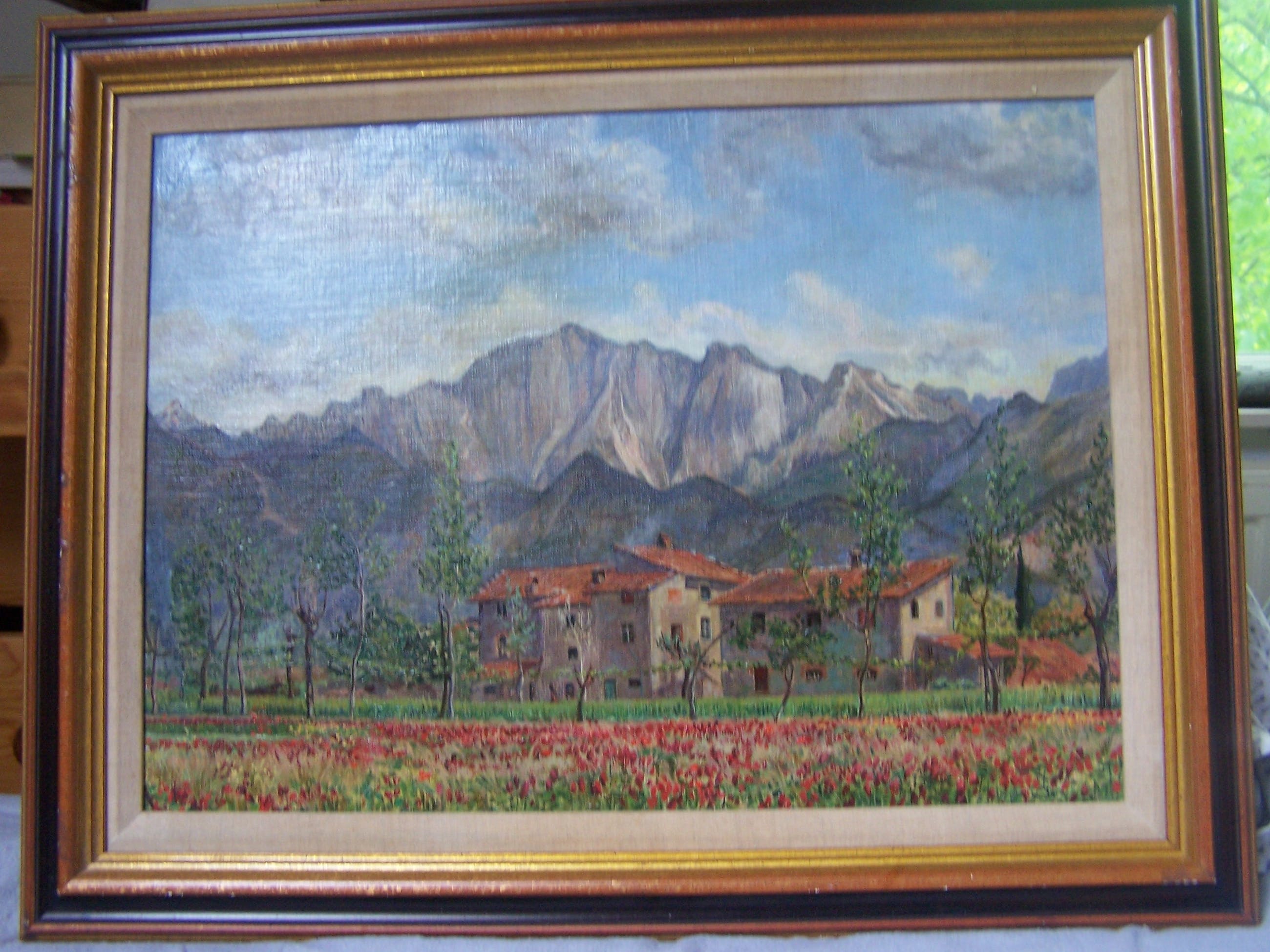 | De lijst heeft wat gebruikerssporen, Maar het schilderij is gezien de leeftijd in goede condittie | |||||||||||