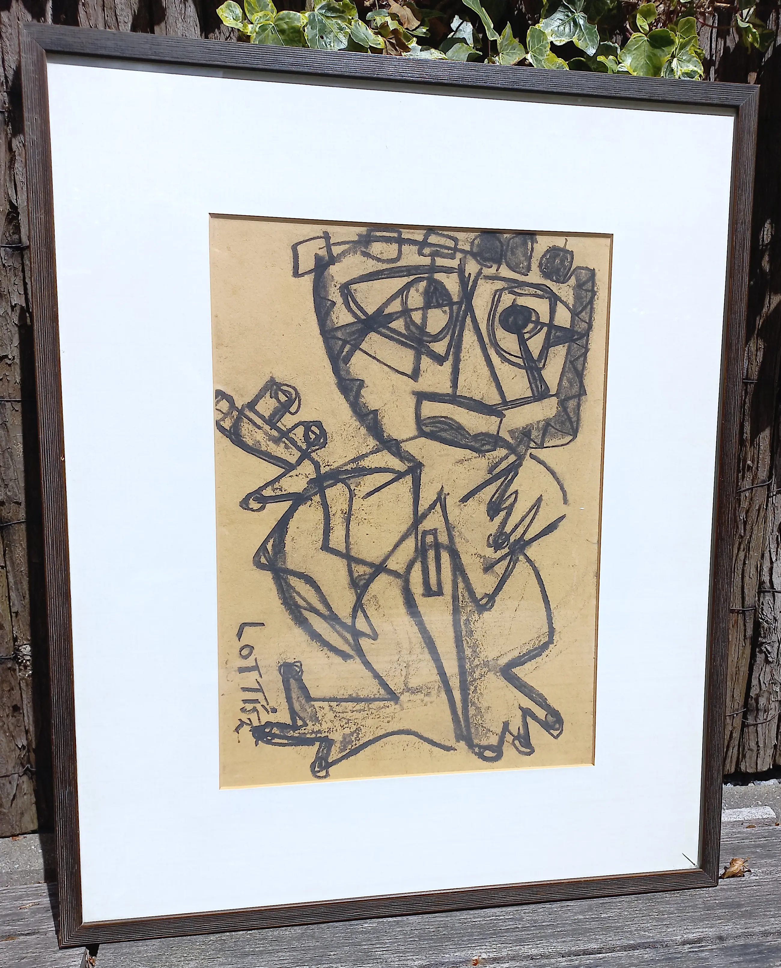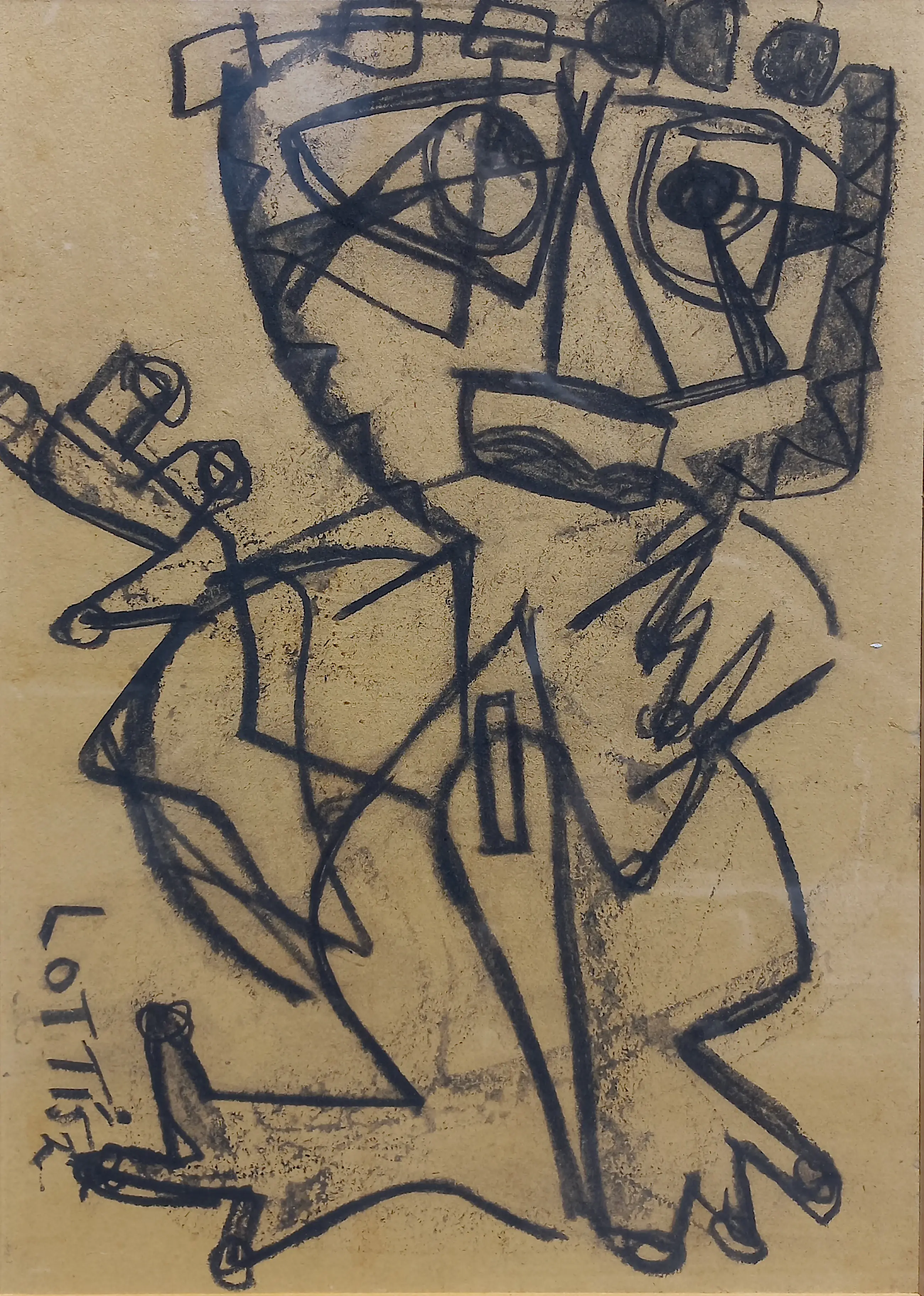 Mooi, vroeg werk van Lotti van der Gaag, kenmerkend voor haar composities uit haar CoBrA periode. Houtskool op papier, gesigneerd en gedateerd (‘52). In originele Heijdenrijk lijst, achter glas en met passe-partout. In goede conditie.