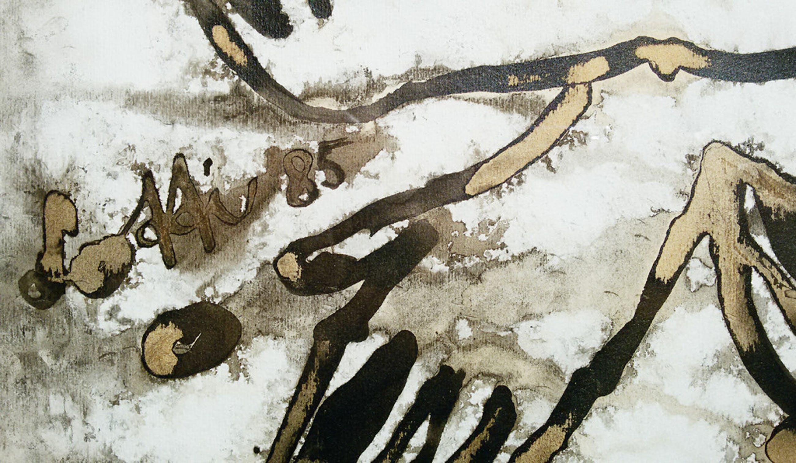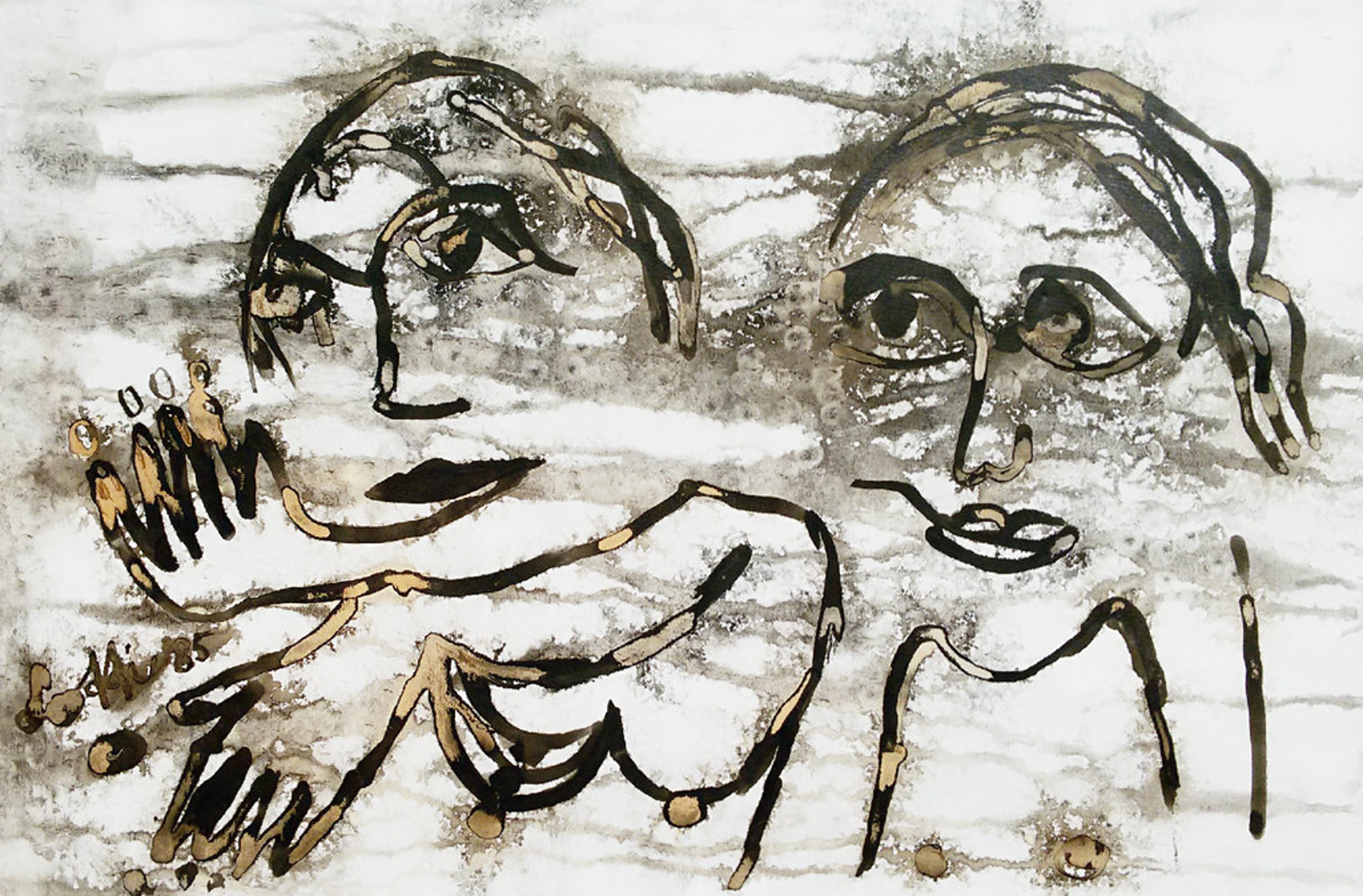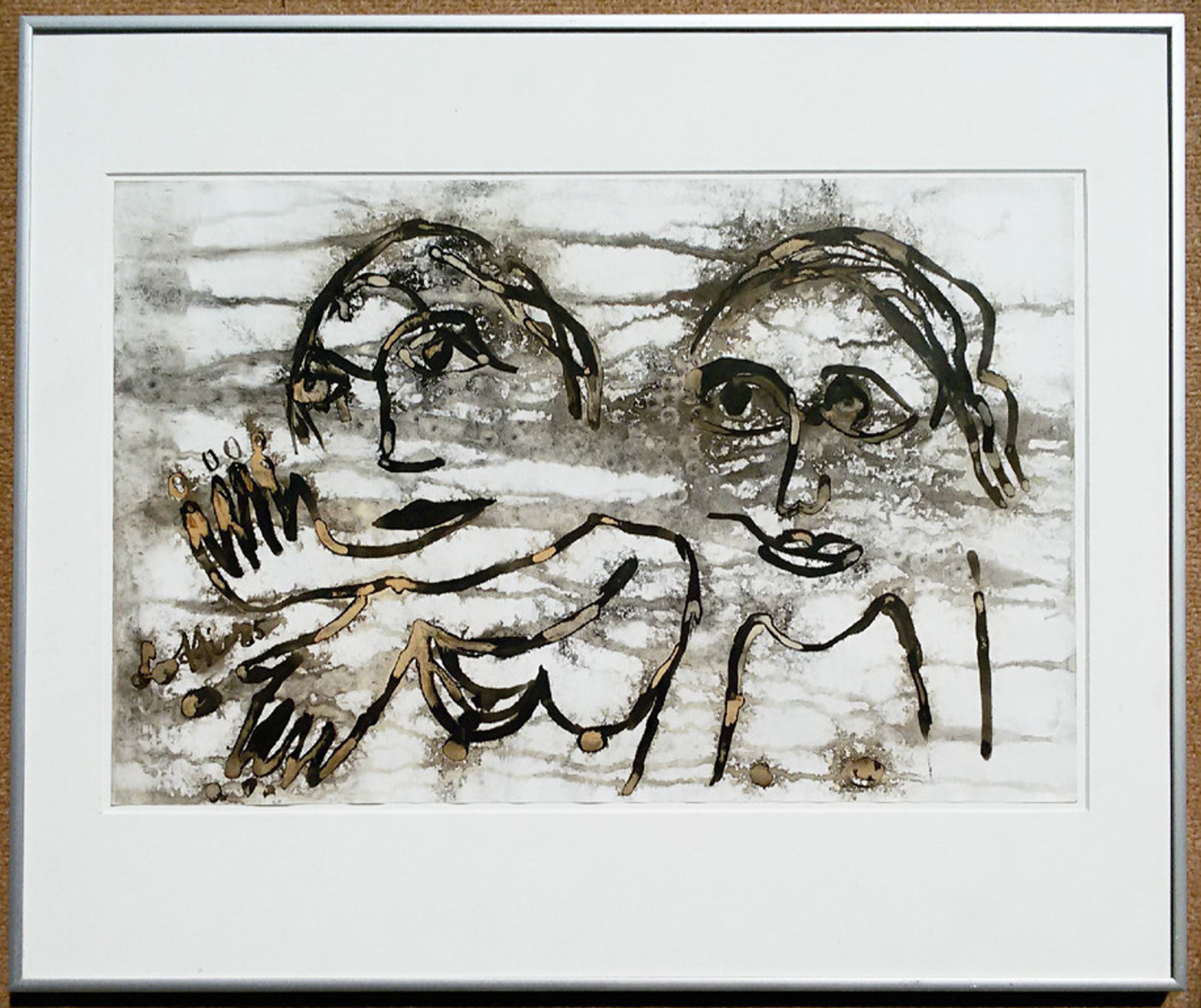 Karakteristiek werk van Lotti van der Gaag uit 1985. “Voyant la vallée dans le brouillard” betekent ongeveer “Het zien van de vallei in de mist”, wat vrij aardig lijkt te kloppen met de voorstelling. Handgesigneerd en gedateerd linksonder. In strakke aluminium lijst, achter glas en zuurvrij passe-partout. In zeer goede conditie.