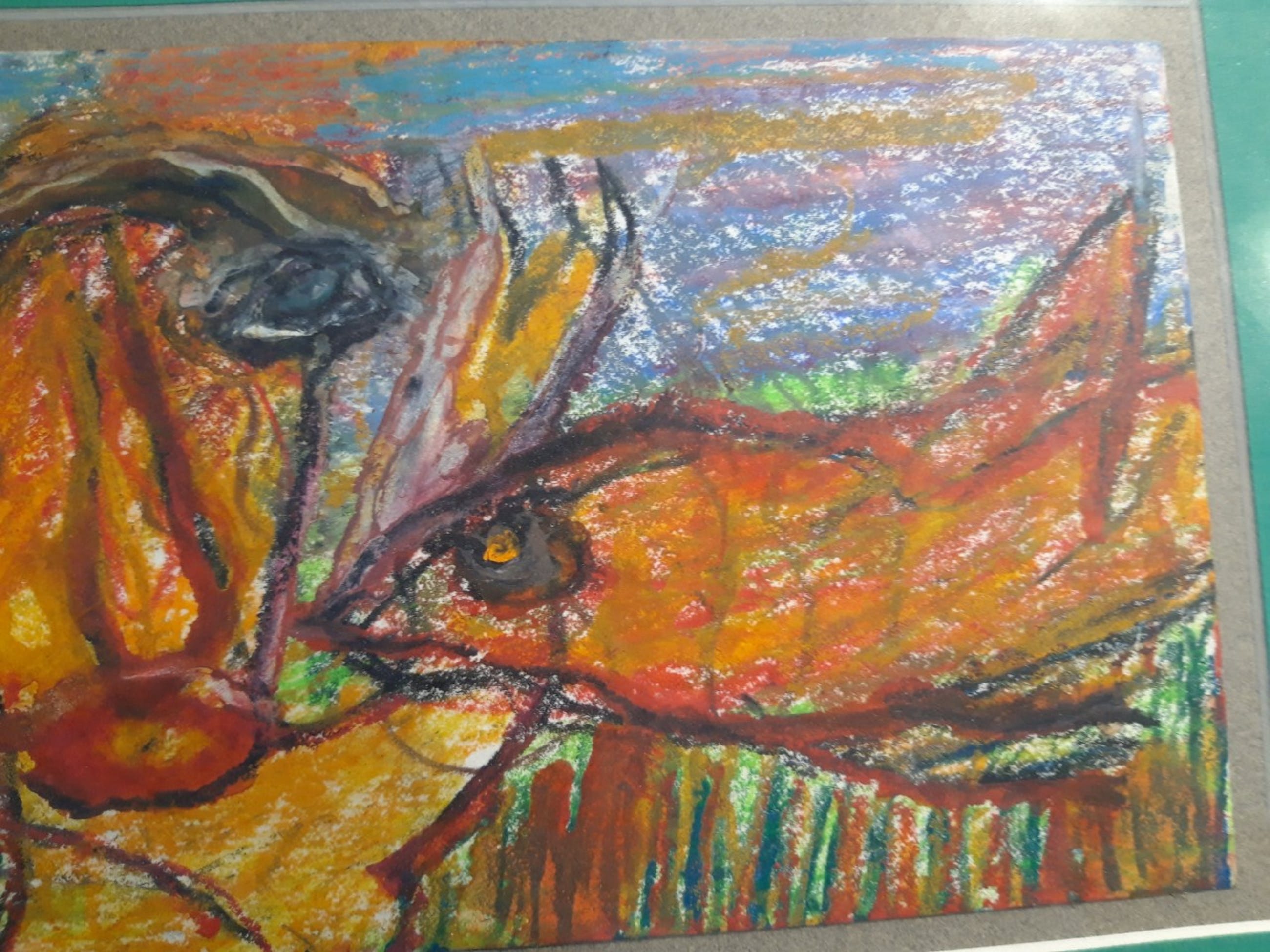Gemengde techniek op papier van CoBra gerelateerde kunstenares Lotti Van Der Gaag