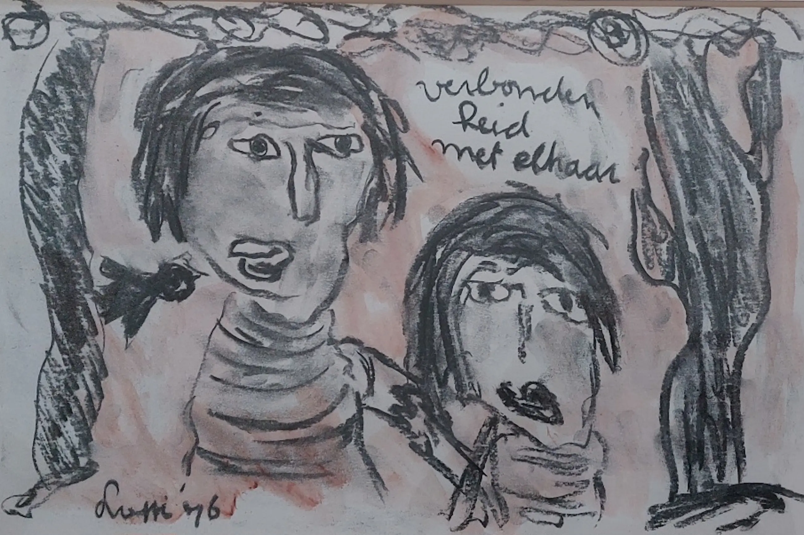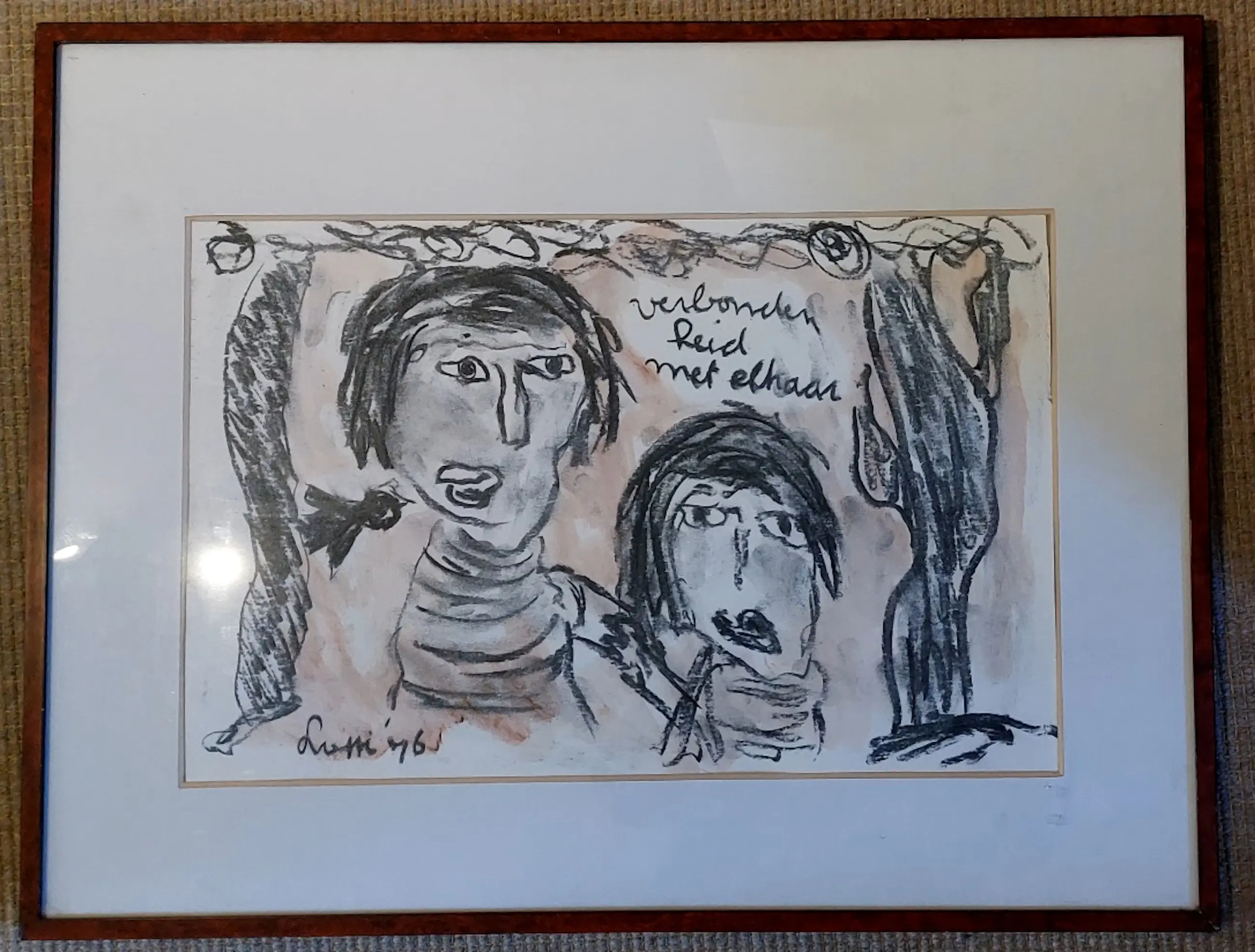 Dit fraaie stuk is afkomstig uit de an Galerie Ronald Kraayeveld. Op de rugzijde met een annotatie, zie 2e foto. Mixed media: Houtskool en aquarel Lotti v/d Gaag had een sterke connectie met de COBRA beweging . Corneille was niet gecharmeerd van vrouwelijk leden en hield haarbuiten boord. De erkenning als aan COBRA gerelateerd kunstenaar is inmiddels wel bevestigd.
