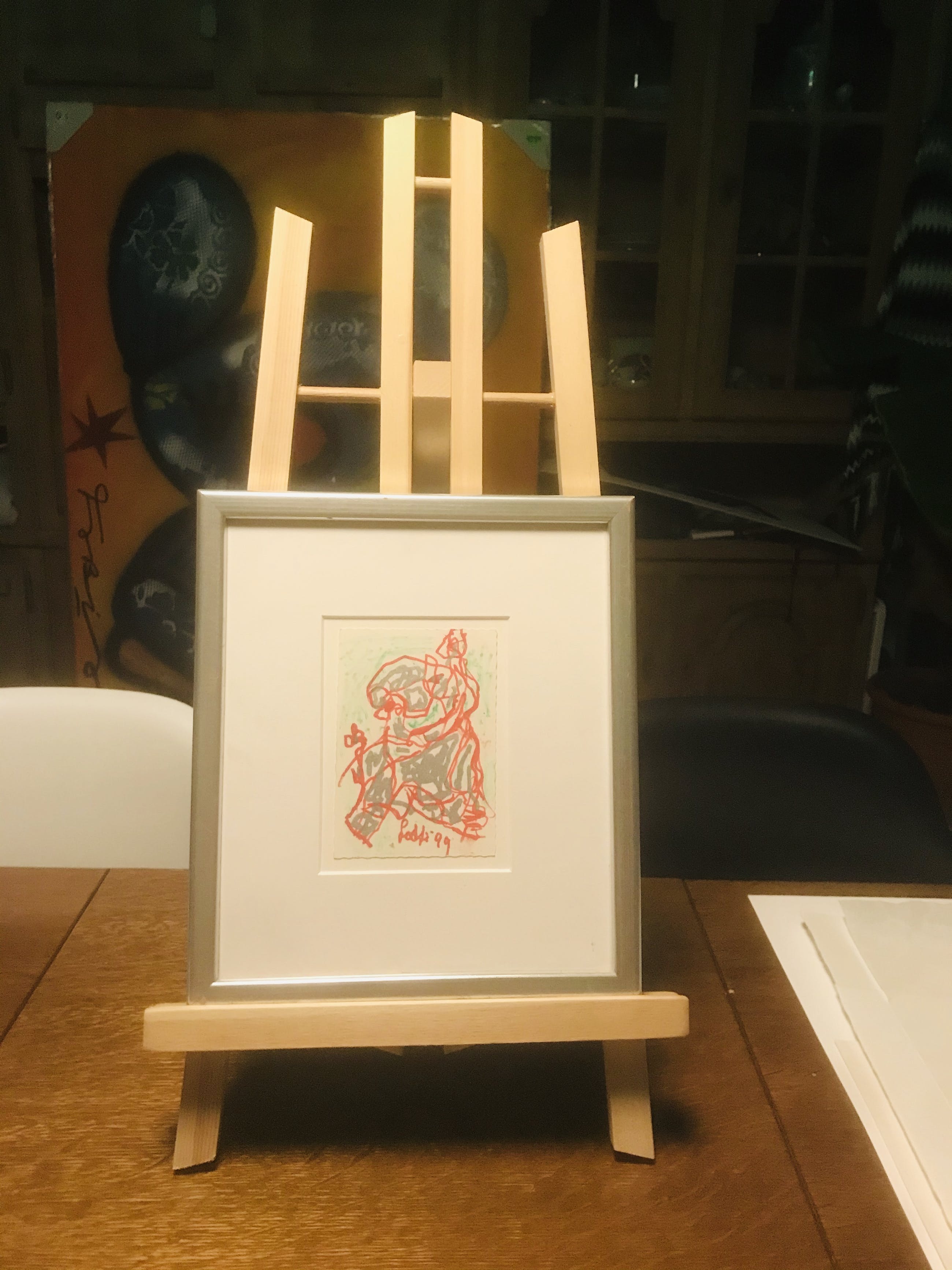 Dit betreft een 100% authentiek werk, ingelijst en achter museum glas geplaatst. Dit wordt geveild met de mini-ezel die u op de foto ziet. Certificaat wordt ook mee geleverd.
