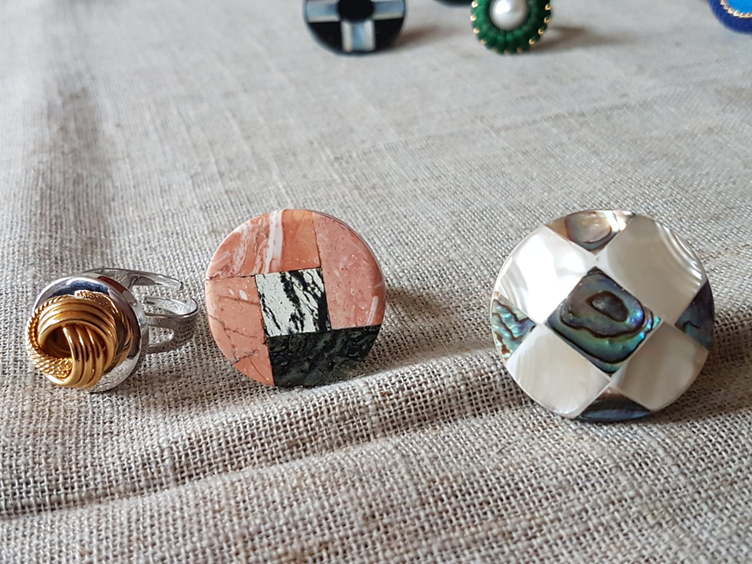 Alle knoppen en accessoires zijn uit de jaren 50/60/70, handgemaakt door ambachtslieden.