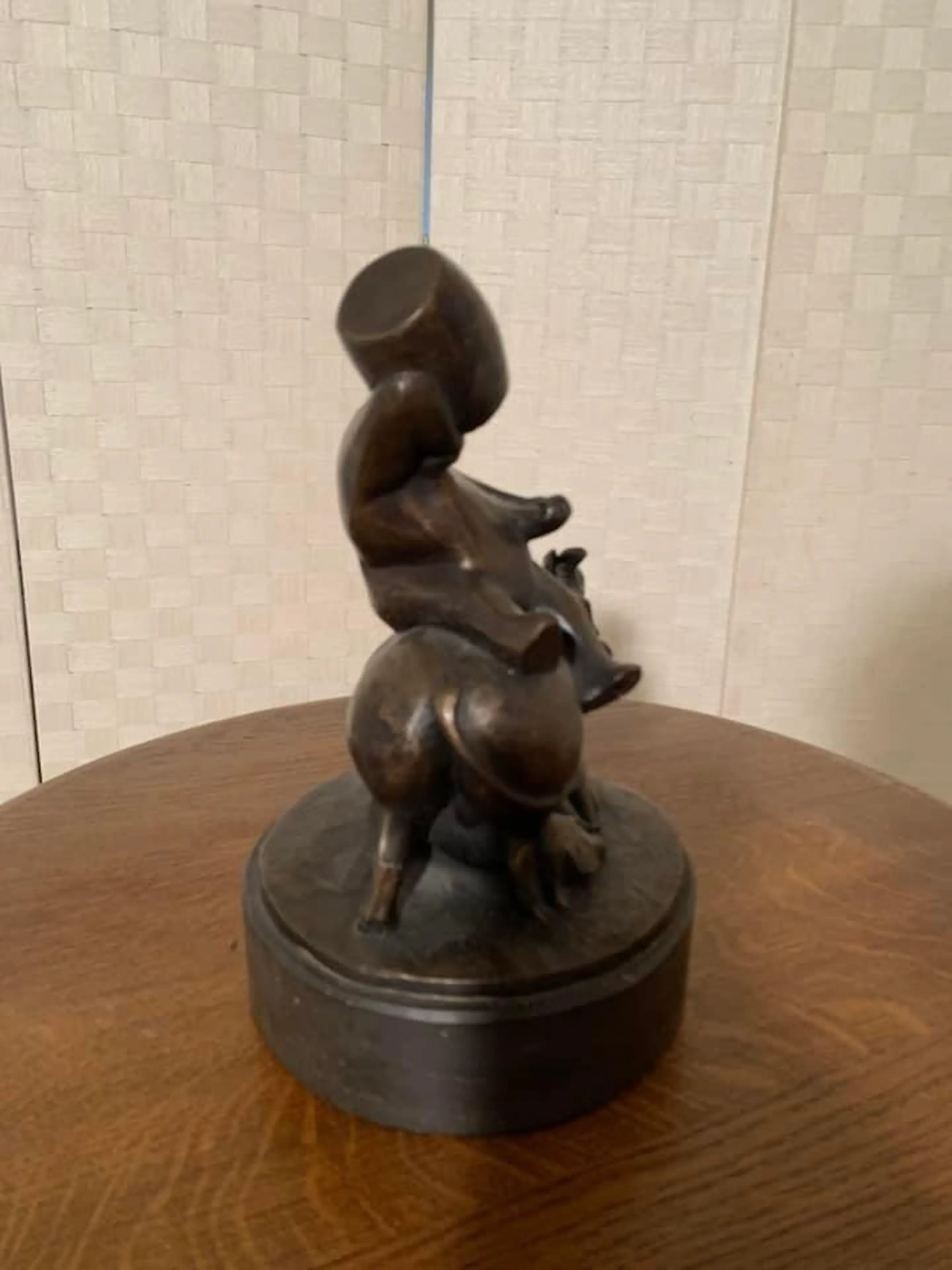 Dit uit brons gegoten beeldje is uitgevoerd naar het ontwerp voor de beeldfontein van het Hasseltse Borrelmanneke. Nr 44 van de 75 die er destijds gemaakt zijn.