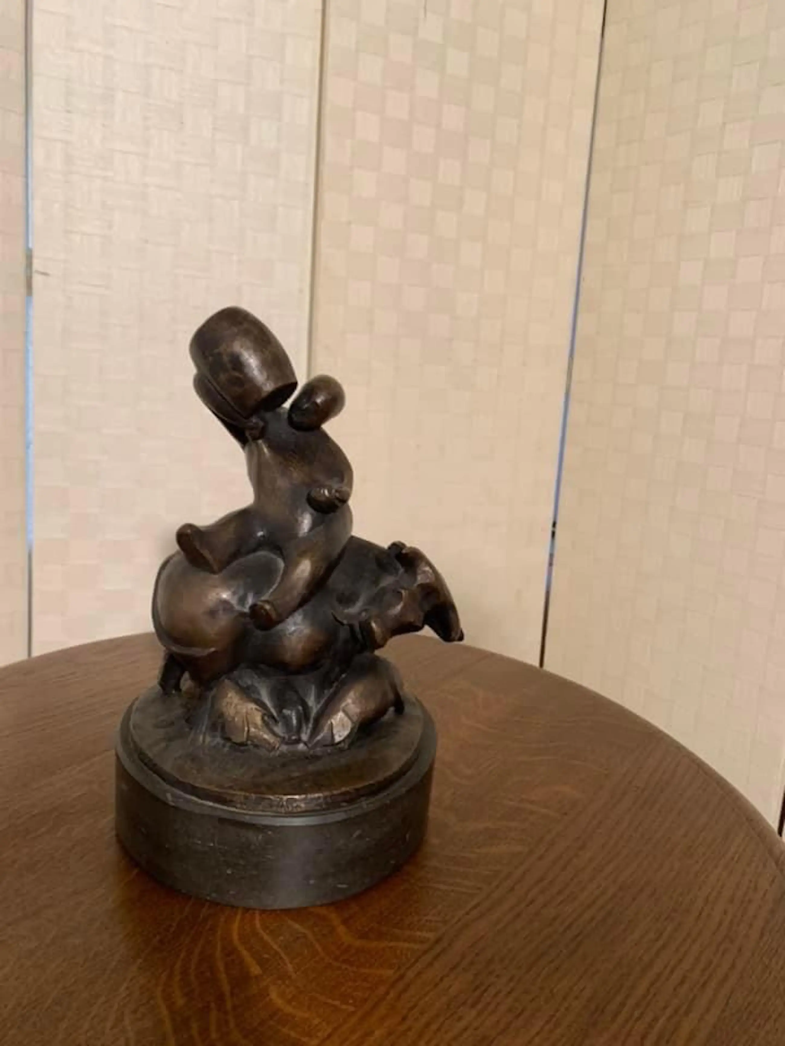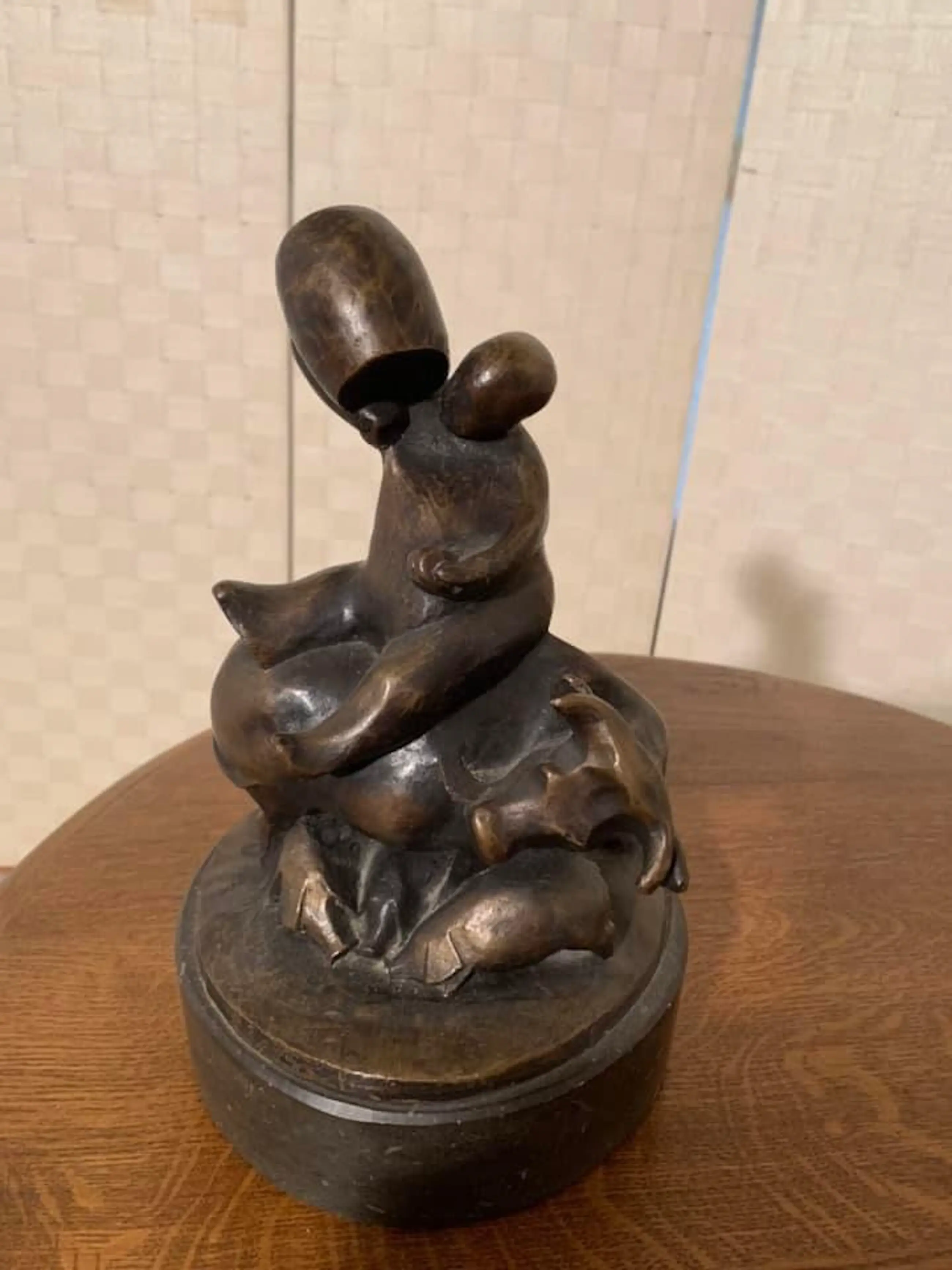 Lou Boonman, Borrelmanneke, 1982, gegoten brons en arduin.