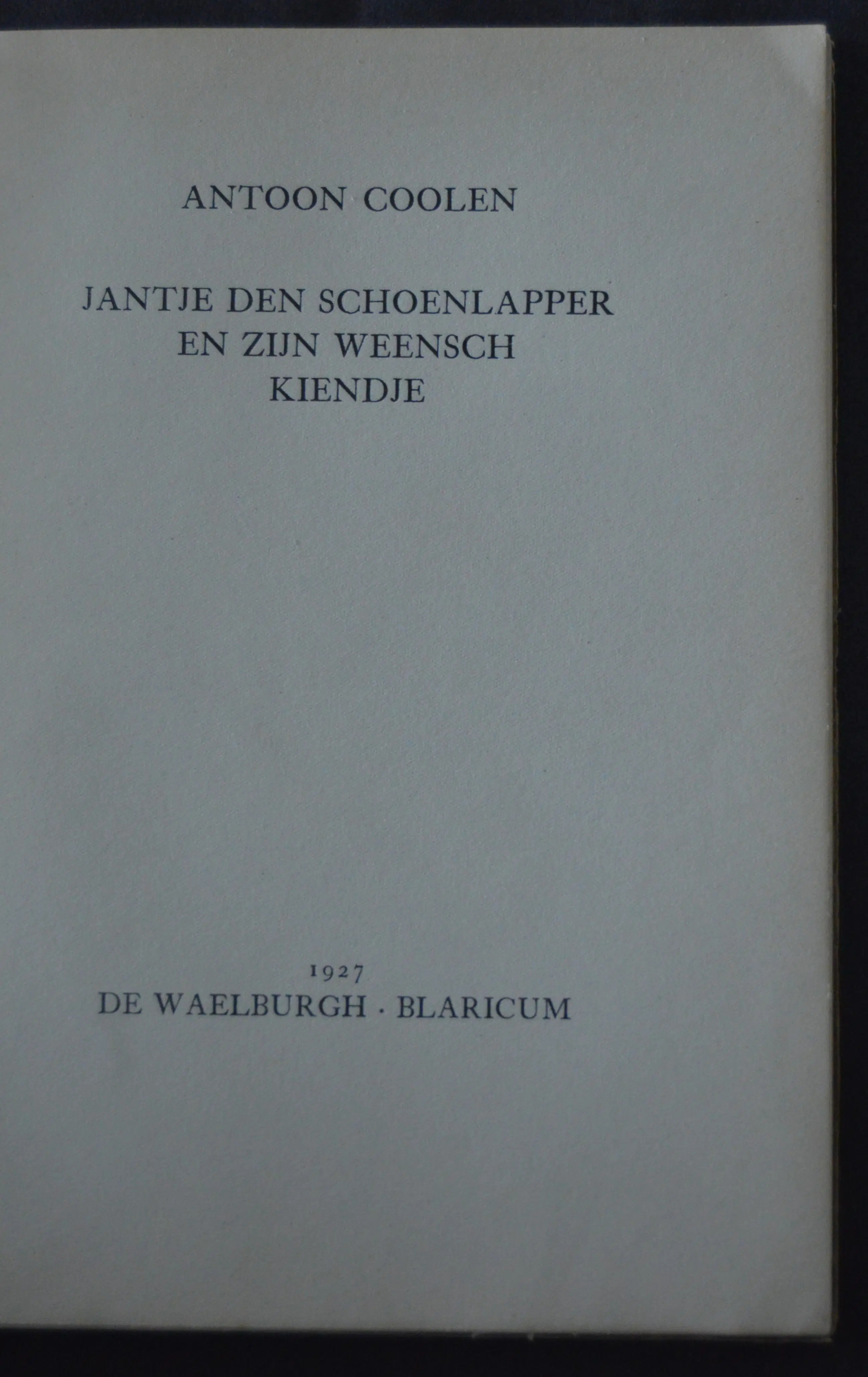Jantje den Schoenlapper en zijn Weensch kiendje. Door Antoon Coolen. 61pp
