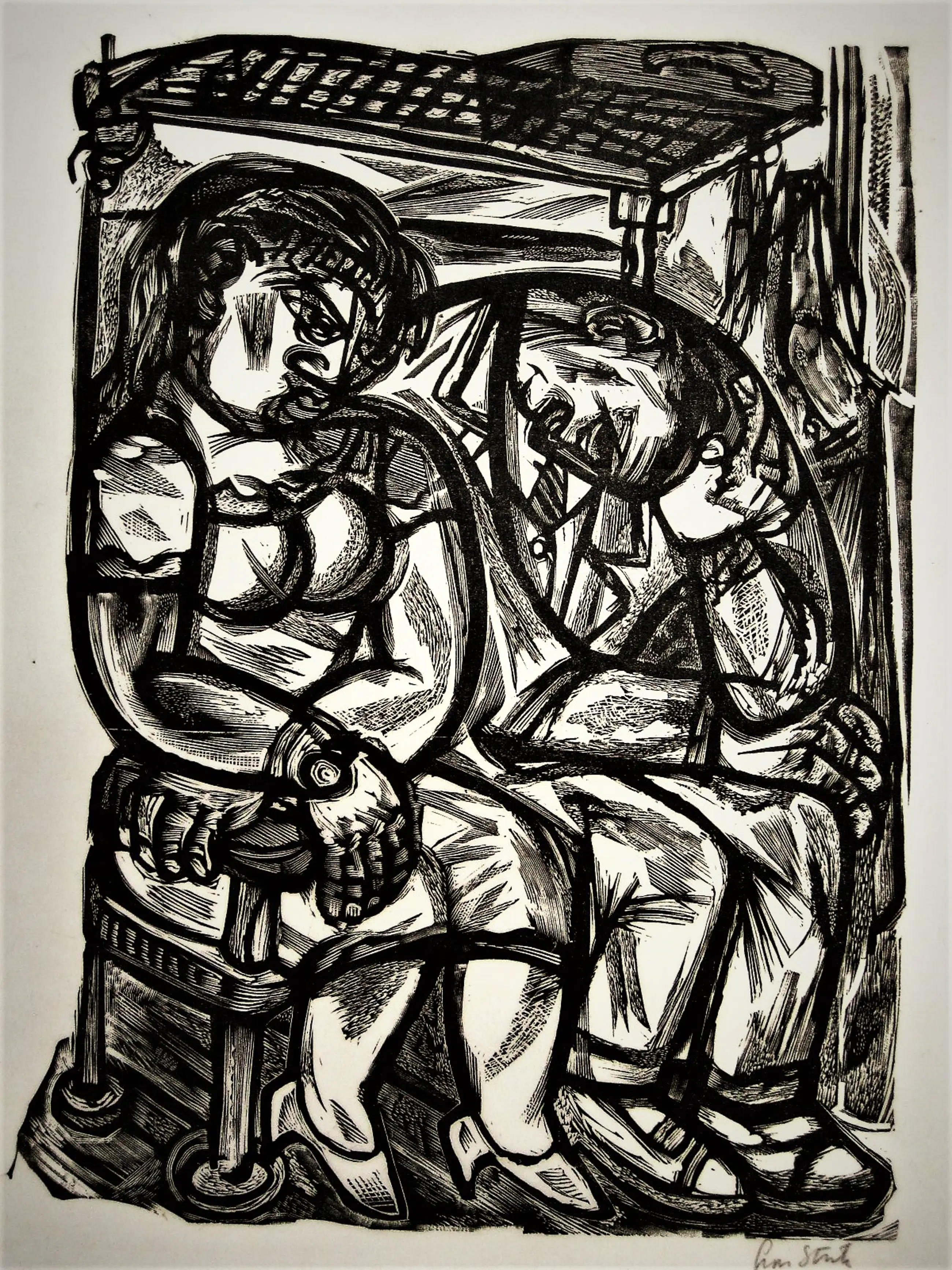 mooie scherpe hout/linosnede. In puike conditie.