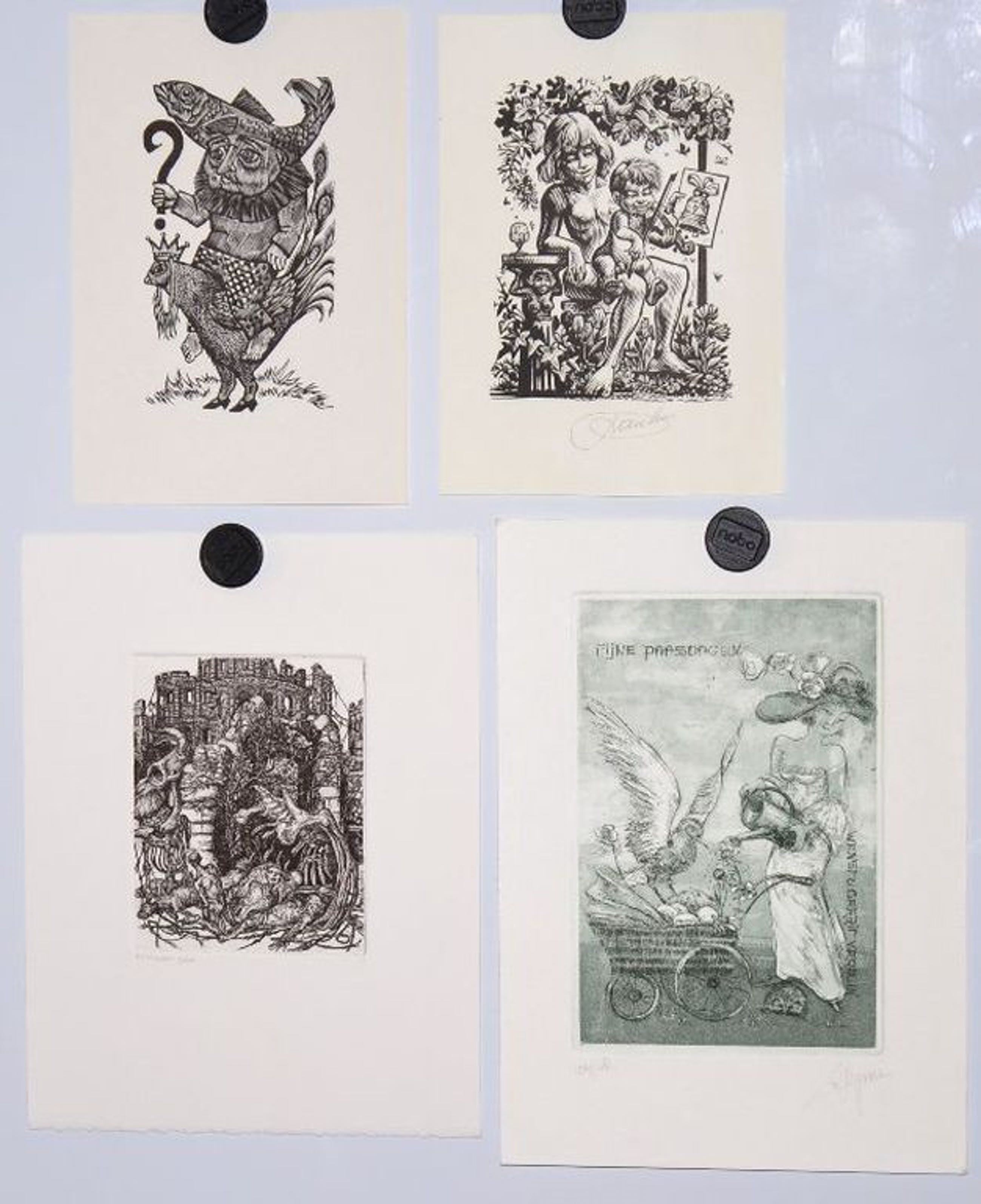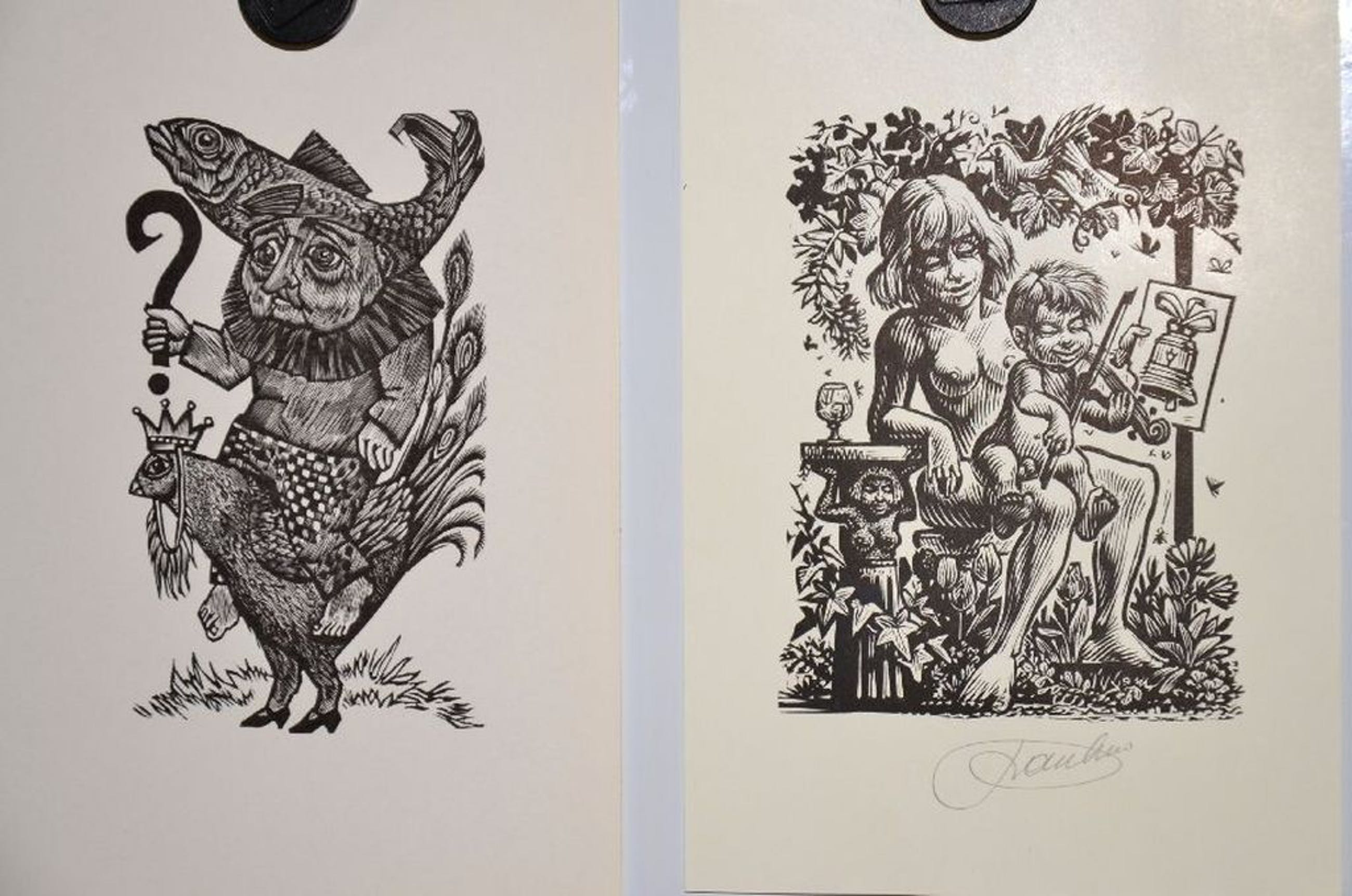 Vier kleine drukwerken ongeveer 10 cm x 15 cm van verschillende kunstenaars