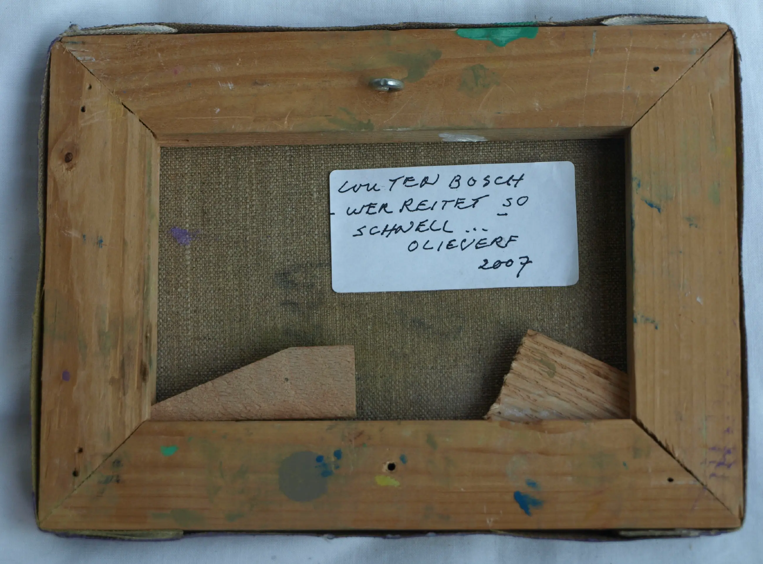 Een klein schilderijtje uit 2007 van de Nederlandse kunstenaar Lou Ten Bosch (1923-2018). -Gesigneerd rechtsonder in het werk en ook met informatie over het schilderij op de achterkant. -Olieverf op doek, opgespannen op een houten spieraam. -De zijkanten zijn beschilderd door de kunstenaar. Kan zo aan de muur. -Afmetingen: 13 x 18 x 2 cm. -Herkomst: Uit een inboedel. -Conditie: In prima staat. Zie ook de foto’s voor een eigen indruk. Kan zo aan de muur