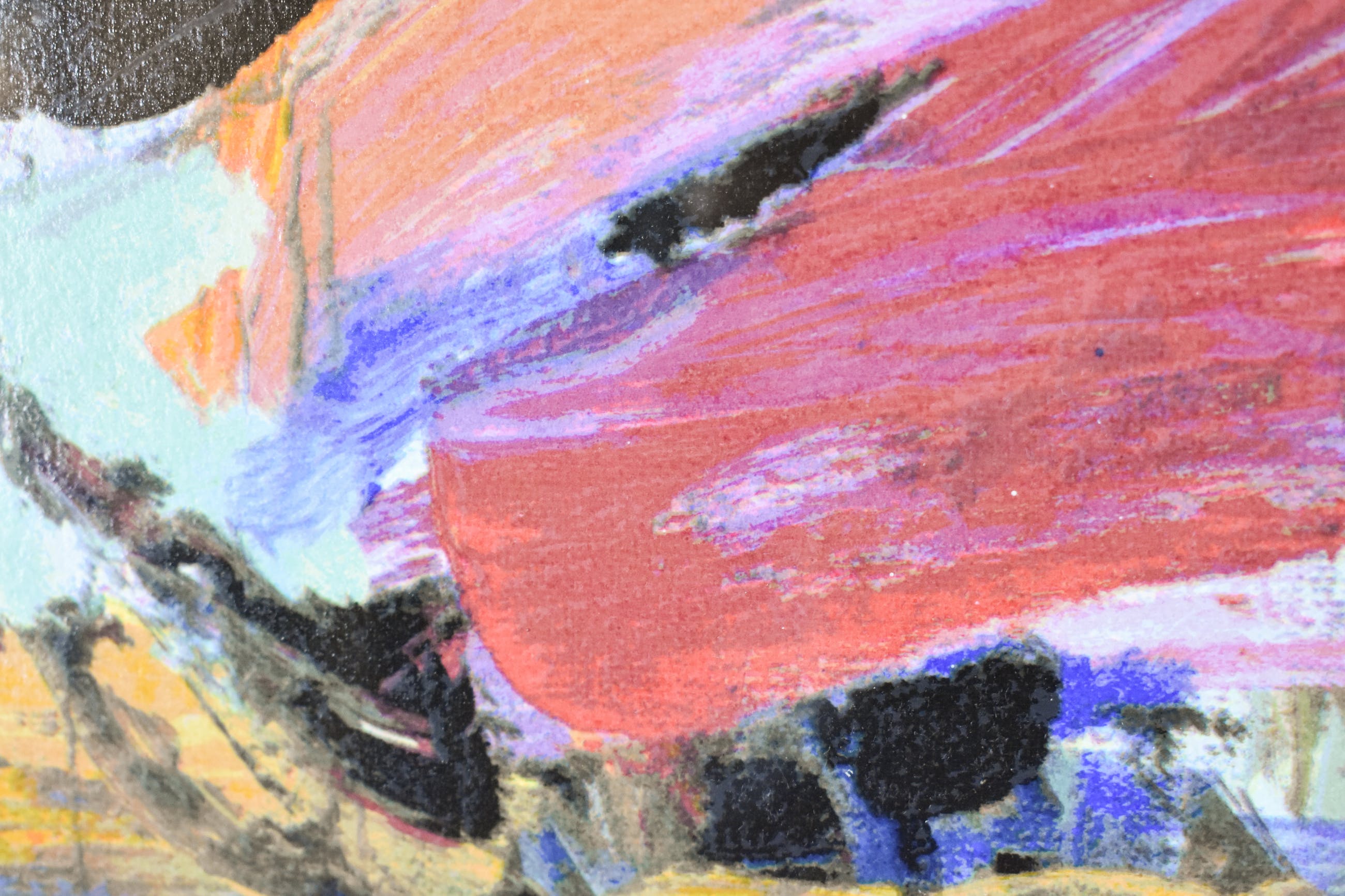 Het werk is in een goede staat, alleen de lijst heeft lichte krasjes (zie foto's).