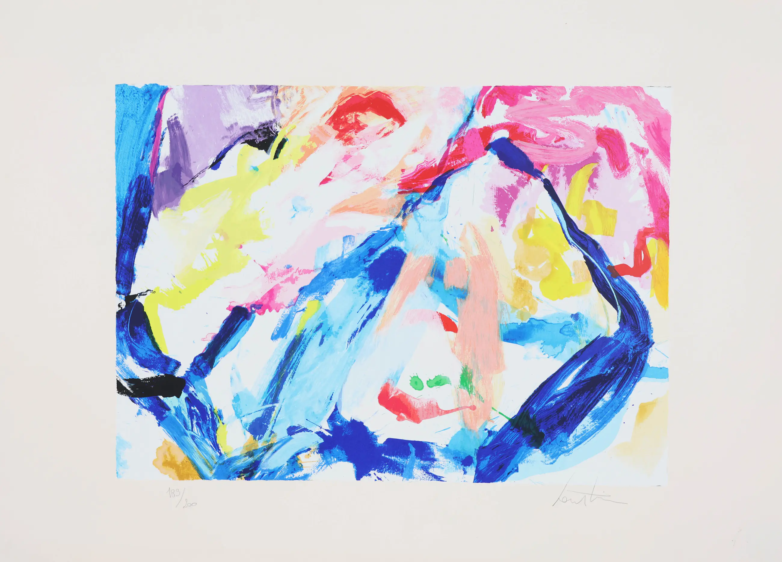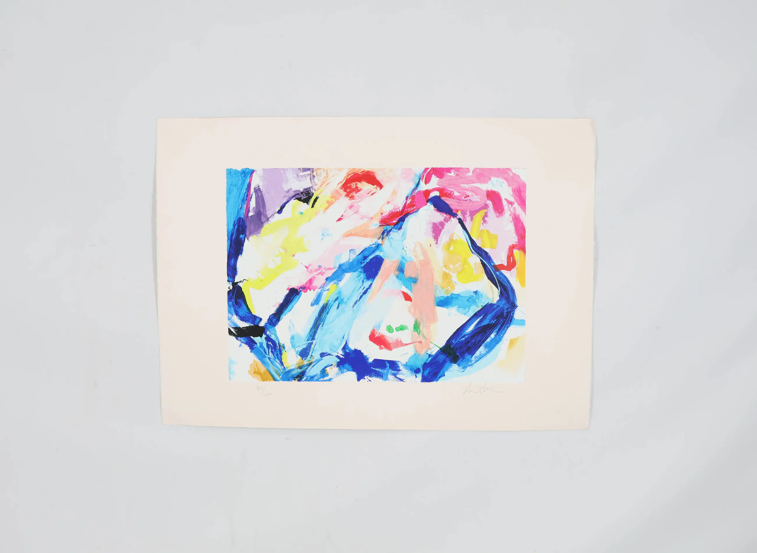 Dit betreft een abstracte zeefdruk van Lou Thissen.