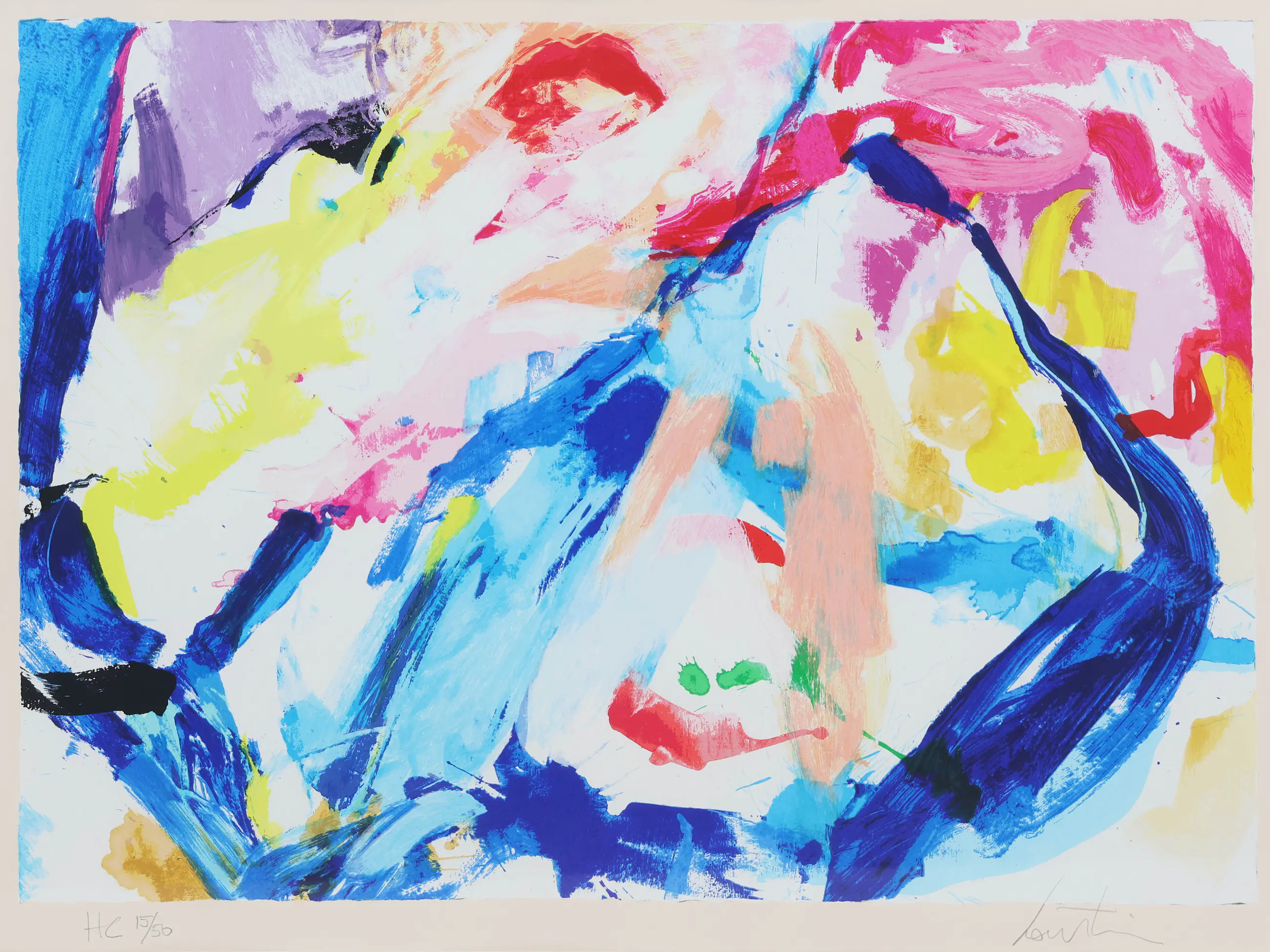 Dit betreft een abstracte zeefdruk van Lou Thissen.