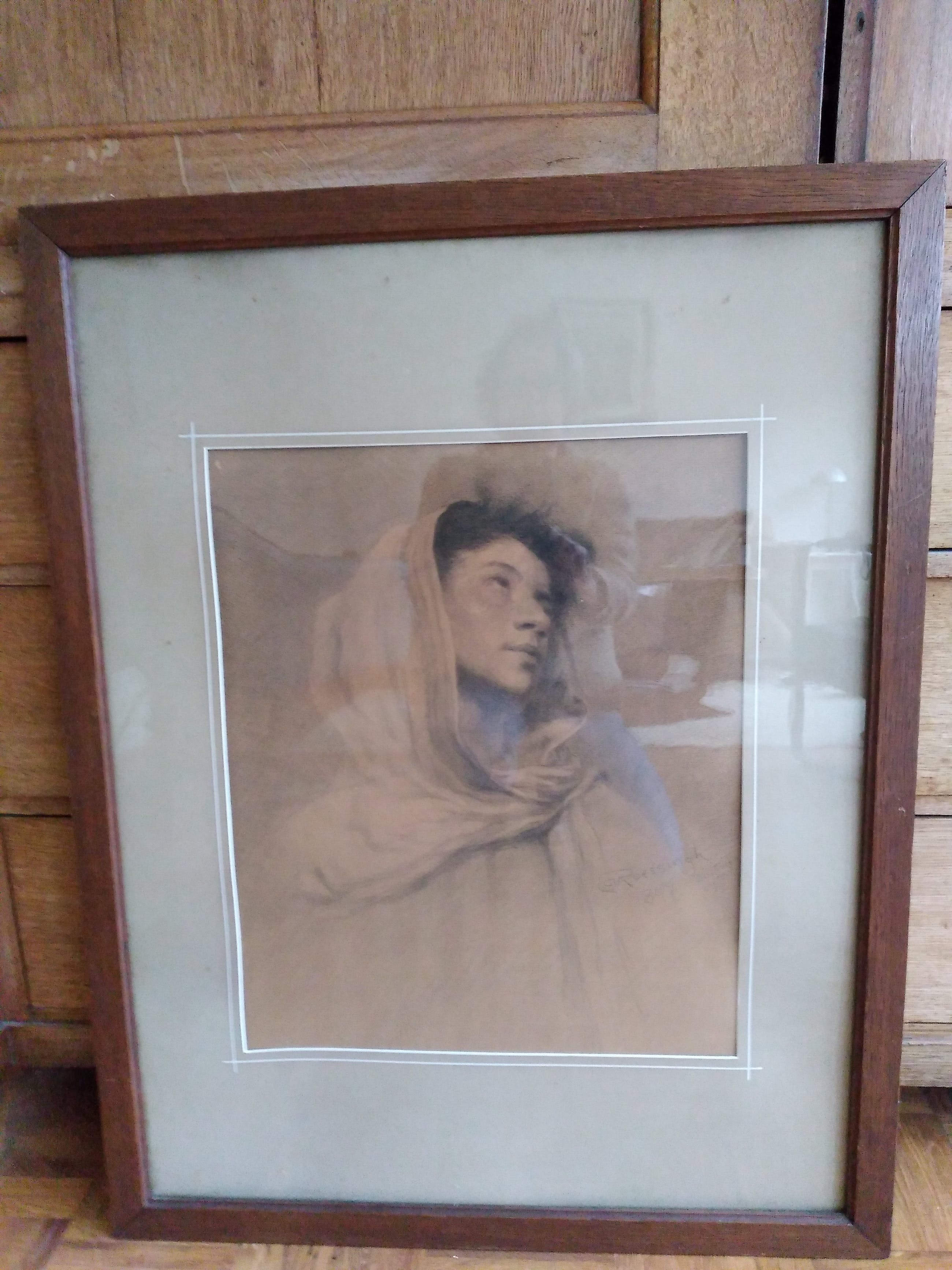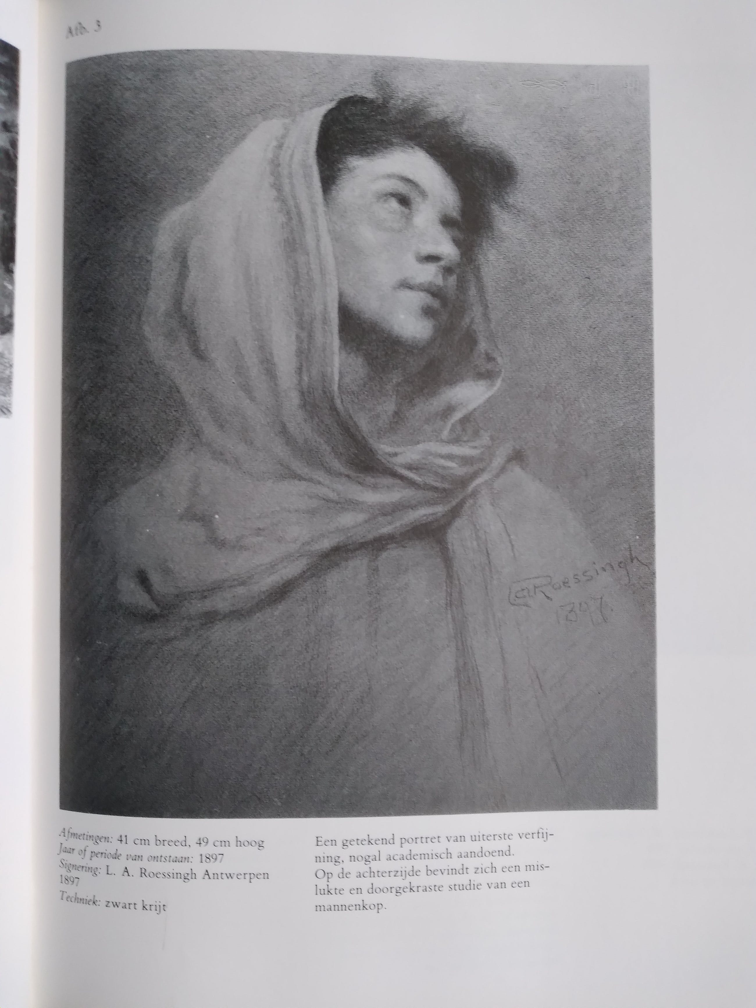 Getekend portret van uiterste verfijning. Met zwart krijt getekend. Dit portret staat ook afgebeeld in het boek over Louis Albert Roessingh van wijlen Albert Doedens, uit 1981.