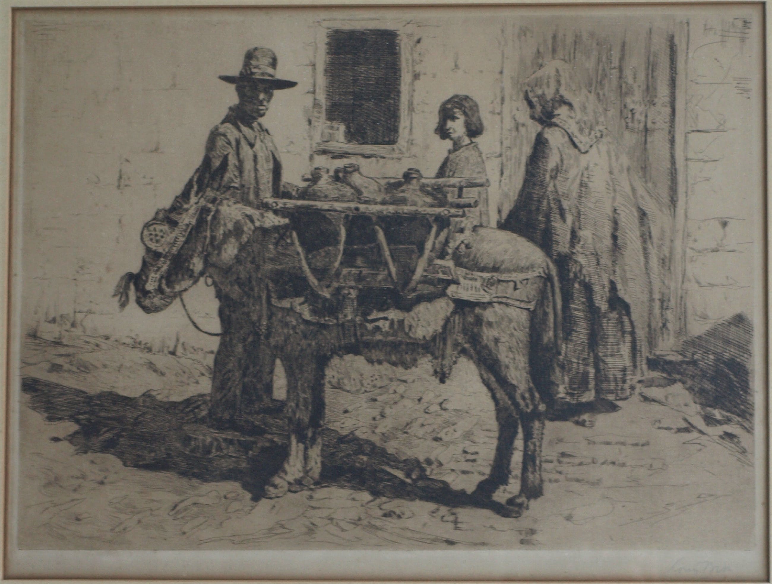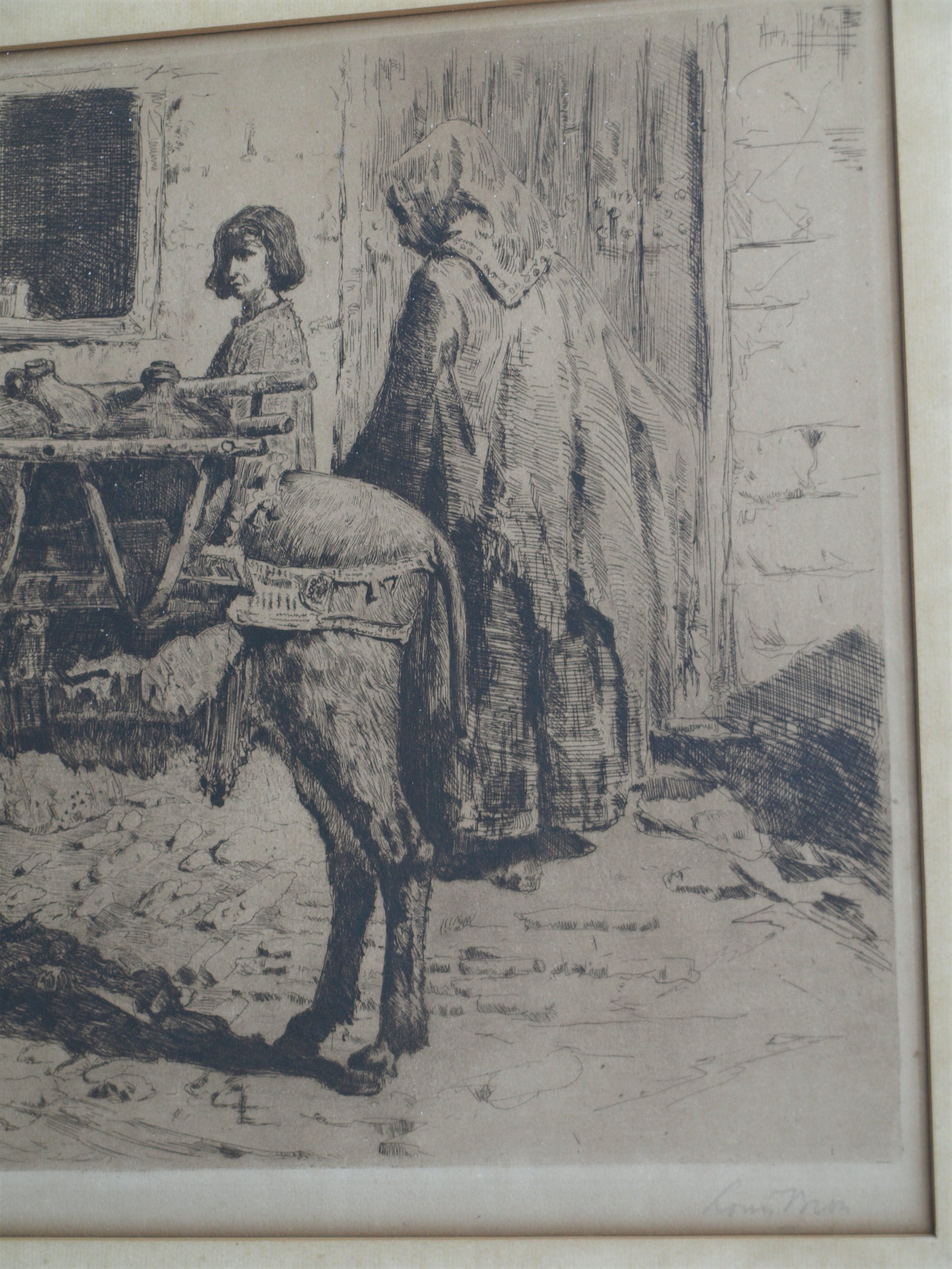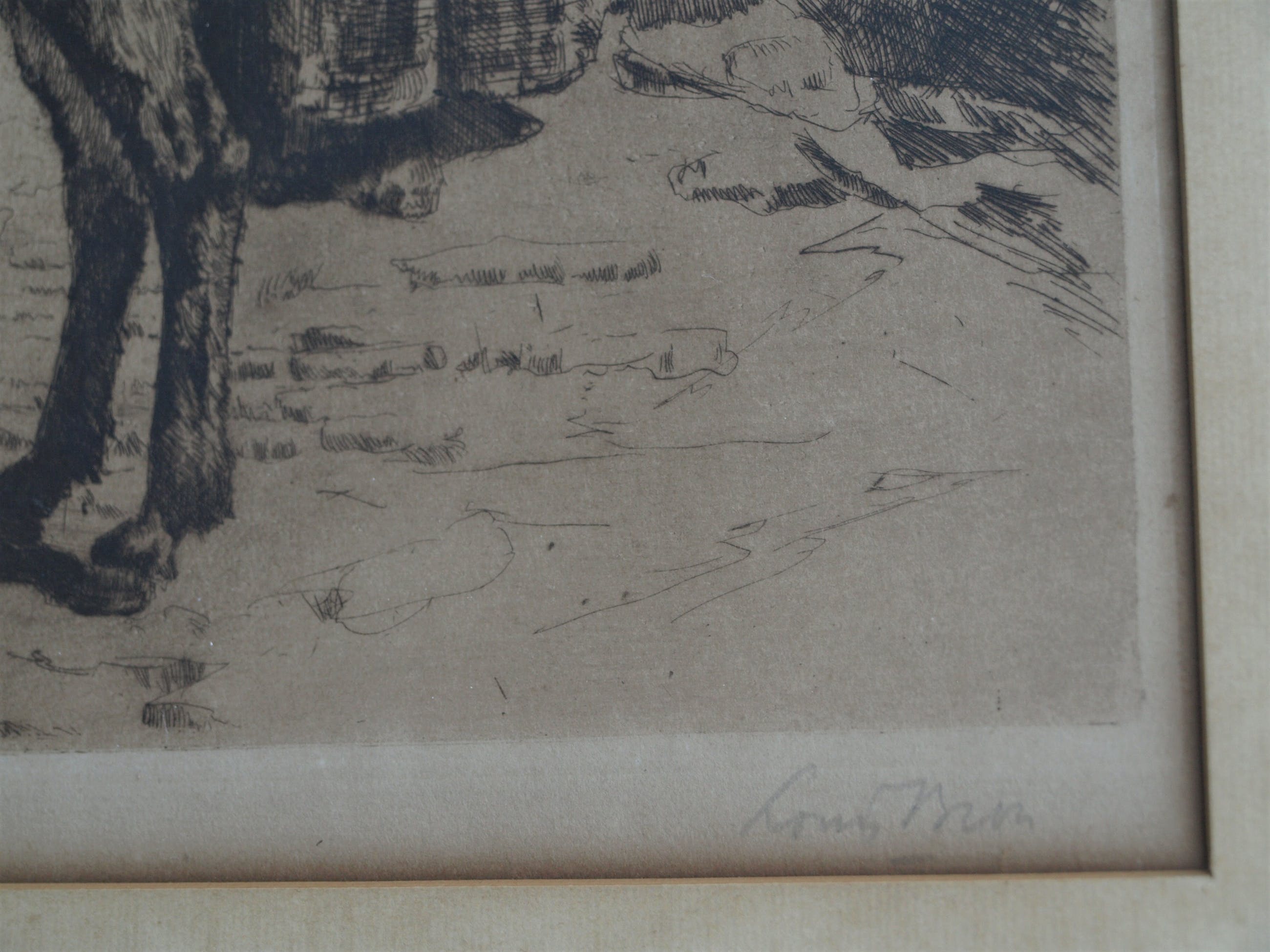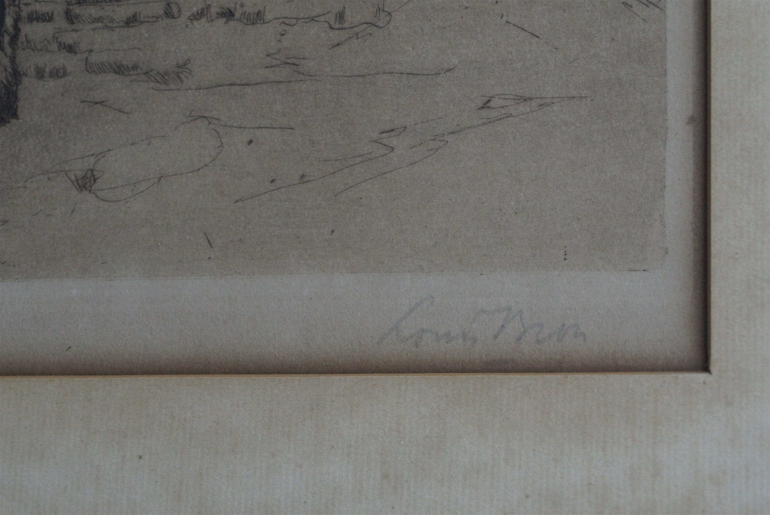 Een ingelijste ets uit ca 1925 van de Nederlandse kunstenaar Louis Bron (1884-1959).