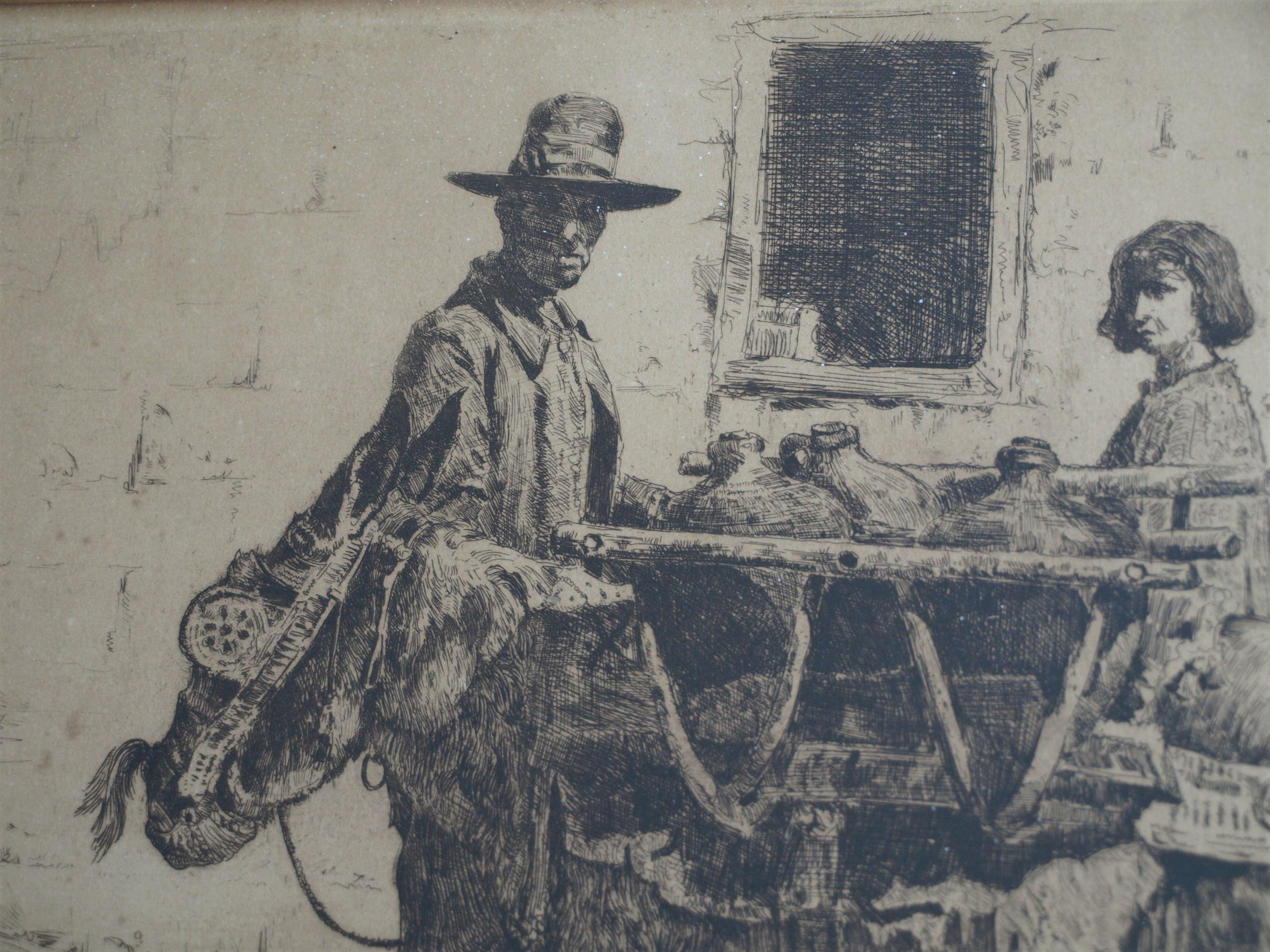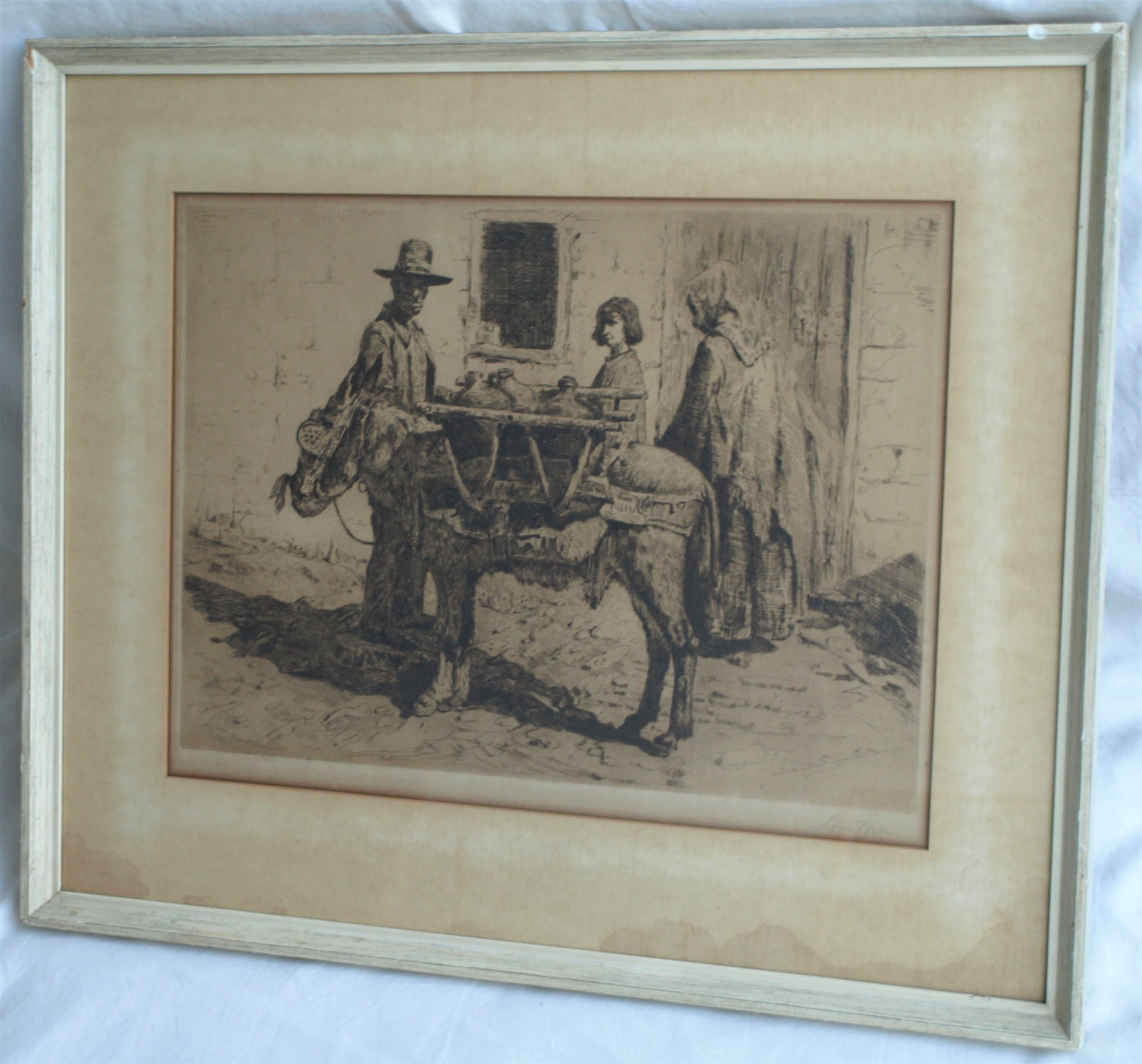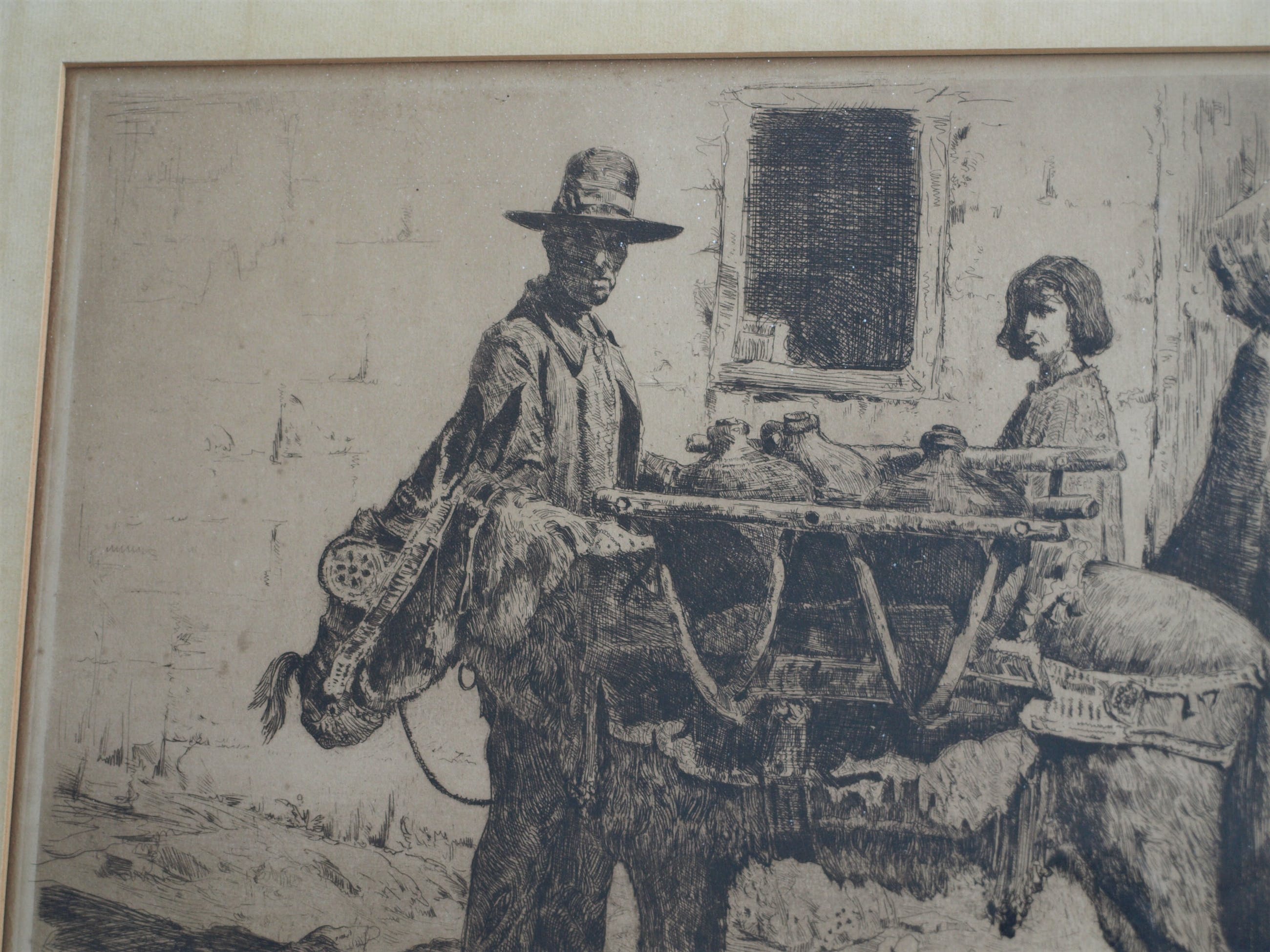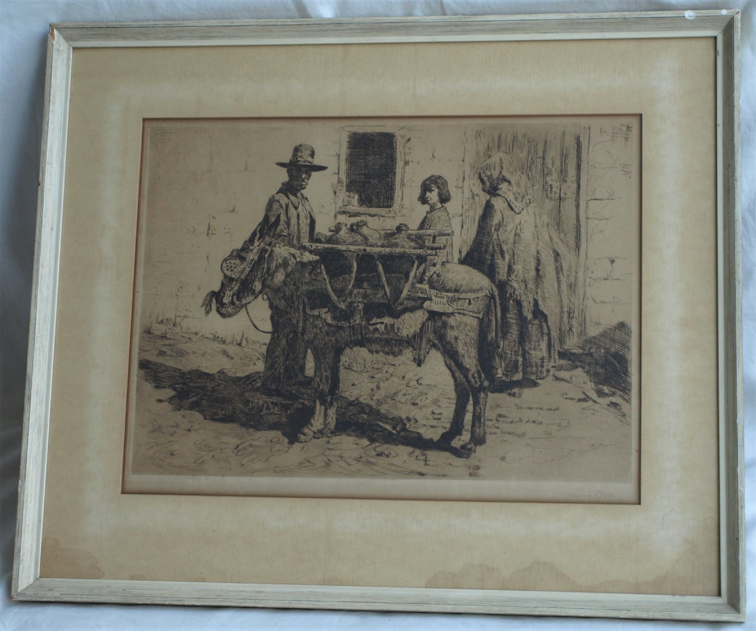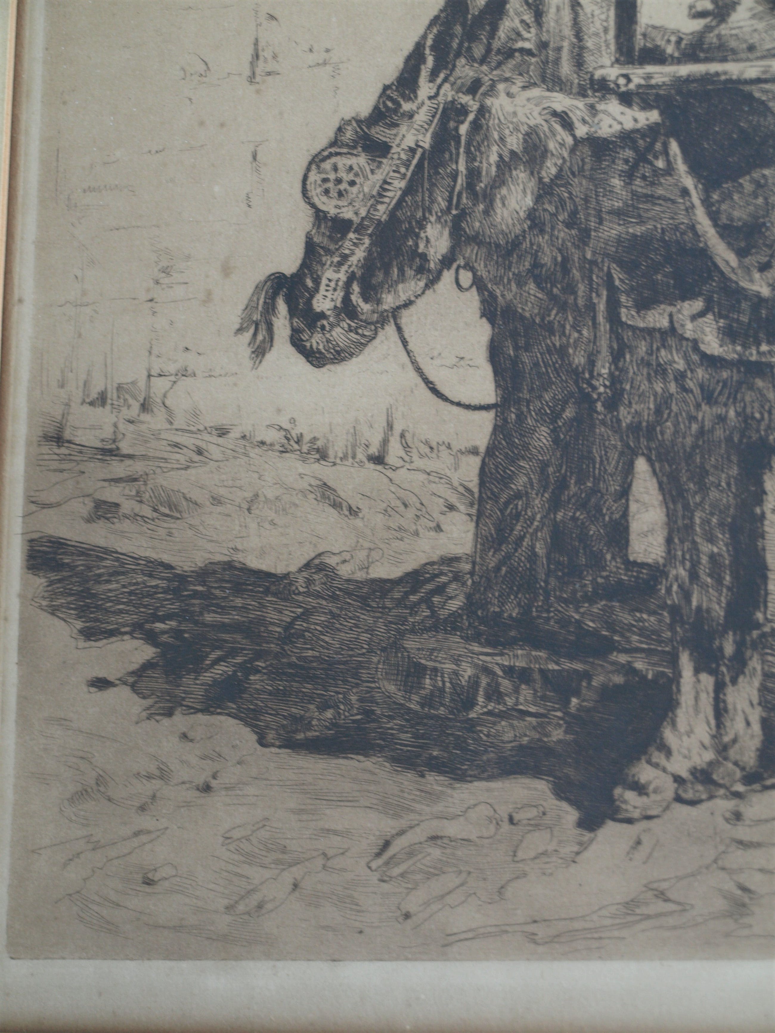 -Conditie: Het papier van de ets is vergeeld. Het passe-partout is vergeeld en heeft vlekken. De lijst heeft slijtplekjes.