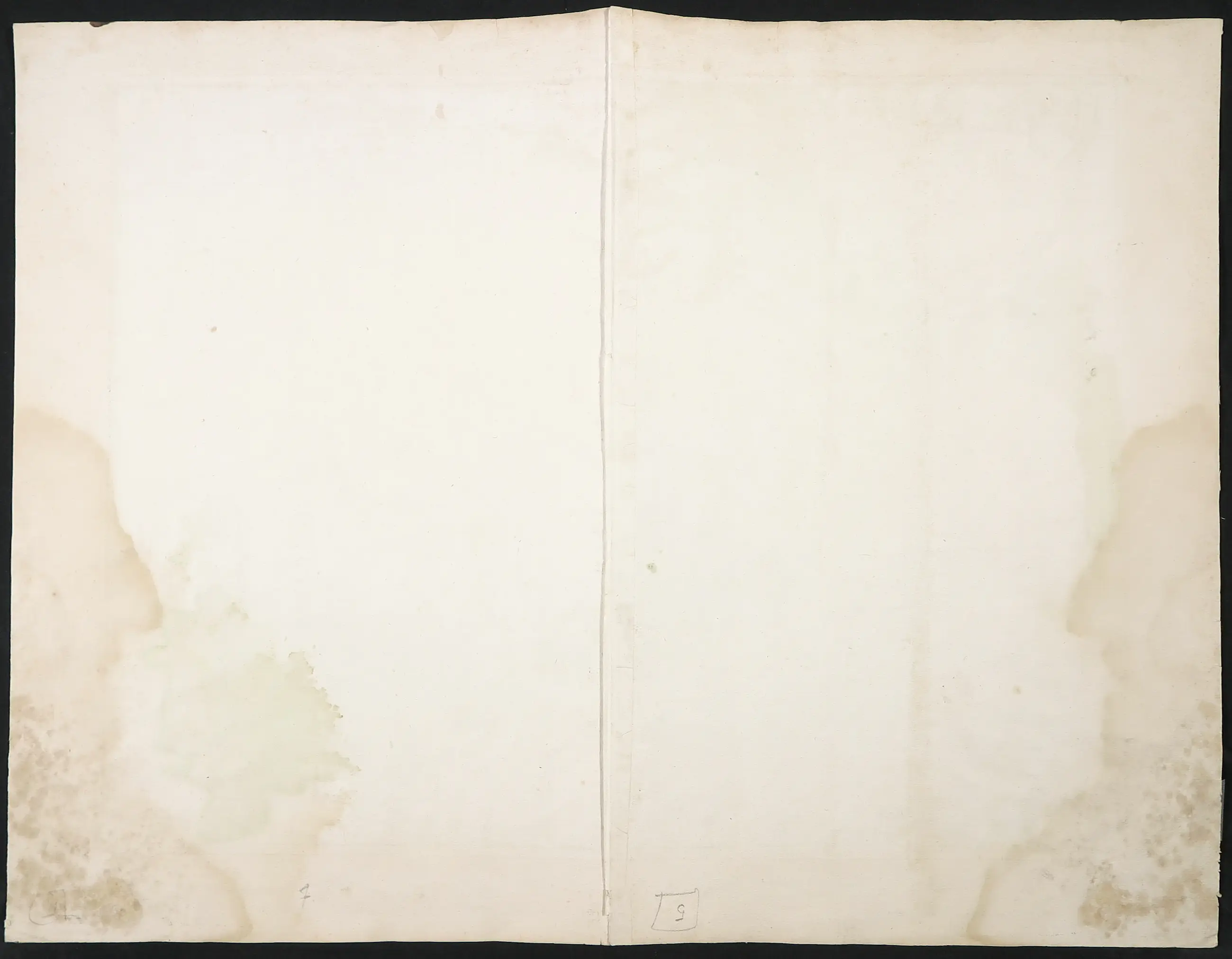 | Goede staat gezien leeftijd, wel met vlekjes en sterke verkleuring in de onderste hoeken. Zie de foto's voor een impressie. Langs de randen lichte beschadigingen en in het midden een vouwlijn. | |||