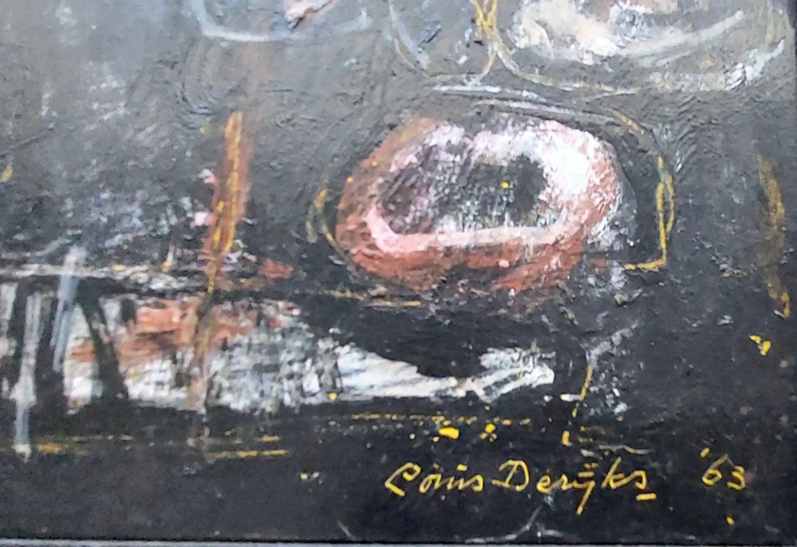 Louis Derijks 1929-2020, schilder en graficus. Heeft in meer dan 50 jaar tijd een enorme ontwikkeling doorgemaakt van figuratief naar abstraherend. Maar helemaal abstract is zijn werk zelden, er is altijd wel iets herkenbaars te ontdekken. Zijn schilderijen zijn eenvoudig van tekening en compositie en bevatten de natuurlijke tinten bruin, zwart, donkerrood en oranjebruin.